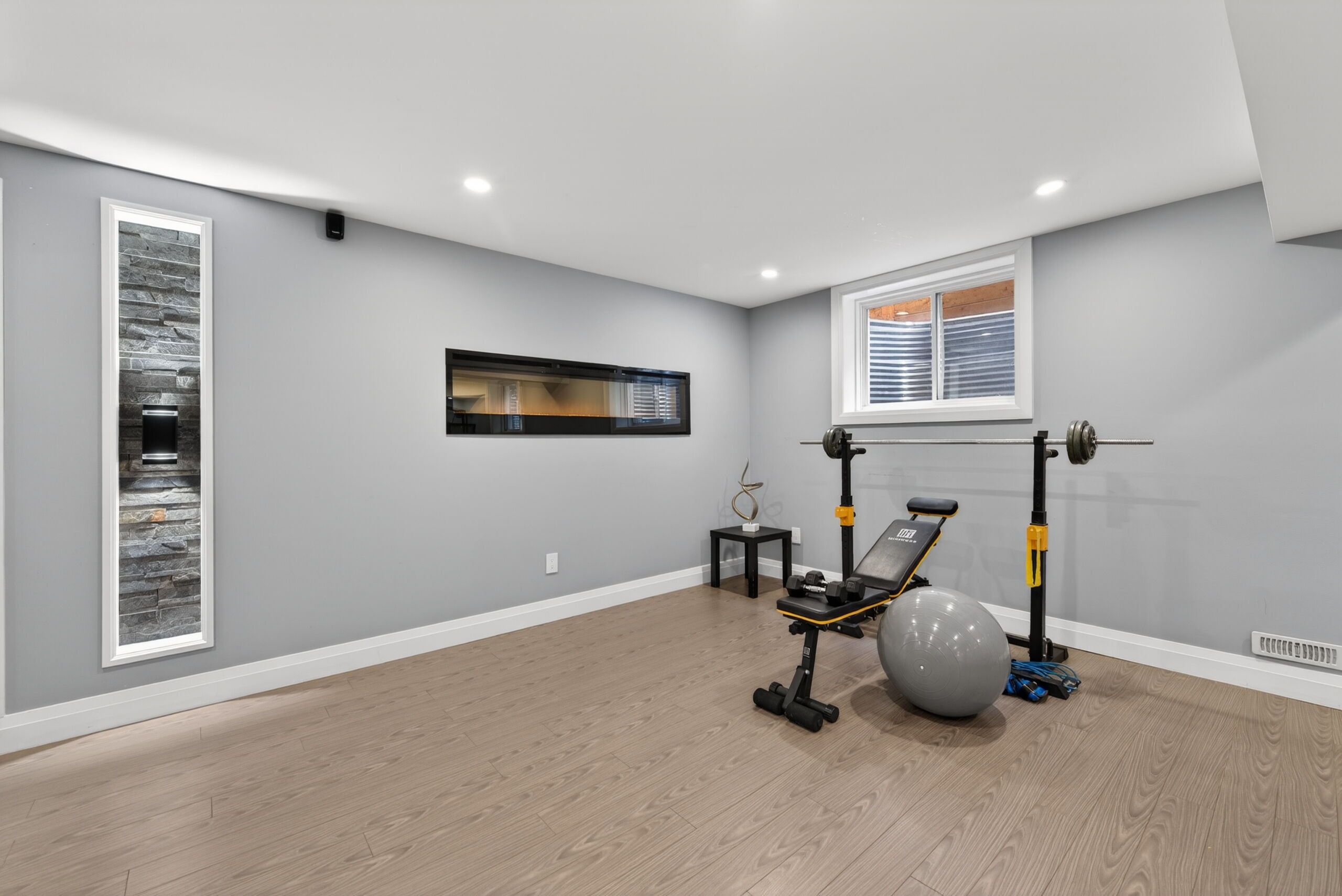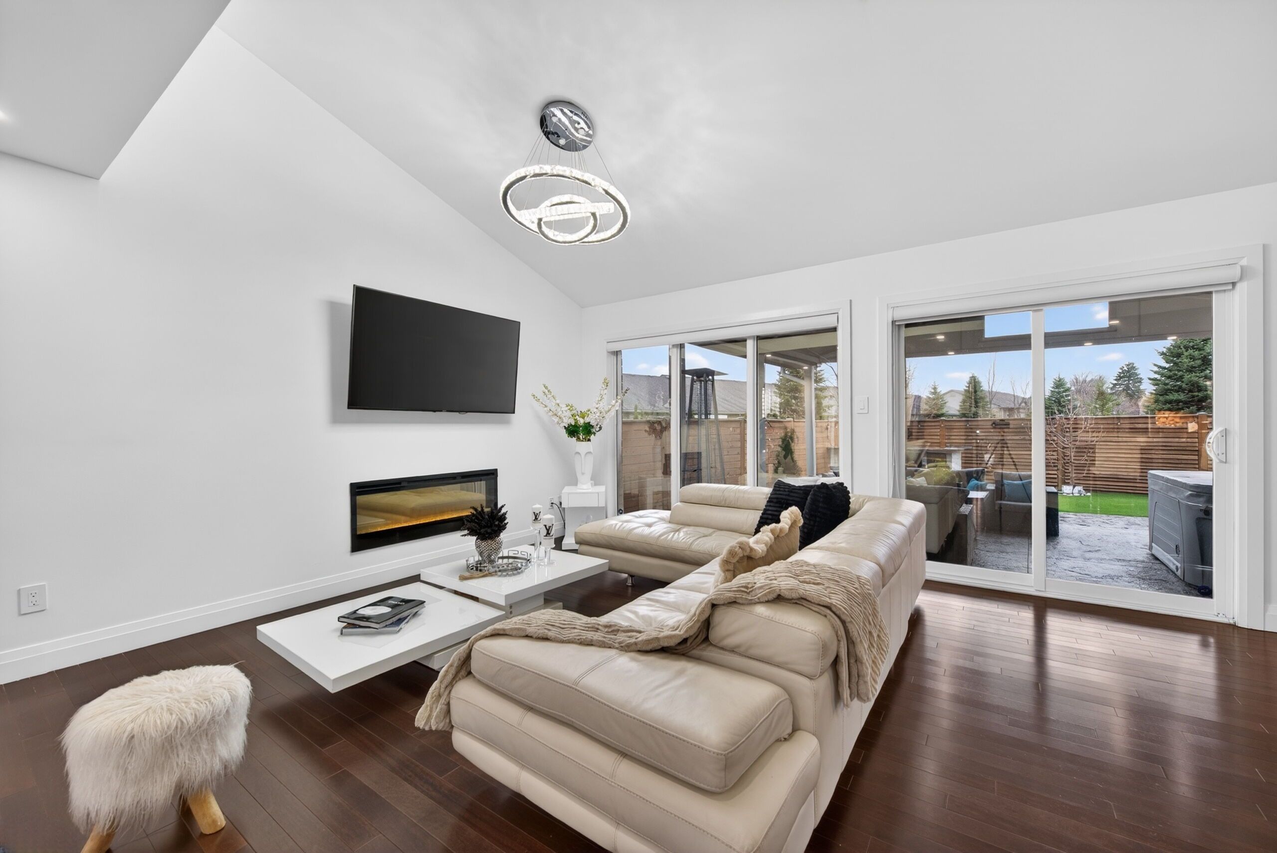 Welcome to this stunning modern two storey home in the sought after foxfield community in north london. Offering 3 bedrooms, 3. 5 bathrooms, and an attached two car garage, this home also features a beautifully designed backyard oasis complete with an approximately 600 sq ft covered concrete patio. The main floor showcases a sleek, open concept layout with a vaulted ceiling in the great room and an electric fireplace as a stylish focal point. The entire back wall is lined with windows and a large patio door, filling the space with natural light and providing seamless views of the backyard. The kitchen is both functional and contemporary, featuring granite countertops, tile backsplash, and a breakfast bar, with the dining area conveniently adjacent. A two-piece powder room and main floor laundry add everyday practicality. Upstairs, the spacious primary bedroom offers a walk-in closet and a private four-piece ensuite, along with its own electric fireplace for added comfort. Two additional generously sized bedrooms and a four-piece bathroom complete the upper level. The finished lower level provides a large rec room along with a versatile den or office space, ideal for working from home or additional living needs. Step outside to the fully fenced backyard, where the covered patio and outdoor bar create the perfect setting for relaxing or entertaining. Located in the desirable foxfield neighbourhood, this home is close to parks, walking trails, shopping, restaurants, and convenient amenities, making it an excellent choice for modern family living.