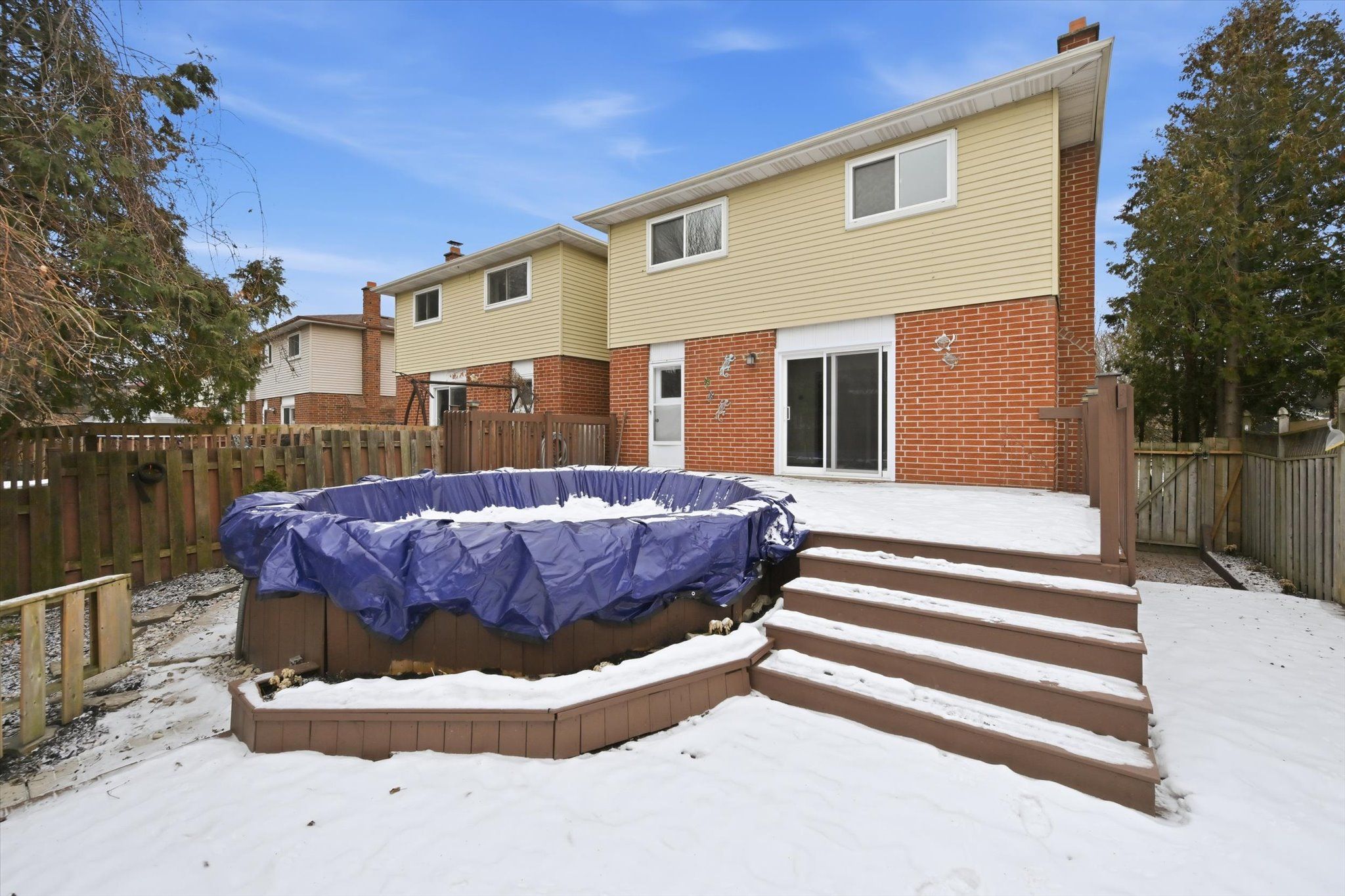 • Fenced yard includes a deck and above-ground pool for outdoor fun.