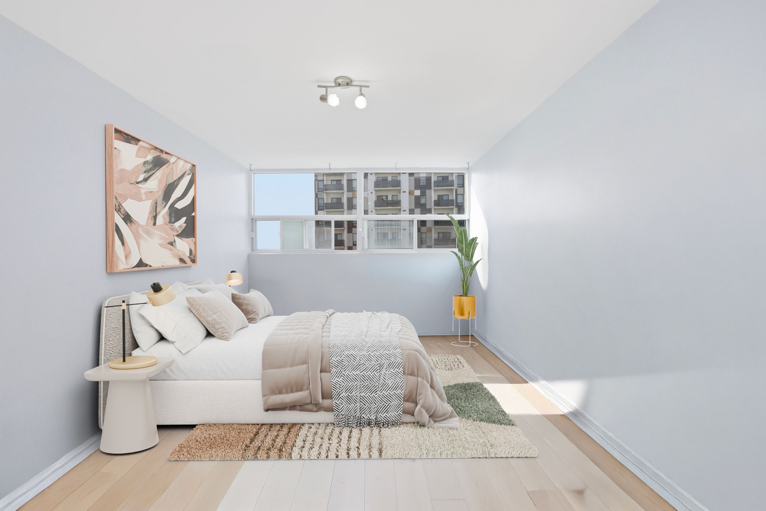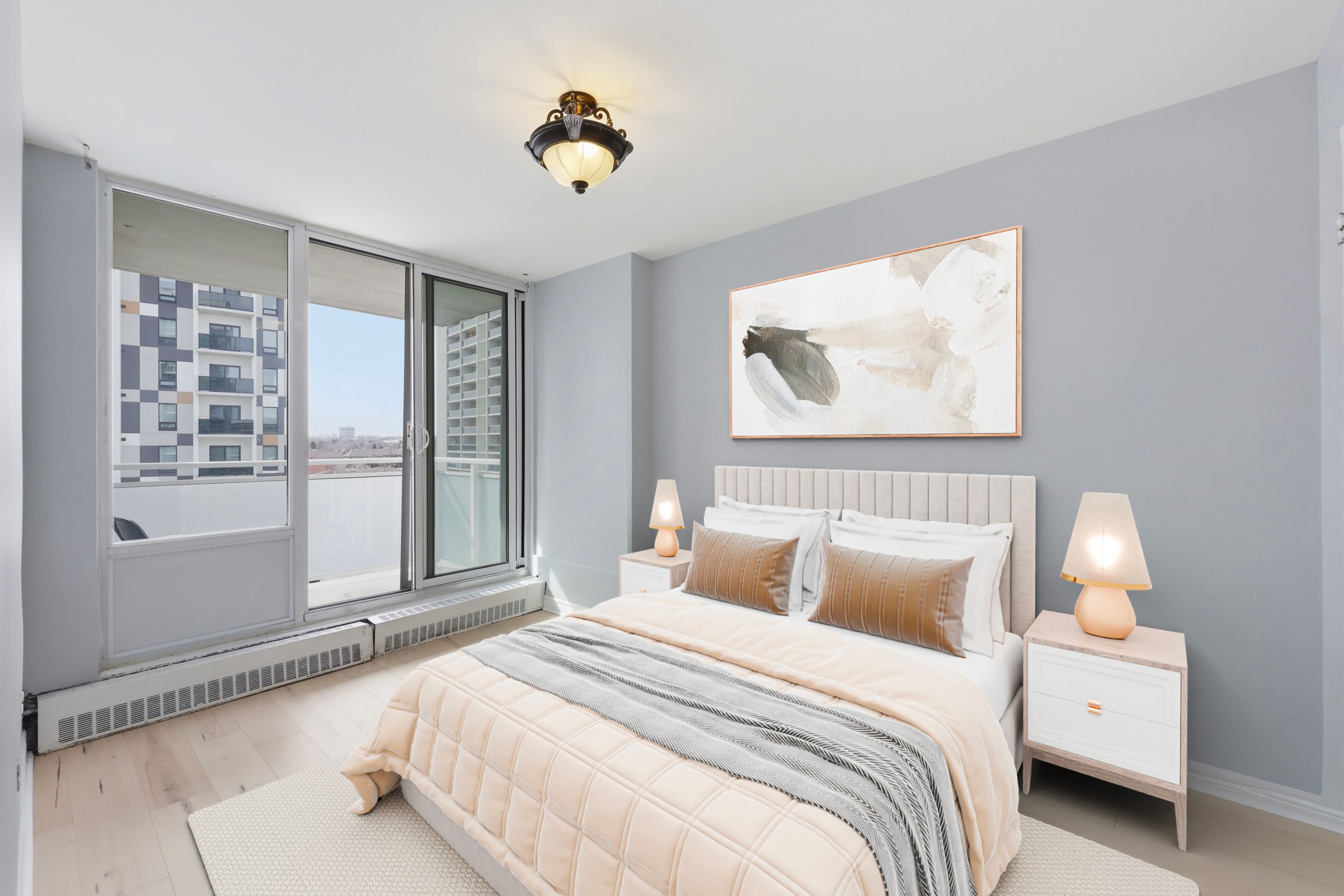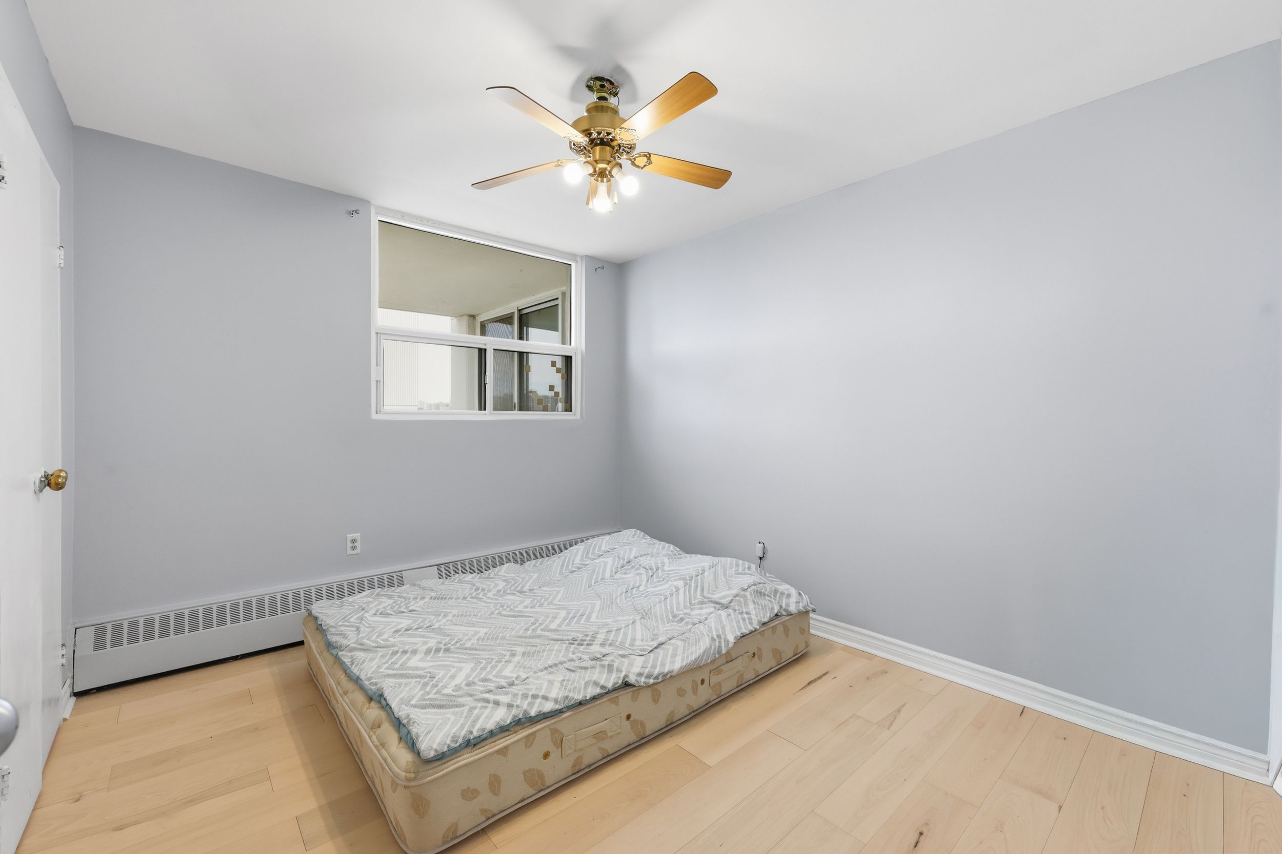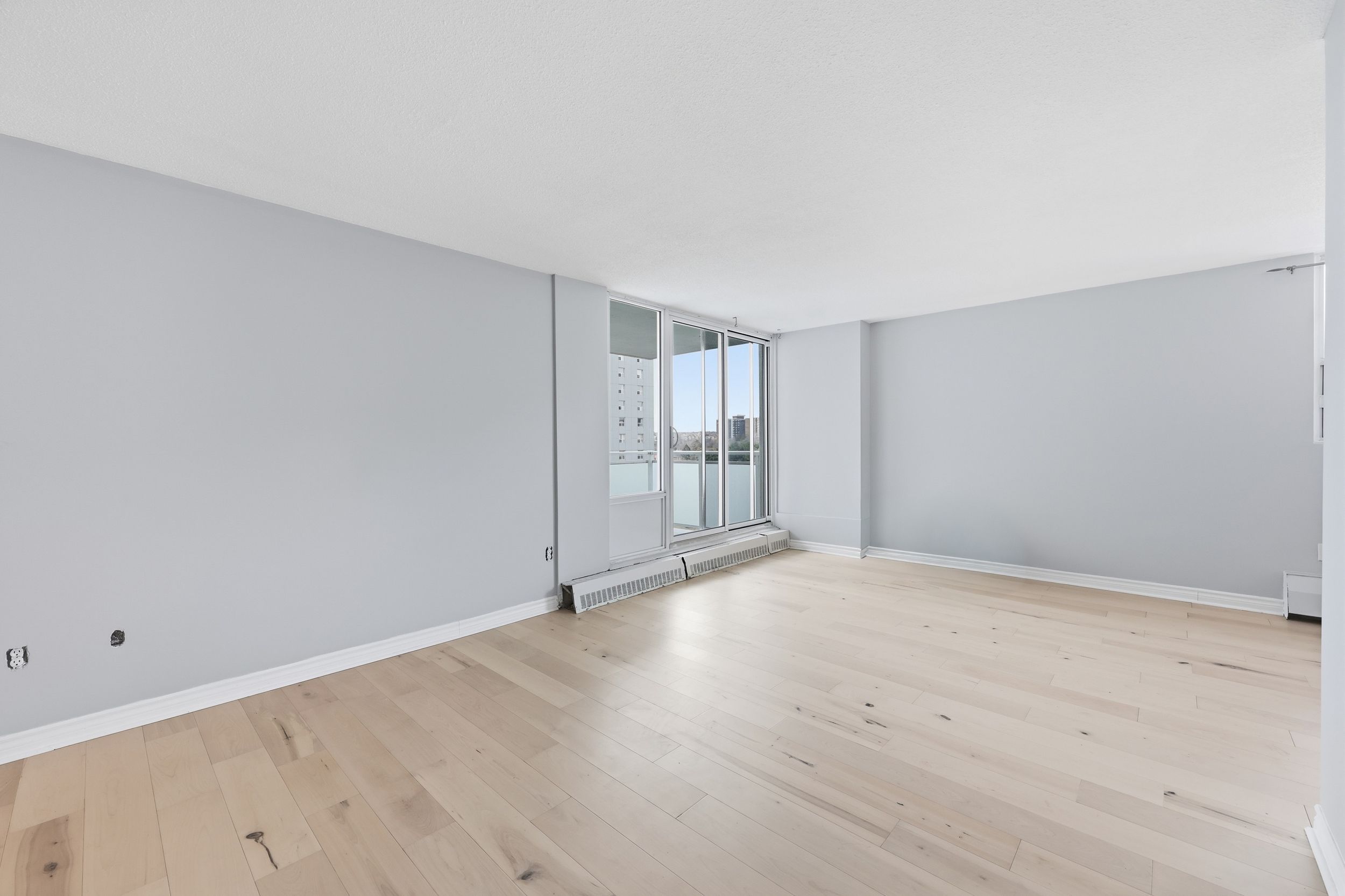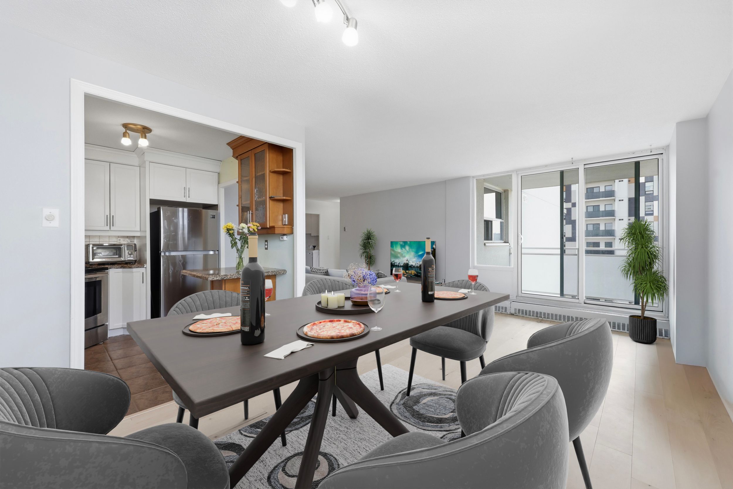 Imagine walking into a bright, freshly painted spacious 3 bed, 2 wash condo designed for comfortable family living. As you step inside, you're welcomed by over 1,100+ sq ft of living space with hardwood floor throughout, with an open living and dining area that feels perfect for hosting friends or enjoying a cozy evening at home. Large windows bring in plenty of natural light, and from here you can step out onto one of two private balconies, a great spot for your morning coffee. The kitchen flows easily into the main living area, making everyday life and entertaining simple and convenient. Down the hall, you'll find three generously sized bedrooms, including a spacious primary bedroom. This unit also features two bathrooms, making busy mornings easier for the whole family. One of the practical highlights is the separate laundry room with a full-size washer and dryer, along with a large storage closet off the main hallway, giving you plenty of space to stay organized. The building itself has seen many updates, including a refreshed stucco exterior, new windows and balcony doors, a newly paved parking lot, and a renovated underground parking area. Residents will soon enjoy amenities (renovation on-going) like the fitness room and party room. And the location is hard to beat. The building sits just half a block from the hospital, only five minutes from the new lrt, and there's public transit directly in front of the building for easy commuting. Shopping, daily essentials, and restaurants are all within walking distance, plus you're just minutes from square one shopping centre. A spacious home, practical layout, and an incredibly convenient location - this condo checks all the boxes for comfortable city living. Some photos has been virtually staged.