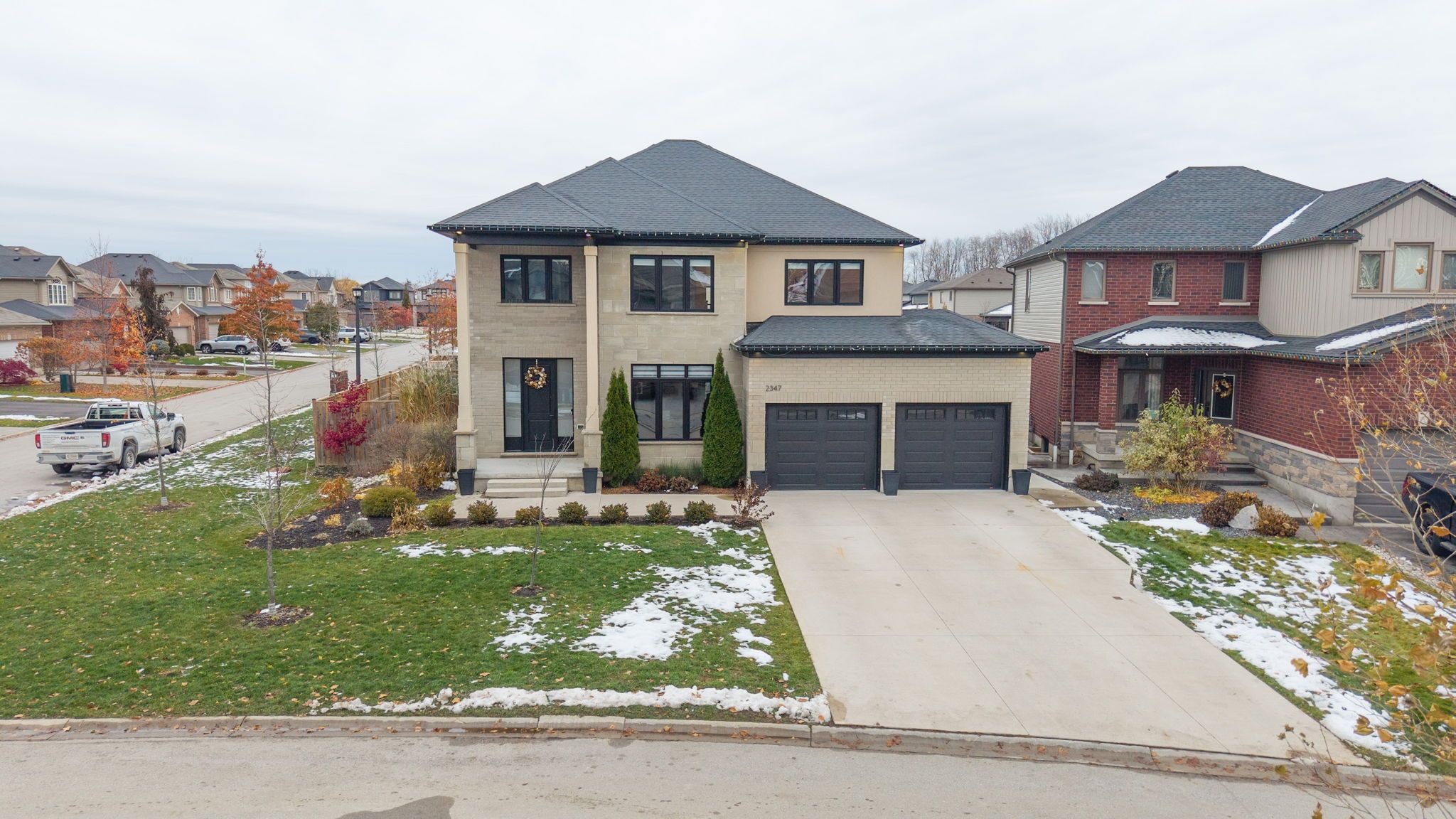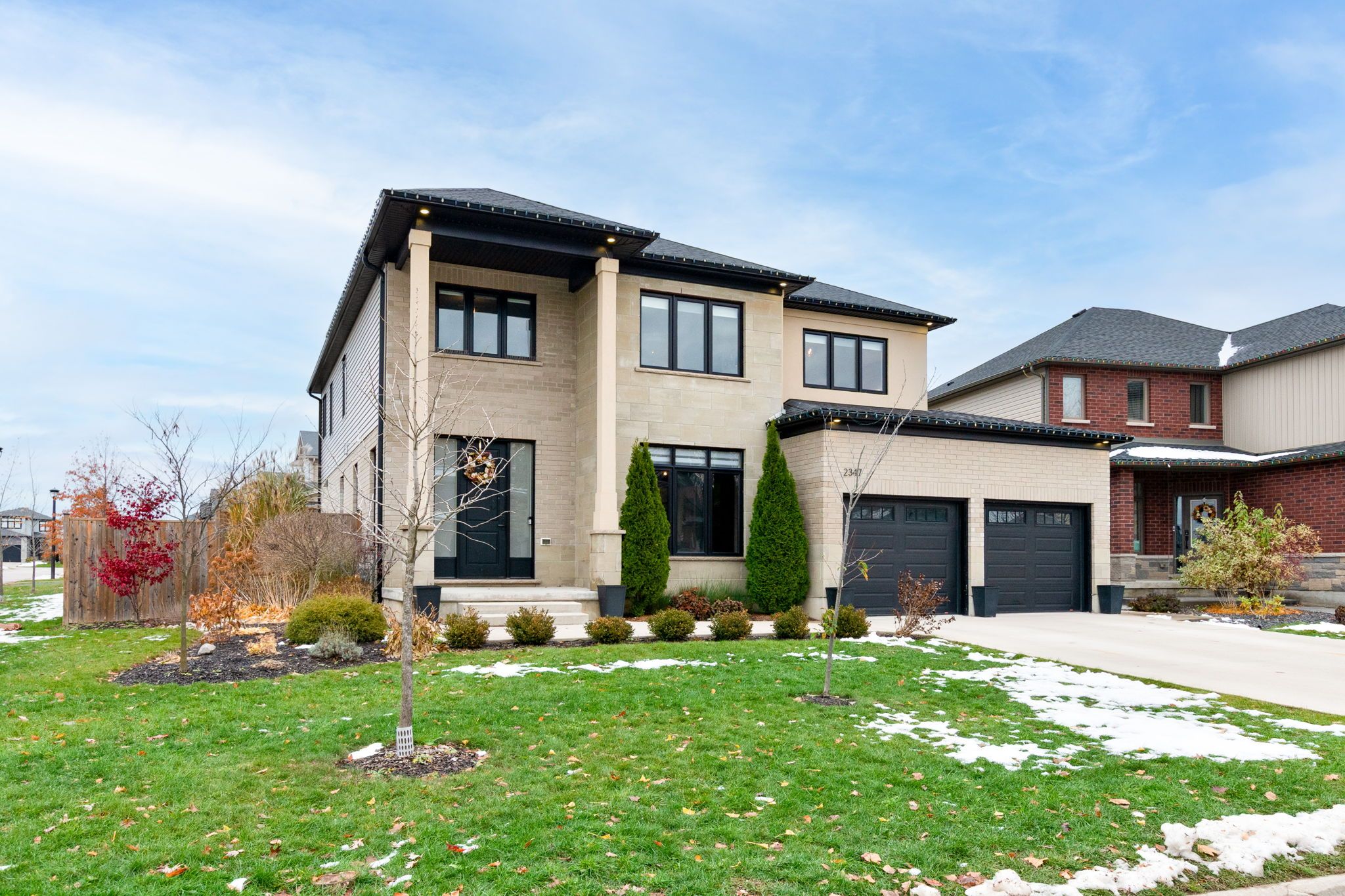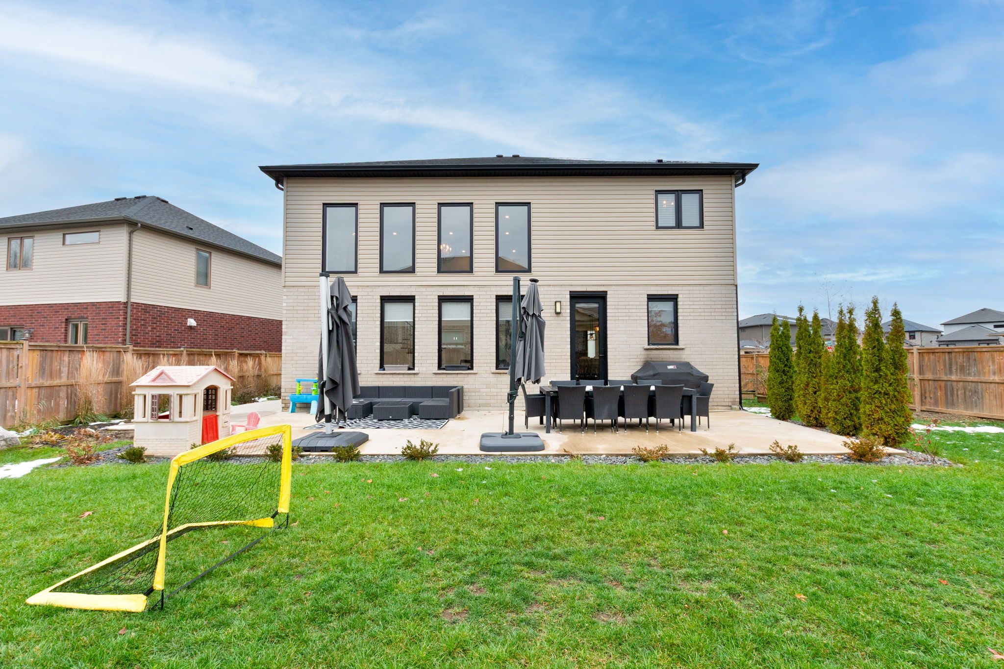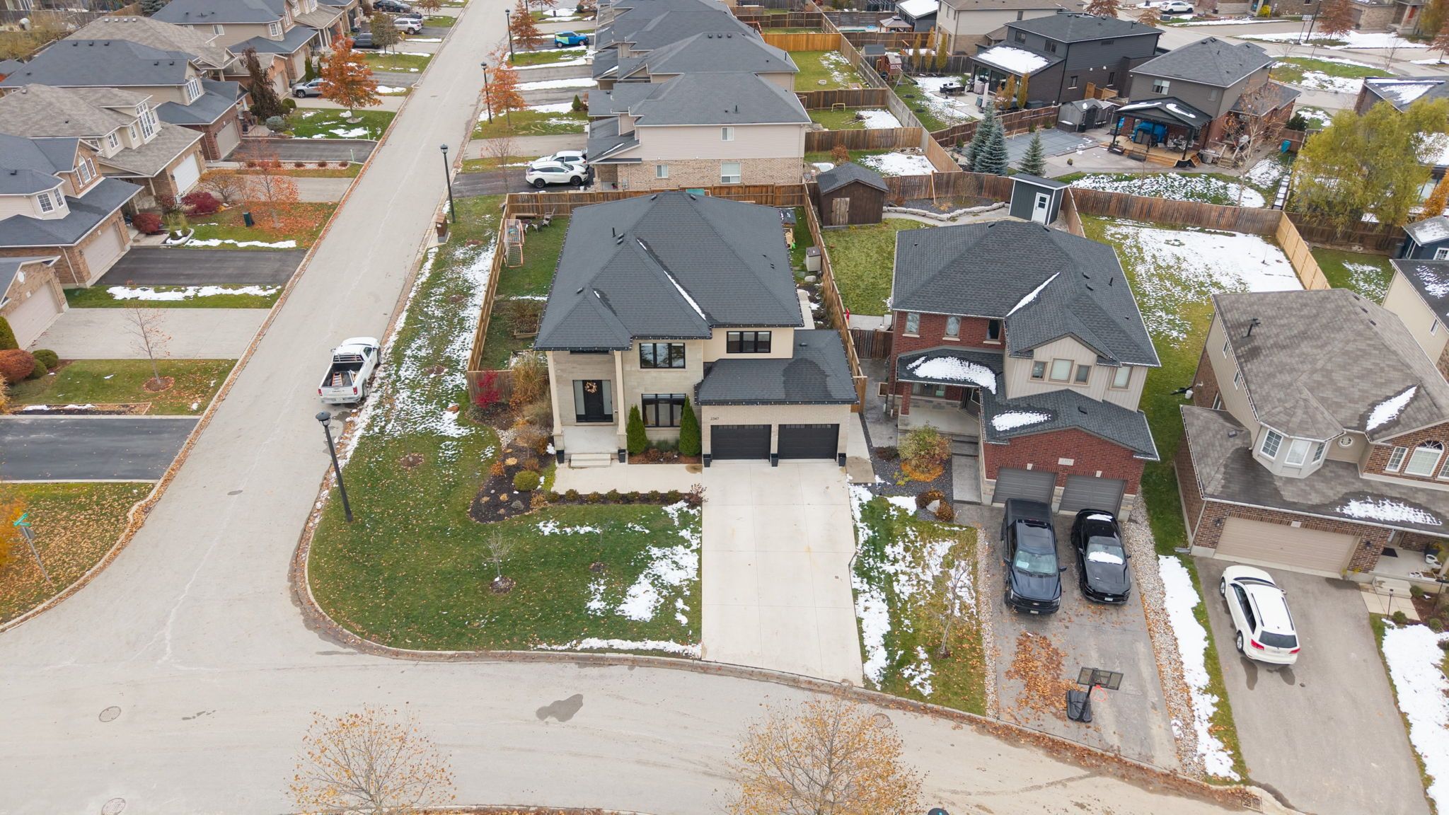 Welcome to this stunning custom everleigh homes inc. Built 2-storey home offering over 4,250 sq. Ft. Of complete finished living space on a quite cul-de-sac designed with families in mind, this property features 4 spacious bedrooms and 3. 5 full bathrooms, blending luxury, comfort, and functionality. The main level showcases a breathtaking great room with 20-foot ceilings, bright, oversized windows, and a floor-to-ceiling ceramic tile fireplace that creates a dramatic yet inviting centre piece. The open-concept kitchen offers modern finishes and plenty of space for entertaining. Upstairs, a large second floor laundry room is adjacent to the primary suite which features a spa-inspired ensuite and walk-in closet, while the fully finished basement includes a large rec-room and a full bathroom-perfect for guests or a home gym. Sitting on a massive corner lot, the home boasts a large backyard ideal for kids and family gatherings. Located within the new st. Gabriel's school district and walking distance to sir arthur currie public school, this property offers the best in location, space, and quality craftsmanship. Experience luxury living in one of north london's most desirable neighbourhoods-this home truly has it all!