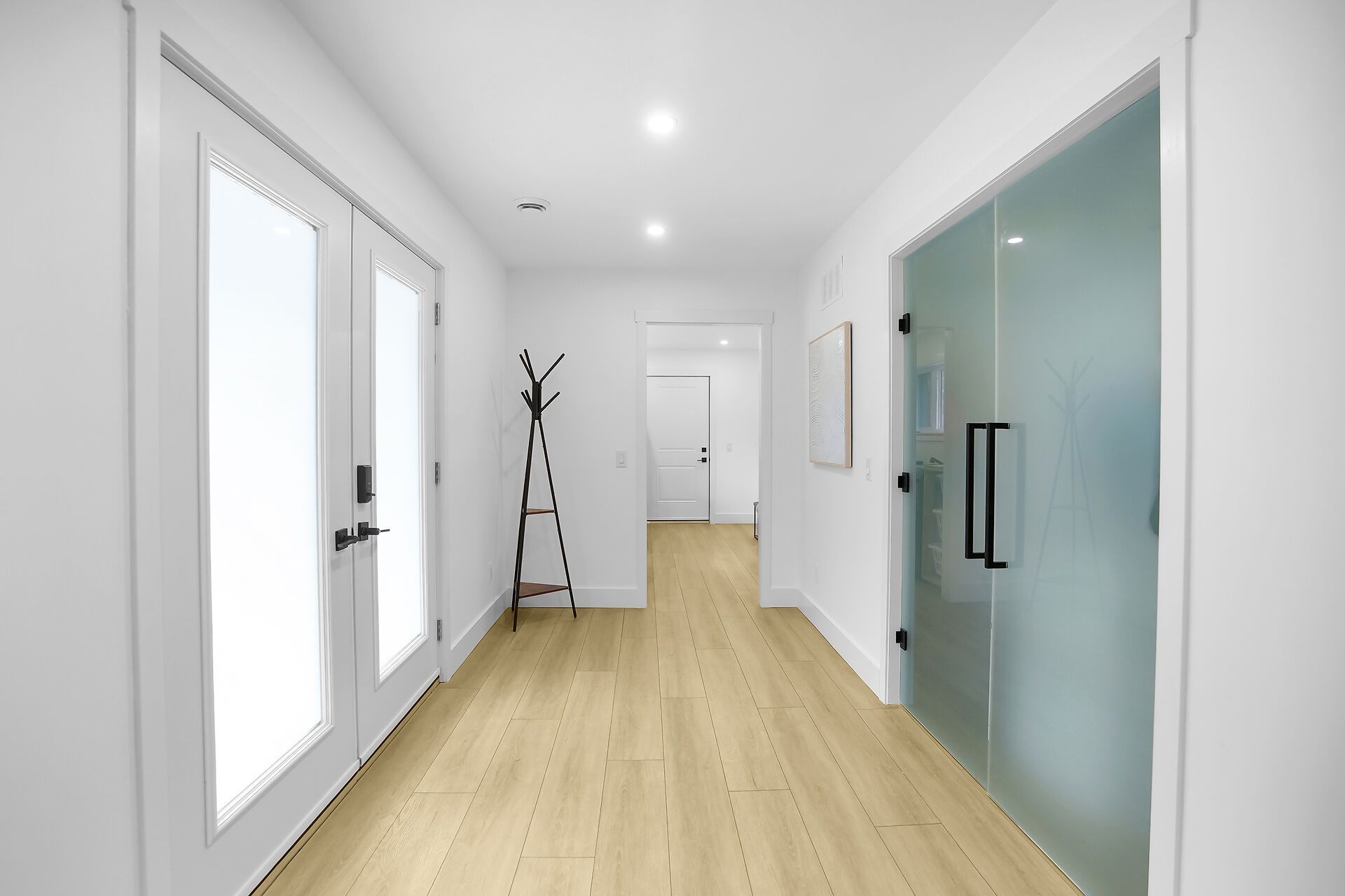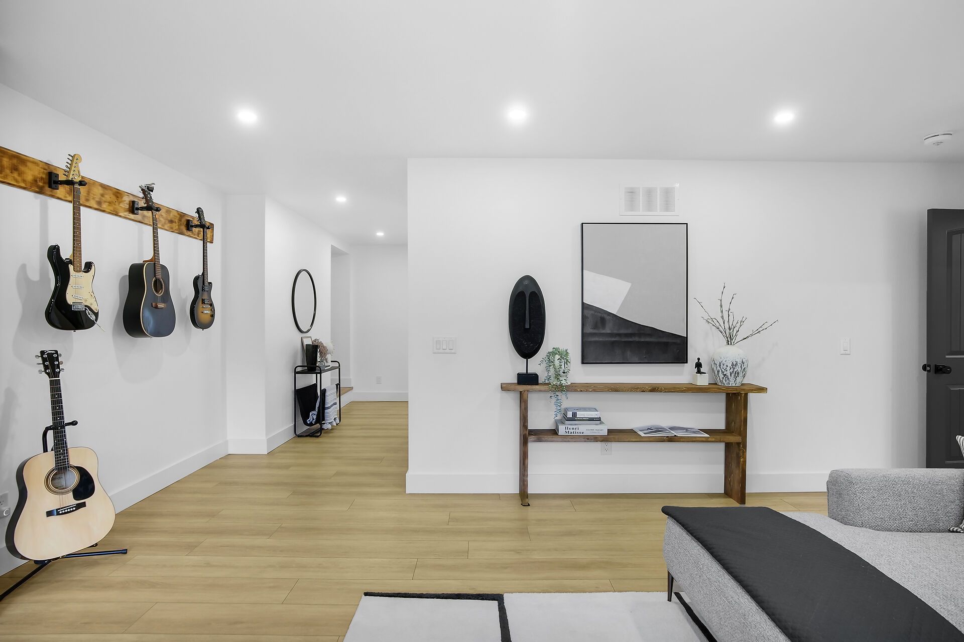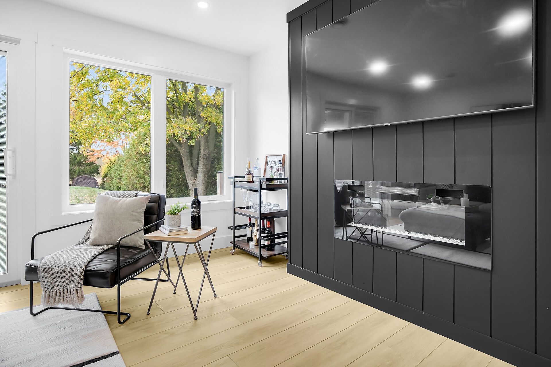 • Modern kitchen with warm wood accents, perfect for cooking and entertaining.
