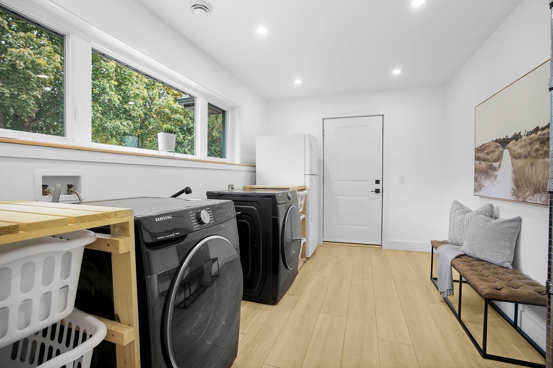 • Main floor features spacious primary bedroom with en-suite and backyard access.
