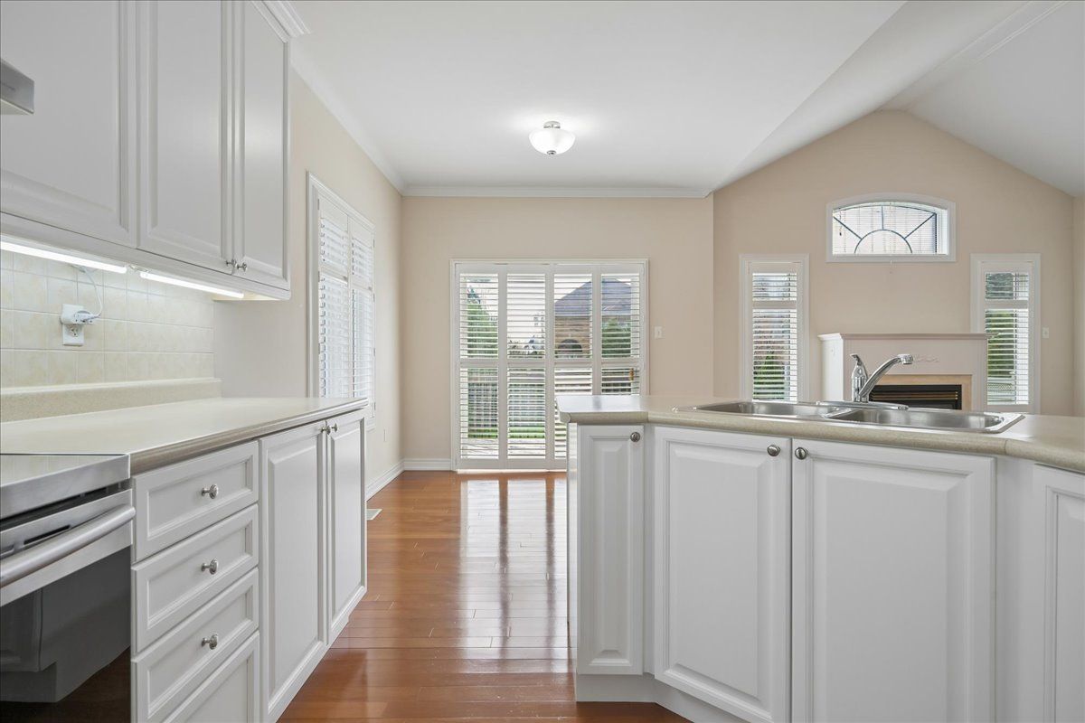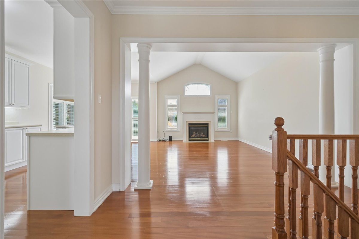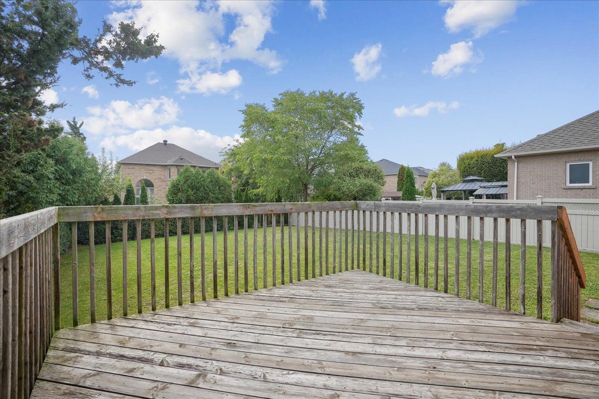 Beautifully renovated bungalow in desirable joshua creek, combining generous space, everyday convenience, and a bright, welcoming feel-easy living all on one level. The main floor features an expansive foyer with vaulted ceilings, open living/dining room overlooking the front gardens, and rich brazilian hardwood throughout. Recently renovated gourmet kitchen with stainless steel appliances. Opens to the eat-in area and family room, making it the perfect hub for both daily living and entertaining. The family room boasts vaulted ceilings, oversized windows, and a cozy gas fireplace. From the eat-in kitchen, walk out to the deck, bbq area, and private rear premium pool size yard for summer enjoyment. Two spacious bedrooms on the main floor offer hardwood floors and walk-in closets, with a third bedroom and ensuite bath on the lower level. The basement remains unspoiled, ready to customize. Nestled on a quiet crescent close to top-rated schools, trails, shops, amenities, and major highways-this home truly captures the best of joshua creek living. No direct neighbour-only a backyard beside you for added privacy.