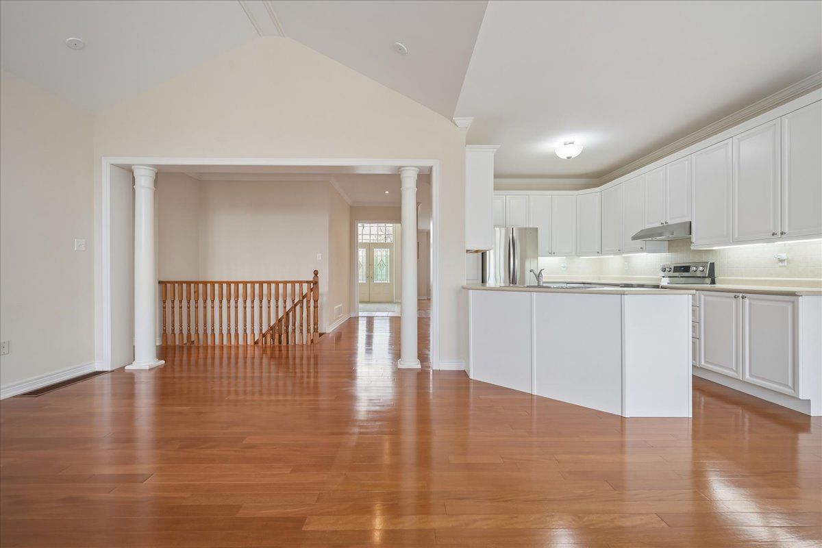 • Expansive foyer and open living/dining area with vaulted ceilings.