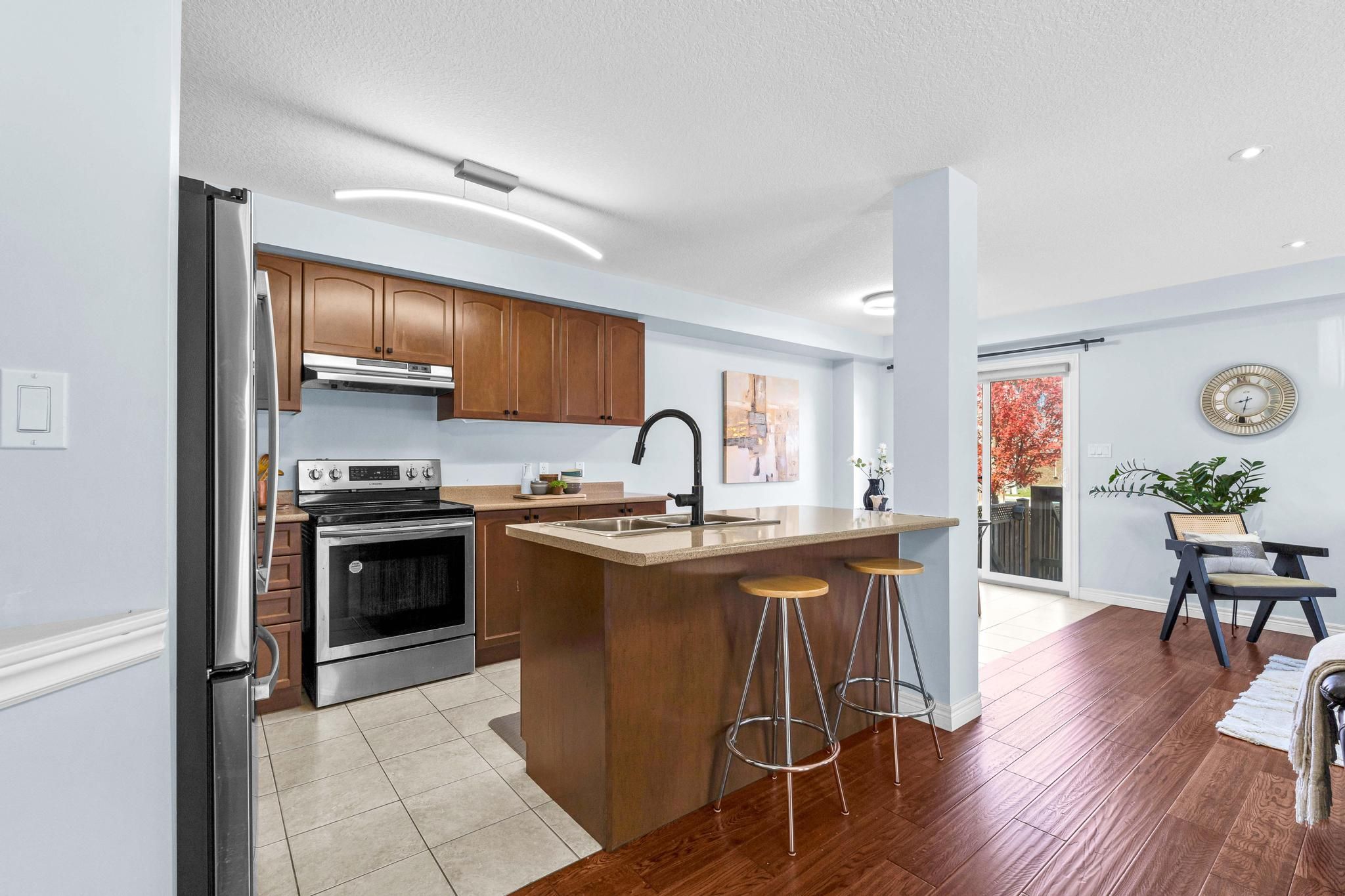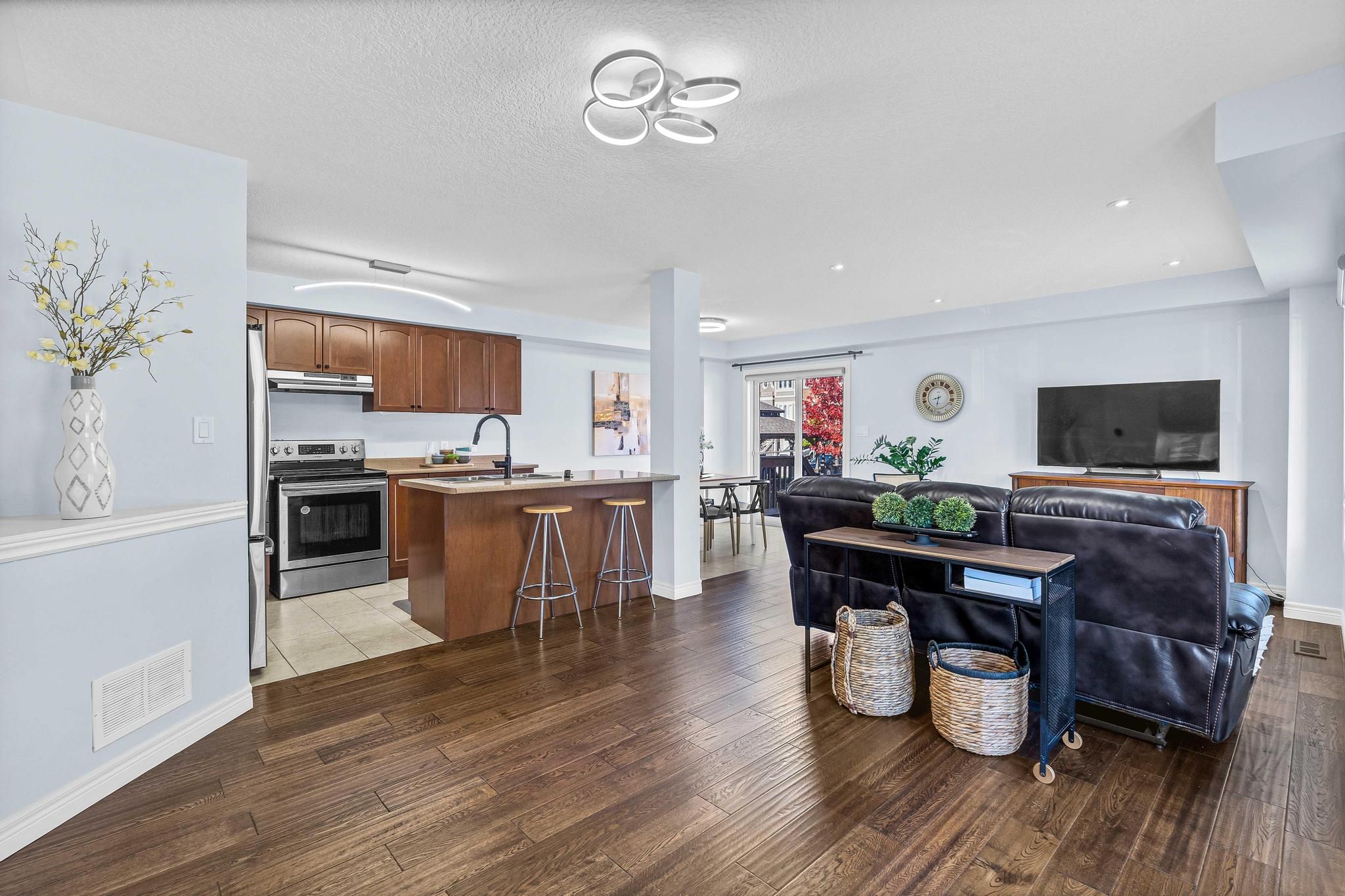 Beautifully maintained townhome in a family-friendly neighbourhood. Bright open-concept main floor with spacious open concept living/dining area and modern kitchen with stainless steel appliances, and main floor powder room. Large primary bedroom with walk-in closet and private ensuite. Two additional bedrooms, and full bathroom. Unfinished basement adds extra storage, living space for a rec room, gym, or media area. Good size backyard, and attached garage with direct access into house. Close to parks, schools, shopping, restaurants, highway access, and stoney creek mountain trails. Move-in ready.