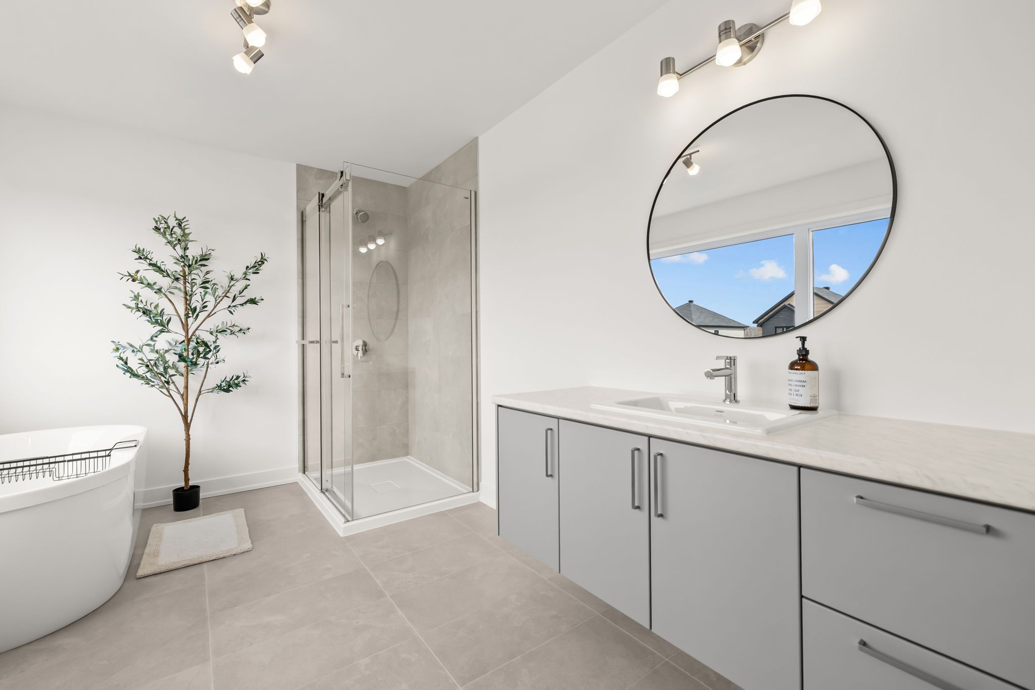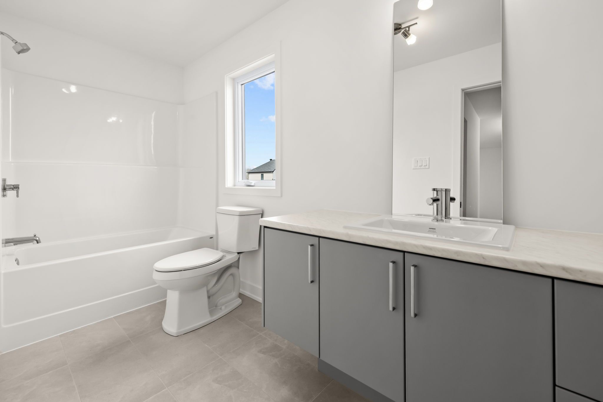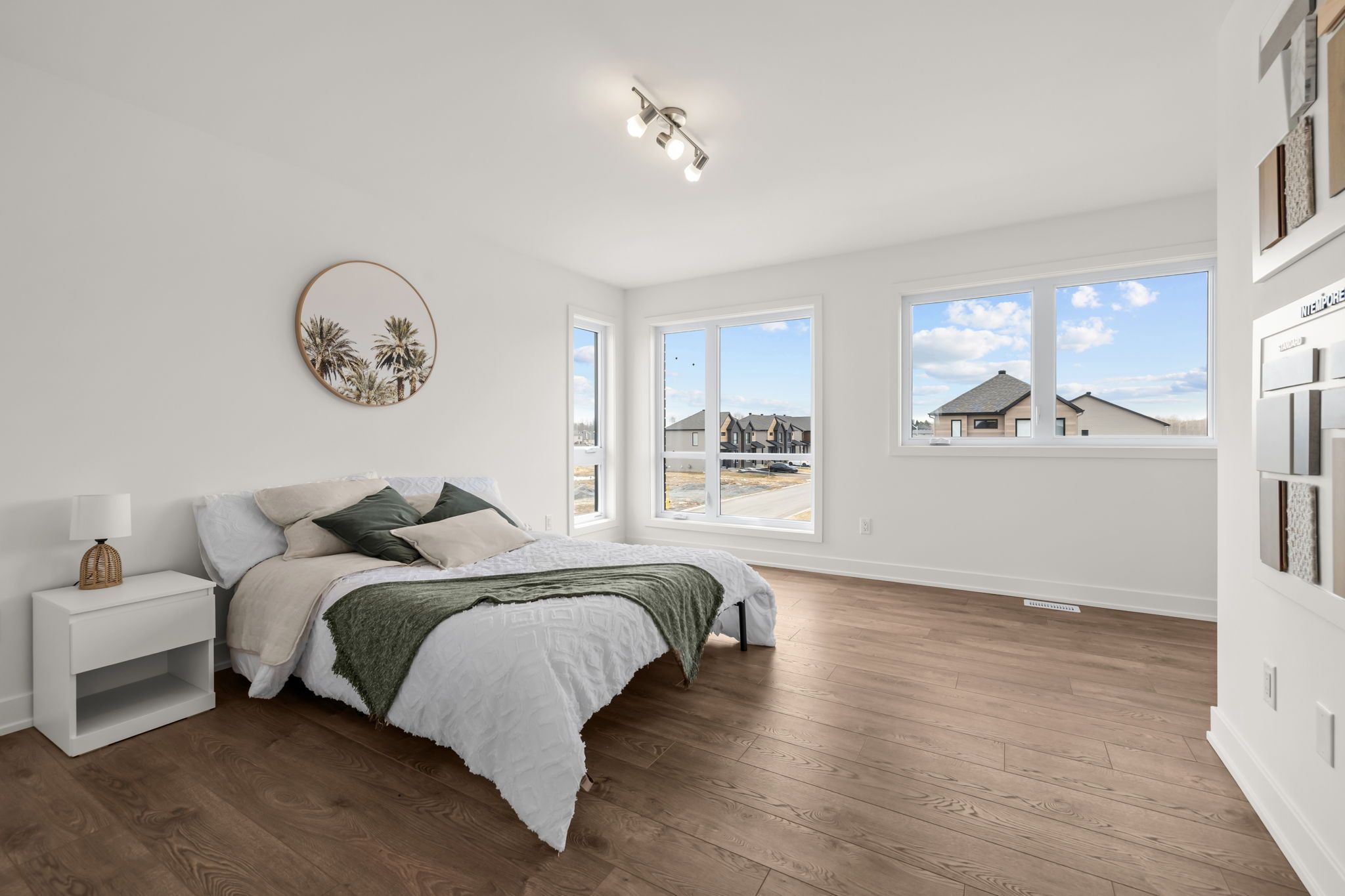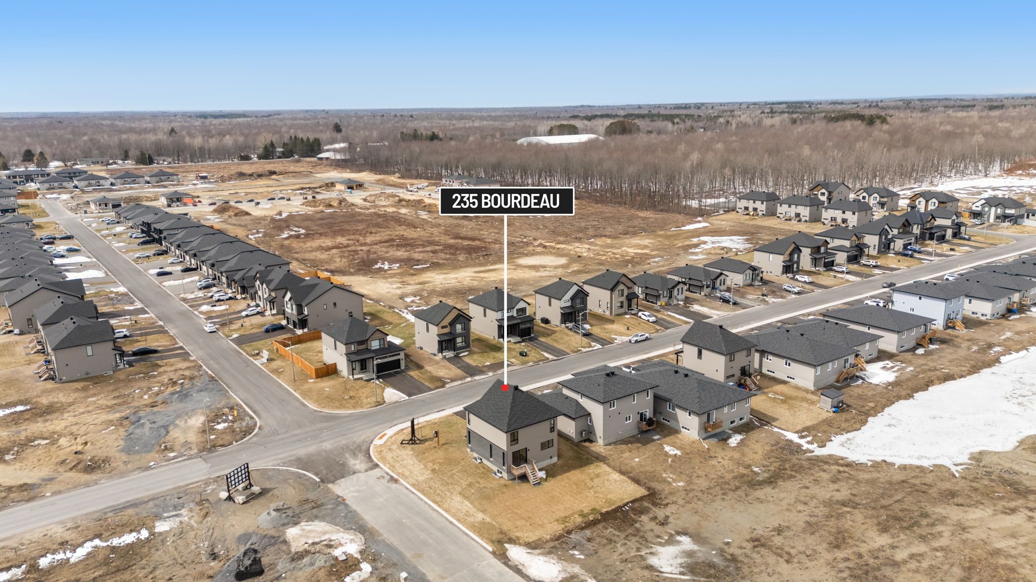 Welcome to 235 bourdeau in limoges, a stunning, brand new home offering the perfect blend of space, style, and comfort, set on an oversized corner lot. Step inside to a bright and airy main floor flooded with natural sunlight, thanks to its south-facing windows and impressive 8-foot patio door. The open-concept layout is ideal for both everyday living and entertaining. At the heart of the home is a chef-inspired kitchen featuring a massive island with seating, sleek quartz countertops, abundant cabinetry, and a dedicated pantry for exceptional storage. The main level also includes a spacious dining area with direct access to the deck, a welcoming living room, and a convenient powder room. Upstairs, you'll find a generously sized primary bedroom complete with a walk-in closet and a private ensuite boasting a luxurious soaker tub and a ceramic shower. Two additional well-sized bedrooms, a modern 3-piece bathroom, and a large, dedicated laundry room complete the second floor. The unfinished basement offers endless potential, with oversized windows and ample space ready to be customized to suit your needs - whether it's a home gym, recreation area, or additional living space. Additional features include a double car garage and thoughtful design throughout. Located in the growing community of limoges, this home puts you close to excellent schools, sports facilities, local events, the beautiful larose forest, and calypso - canada's largest themed water park. A perfect opportunity to own a modern, move-in-ready home in a vibrant and family-friendly neighborhood.