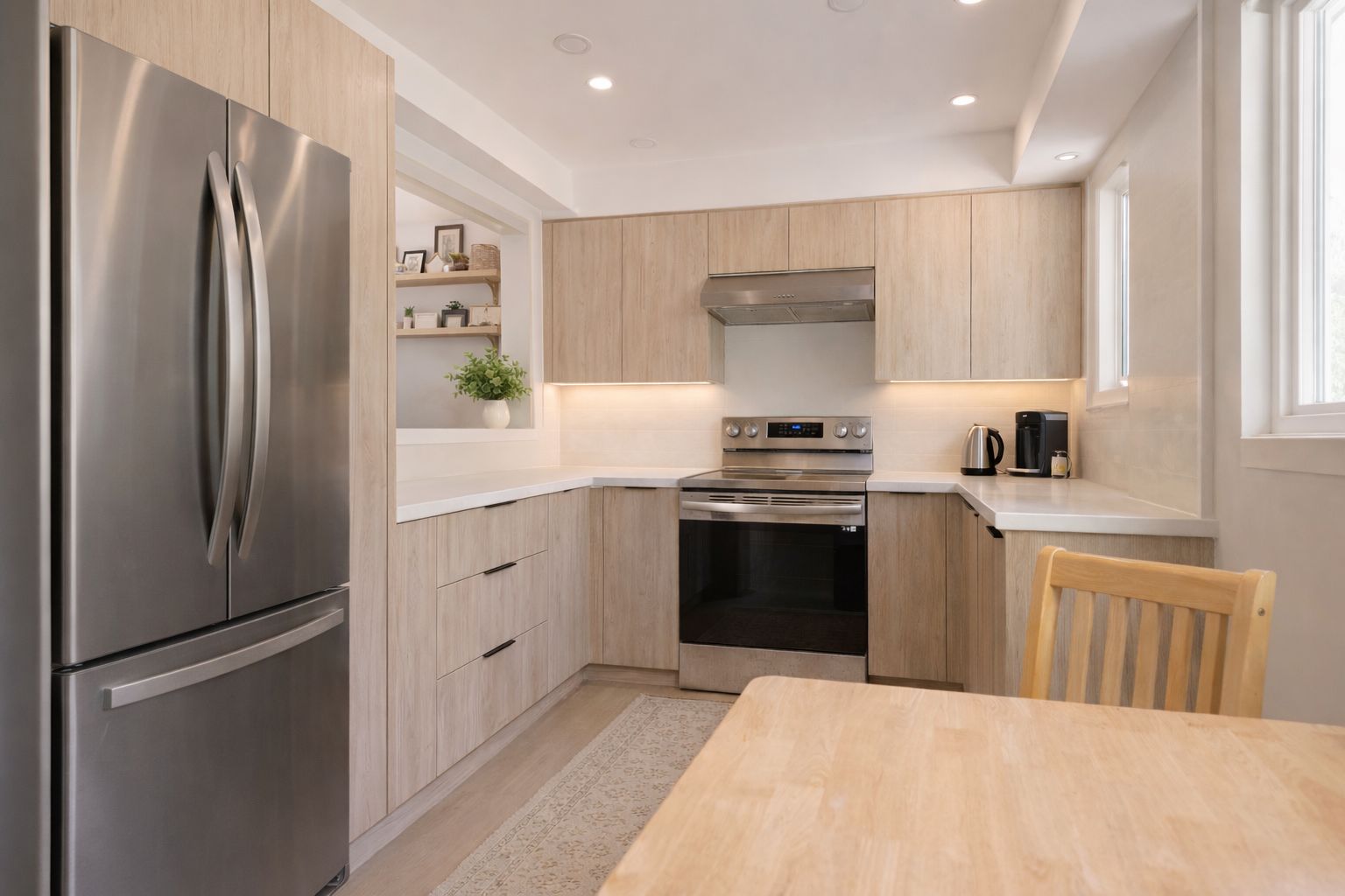 • Upgraded modern appliances and energy-efficient floor heating included.