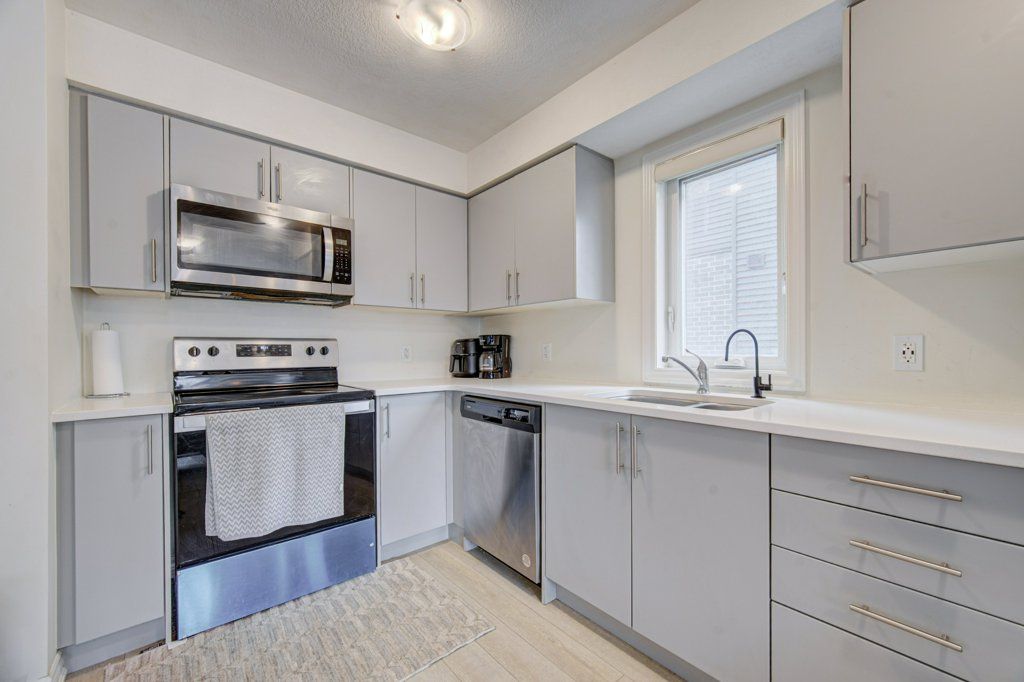 The beautiful corner condo stacked townhouse less than 5 year old , with full sunlight throughout the day good size 2 bedroom with spacious kitchen. Good size family room with spacious balcony the kitchen feature cabinets . With stone counter top and stainless steel appliances, low condo monthly fees covering . Snow removal, grass cutting garbage collections, and building maintenance ,roff, etc the home is close to school, highway 401. Shopping mall, and conestoga college and great community, this is perfect for first time home buyer.