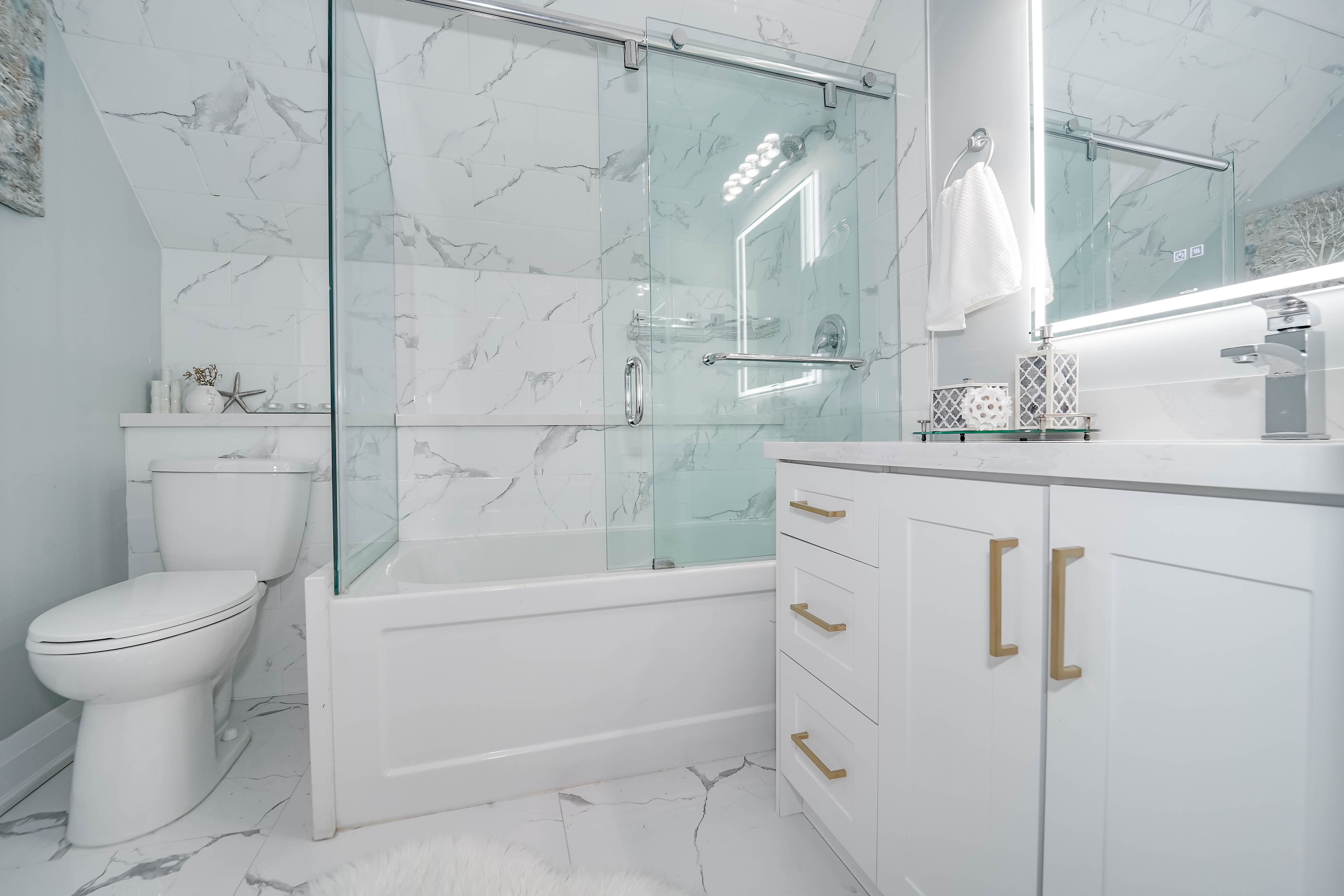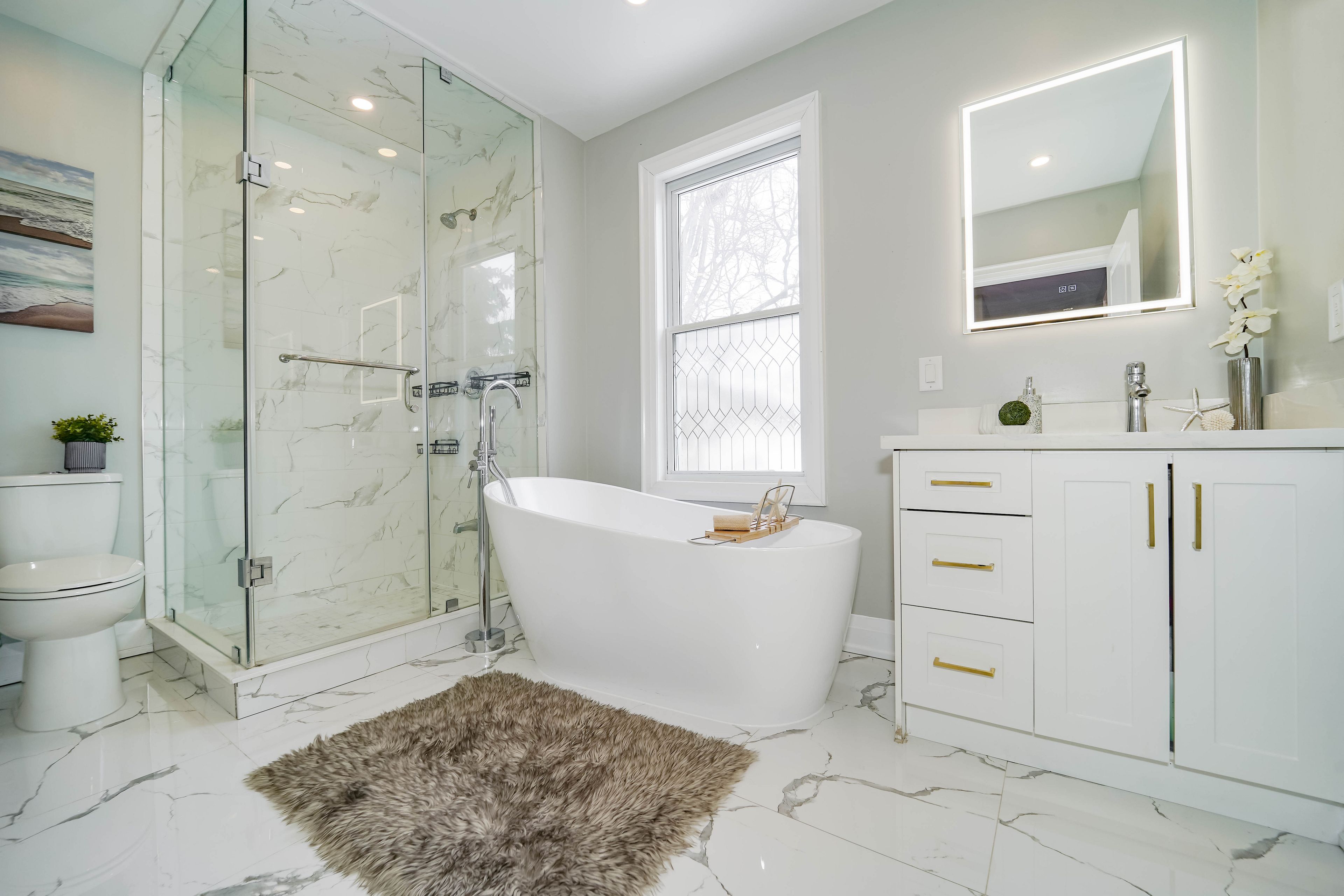 • Fully renovated bathrooms with modern features like glass showers.