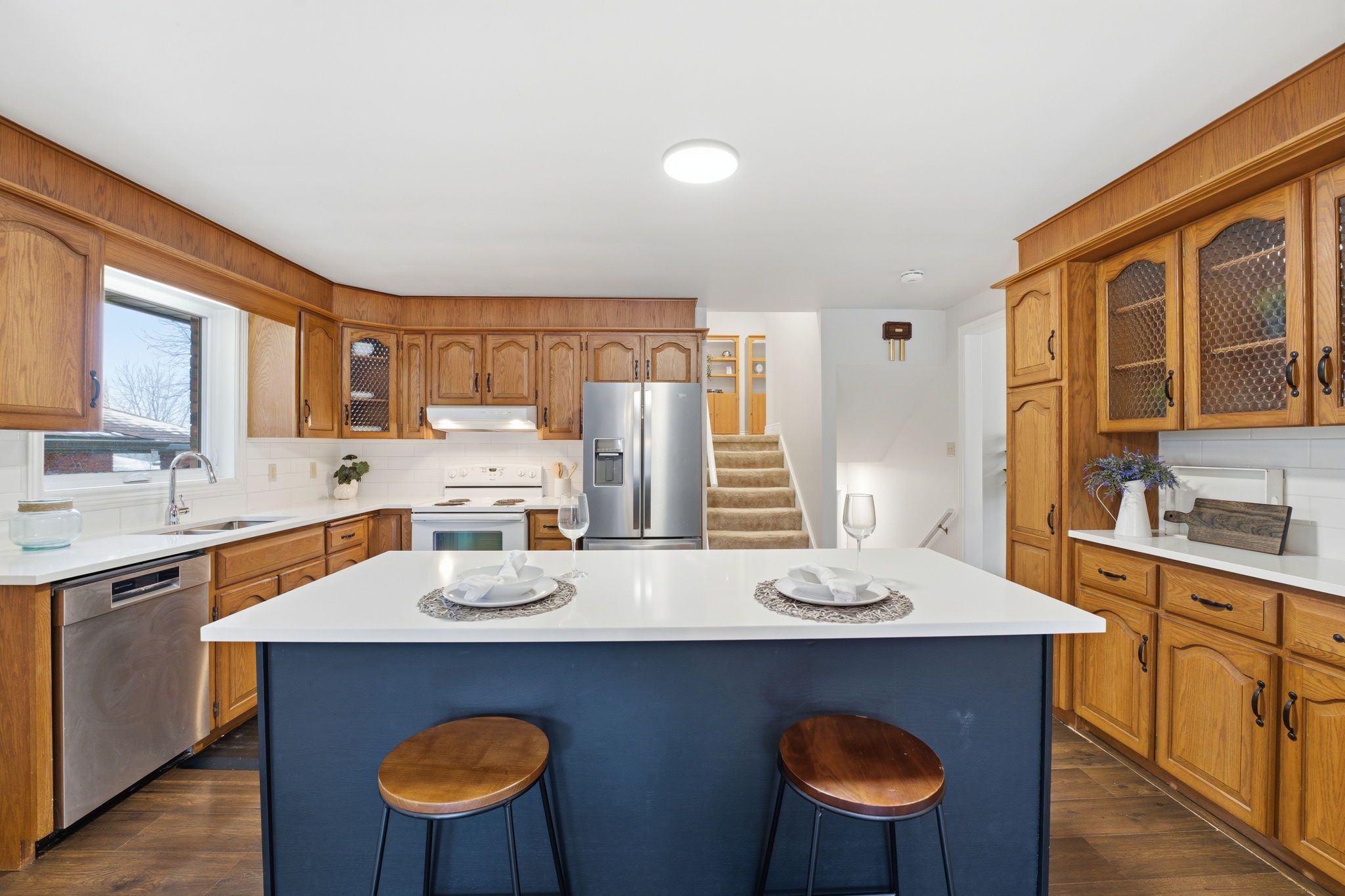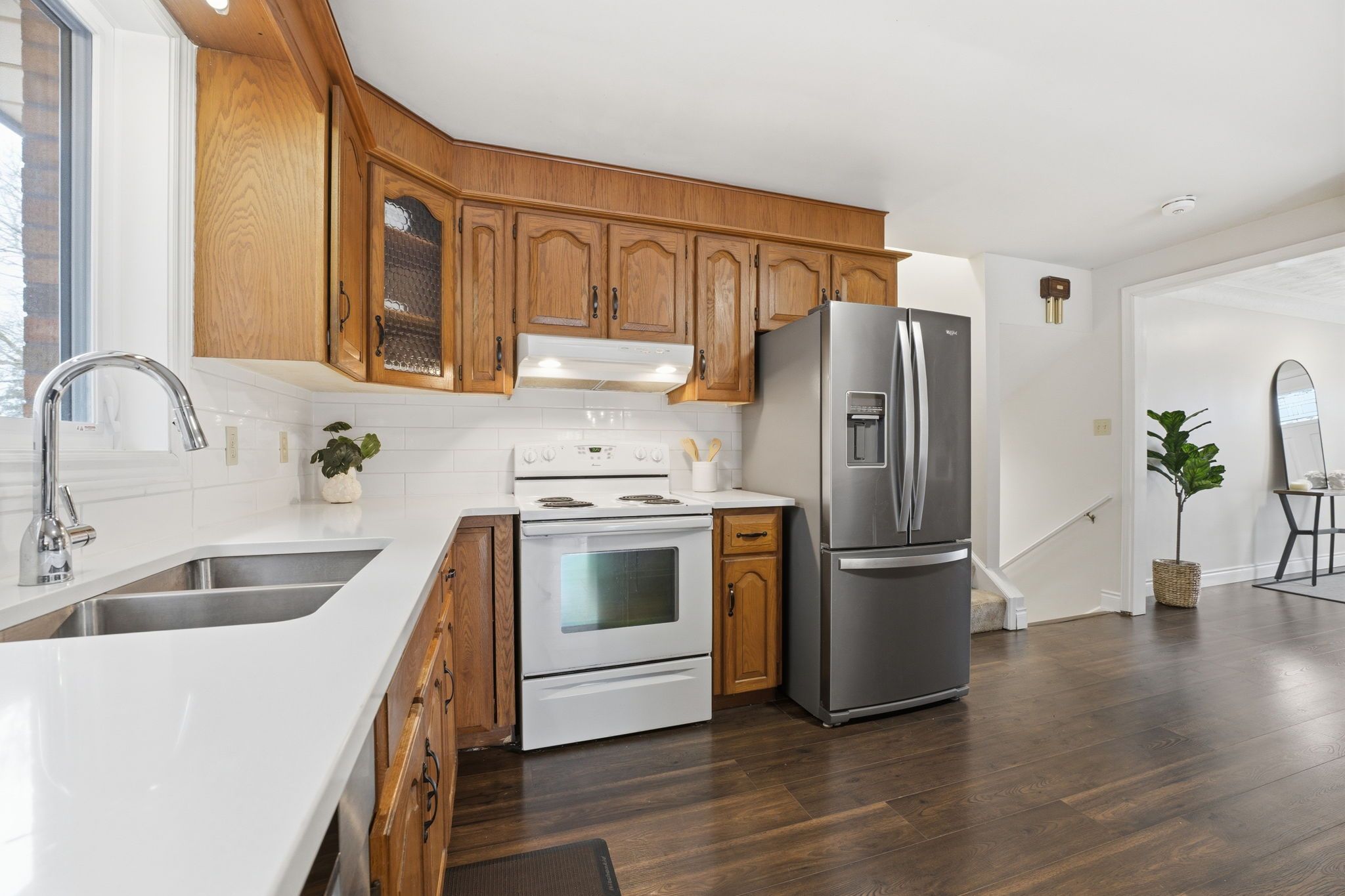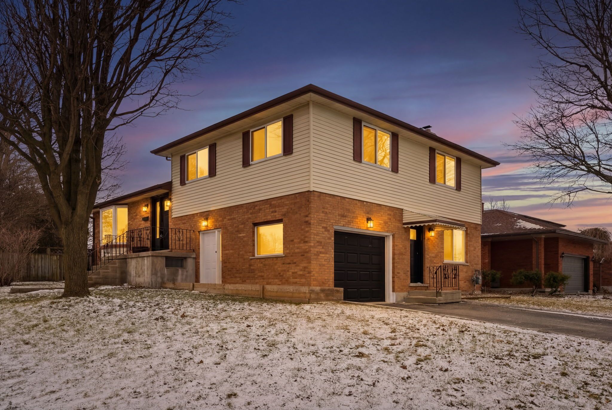 Welcome to 235 elliott street in cambridge, an opportunity to own a spacious and versatile 5-level side split designed to accommodate multi-generational living or provide valuable income potential. Currently, both units are fully self-contained and separate, with the option to create interior access if desired. The main home offers an impressive layout with generous living space throughout featuring a bright and inviting living room, formal dining room, and a well-appointed kitchen. You'll find three generously sized bedrooms, a 4-piece bathroom, and a bonus family room. Perfect for relaxing, entertaining, or growing families. The lower unit adds incredible flexibility with its own open-concept design, complete with an eat-in kitchen and dining area, two bedrooms, a full bathroom, and a spacious living room-ideal for extended family, guests, or rental income. Notable recent updates include the addition of a legal accessory residential unit, updated windows and doors, a newer deck, water softener, furnace and air conditioning system, as well as upgraded attic insulation (r50) for enhanced energy efficiency. Step outside to enjoy the expansive backyard, offering endless possibilities for outdoor living, gardening, and entertaining. An ideal space to spend countless hours creating memories with the people you care about most. Complete with a single-car garage and a double-wide driveway accommodating up to four vehicles. Situated in a mature, family-friendly neighbourhood, you'll love the charm of tree-lined streets, peaceful walks, and the convenience of being close to schools, parks, shopping, and all amenities. A home that offers space, flexibility, and opportunity, 235 elliott street is ready to grow with you and your future.
