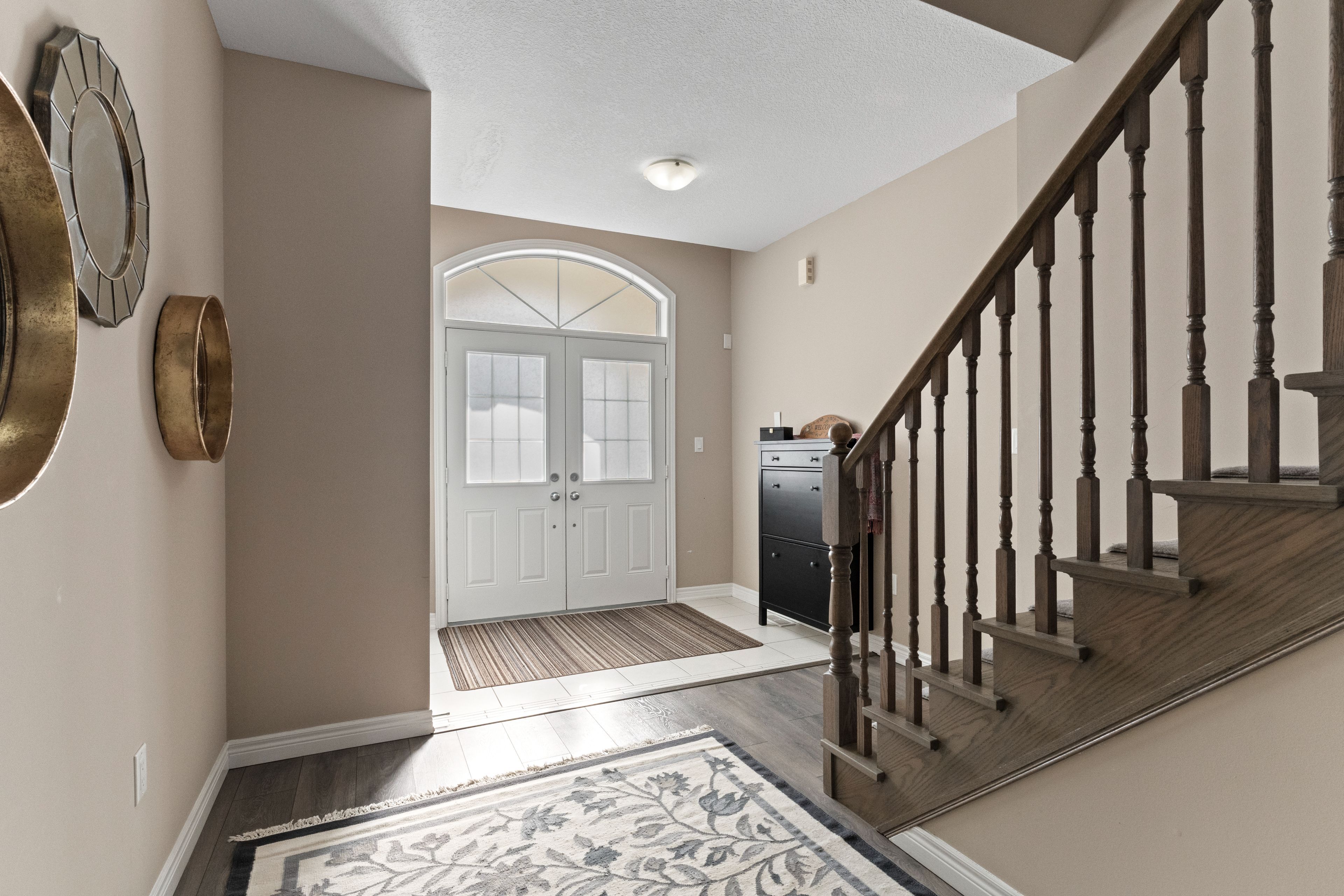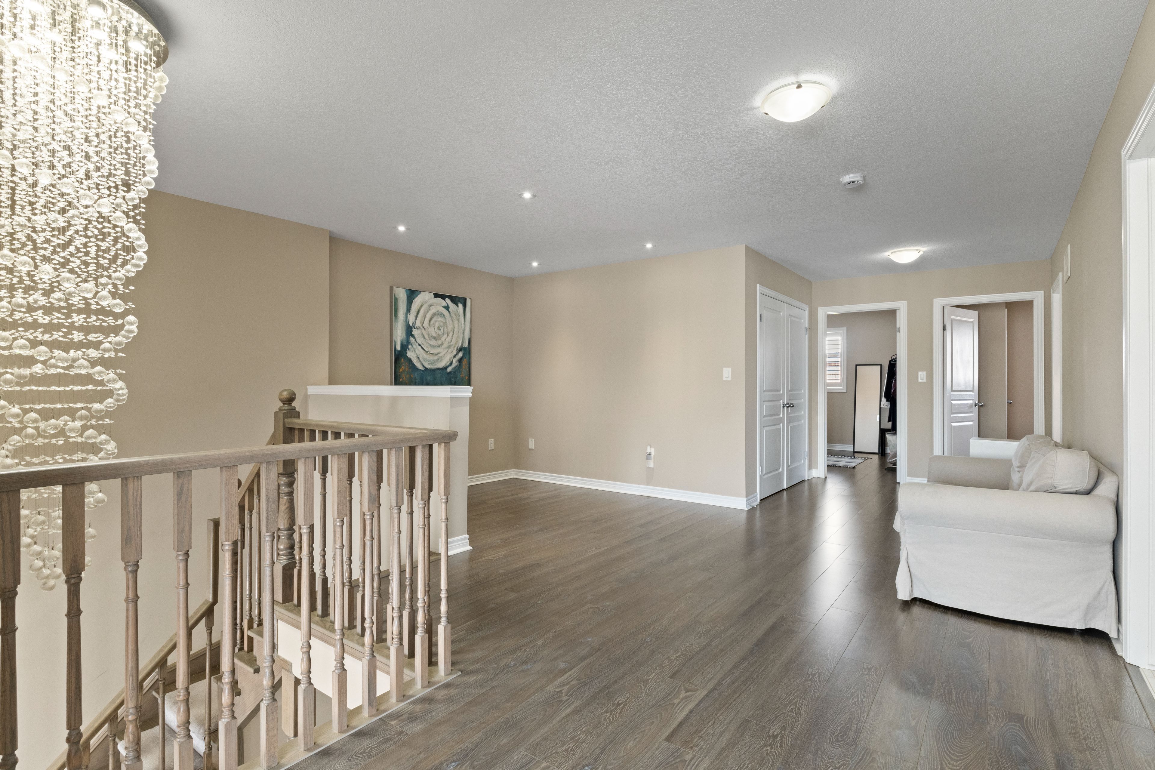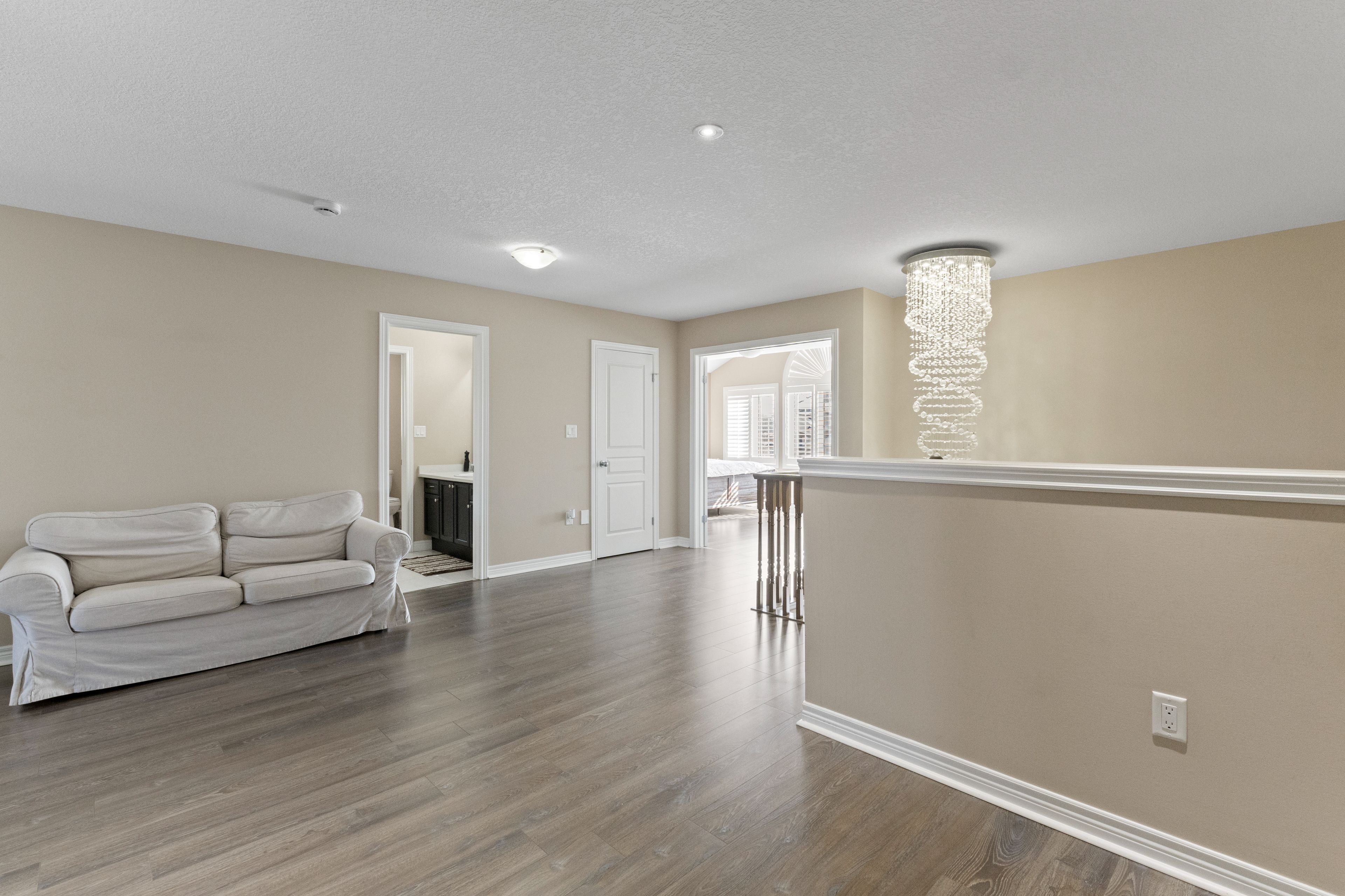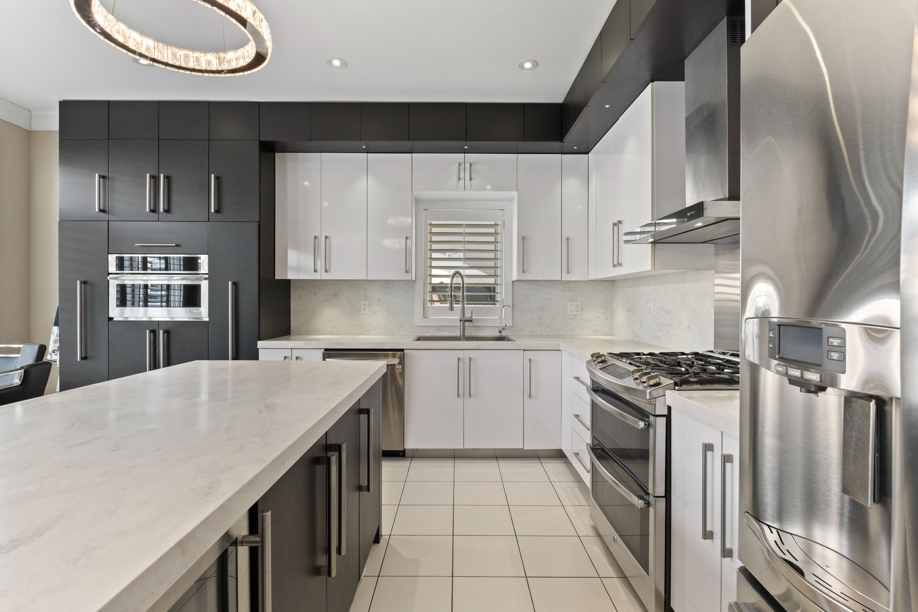 Spectacular 2,642 sq. Ft. Landmart-built home on a premium lot! Welcome to this beautifully upgraded home showcasing exceptional craftsmanship and thoughtful design throughout. Featuring a full stucco exterior with additional rear windows, this residence offers both striking curb appeal and an abundance of natural light. The interior boasts 9-ft california ceilings, 4" trim, crown moulding, oversized tiles, led lighting throughout, and california shutters installed in 2016. The custom kitchen is a true showpiece, high-gloss laminate cabinetry, a custom pantry in the dinette area, solid-surface (corian) countertops, and a full-height backsplash. Premium appliances include built-in jenn air microwave and conventional oven, jenn air range hood, ge profile double-oven gas range, ge french door refrigerator, wine cooler, and a large centre island perfect for entertaining. Just move in! The spacious family room features a stunning custom stone fireplace, while the main floor also offers a private office/den and a functional mudroom. A full oak staircase leads to the upper level, where double doors open to the luxurious primary retreat complete with a vaulted ceiling and walk-in closet. The spa-inspired ensuite includes a jetted tub with tiled deck, glass-enclosed shower, and granite countertop. A large open loft provides additional living space, and the convenient bedroom-level laundry room includes extra cabinetry and countertop workspace for everyday functionality. Additional highlights include 200-amp electrical service, finished garage with heater, central vacuum, and gas bbq rough-in in the backyard. A truly exceptional home offering comfort, style, and quality upgrades throughout!