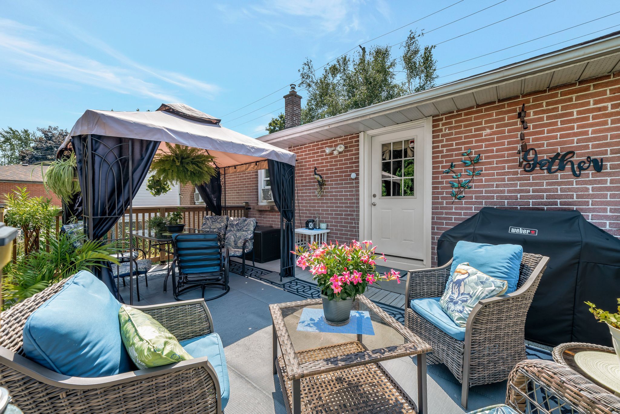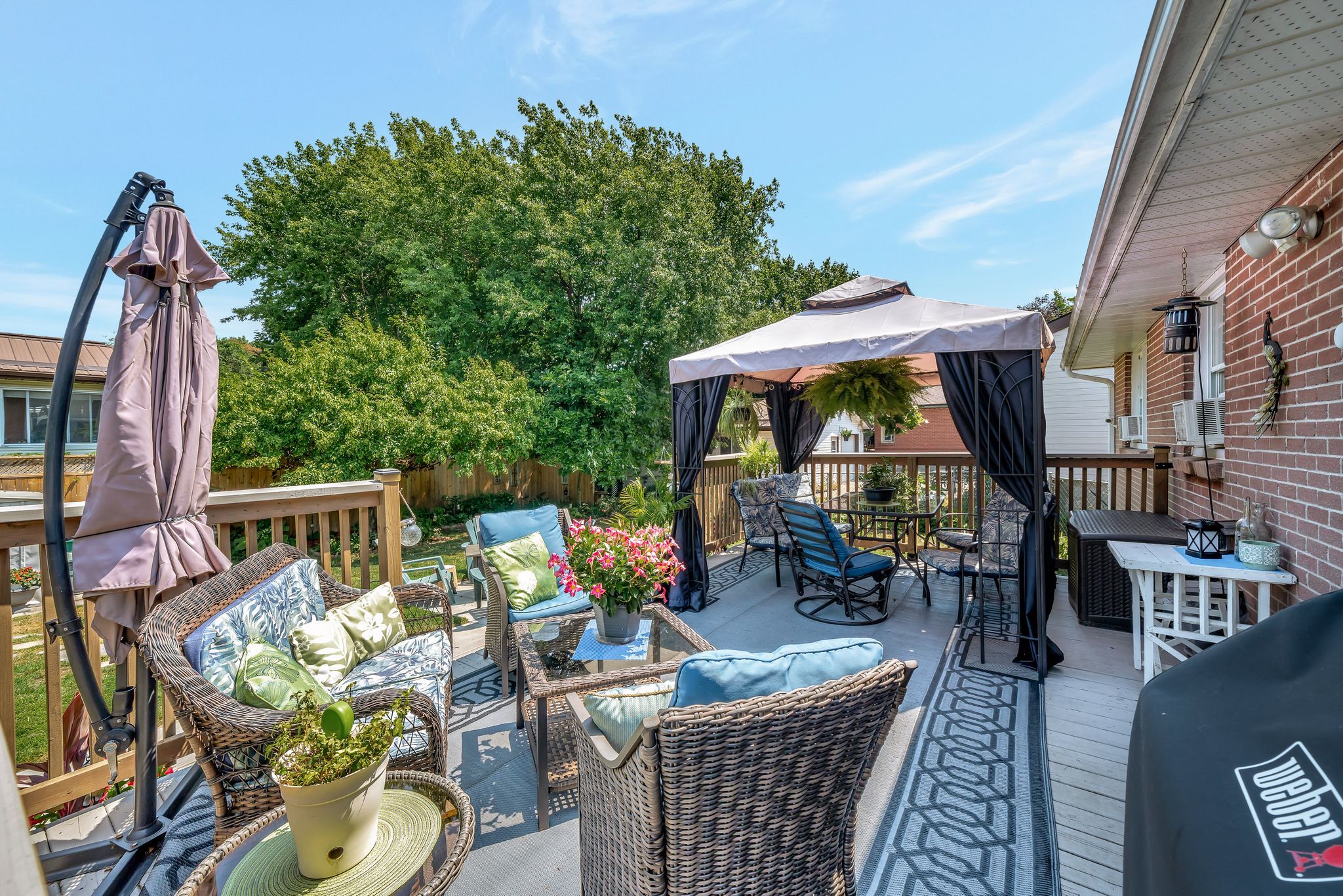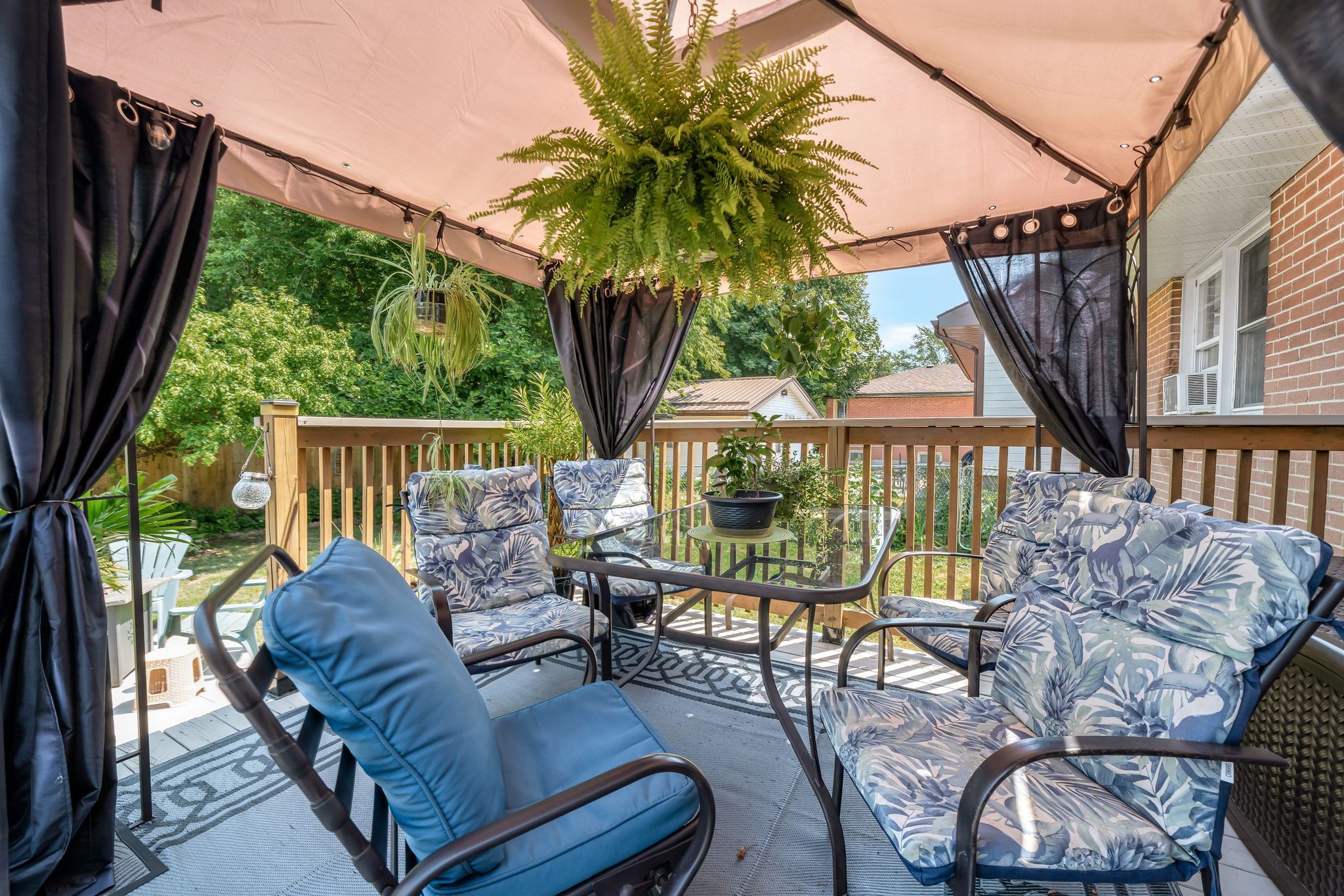 Belleville's east end, admired for its established neighbourhoods, larger lots, convenient proximity to town's amenities & recreation trails. You're invited to view this well maintained all brick bungalow residing in the heart of it all. 3 entry options include the updated front deck, side door or rear deck into this charming abode. Tile floored kitchen with oak cabinetry & double width window allows fabulous natural light into this comfortable eat-in space. Hardwood flooring with updated doors & hardware throughout the spacious main floor living with west facing bay window. Three great sized bedrooms on this main level with the third offering a mudroom option if you prefer featuring closet & rear deck access. The stylish updated full bath here is sure to impress with its deep soaking tub & tasteful selections. Full basement provides additional finished living space and wonderful in-law potential if desired with a 3 piece bath & an entertainers wet bar complete with sink, refrigerator & custom cabinetry. Spacious enough for a dining or game table & open to the cozy pot lit recreation room. Trending barn door accents separate the enclosed den & hide the functional storage. Additional storage solutions in the massive utility room & well thought out organization under the stairs. This beautifully landscaped backyard features a spacious deck with included gazebo offering the perfect balance of sun and shade for effortless entertaining or quiet relaxation. Step down to a stone fire pit patio, ideal for cozy evenings under the stars. Ample yard space framed by mature trees and well-established perennial gardens create a serene picturesque backdrop. Fully fenced, offering both privacy and peace of mind. Whether you're hosting gatherings or enjoying quiet mornings, this backyard is designed to be both functional and inviting, a true extension of the home. Wonderful proximity to public transit, stanly park, ymca & trails along the beautiful bay of quinte. Enjoy the 3-d tour.