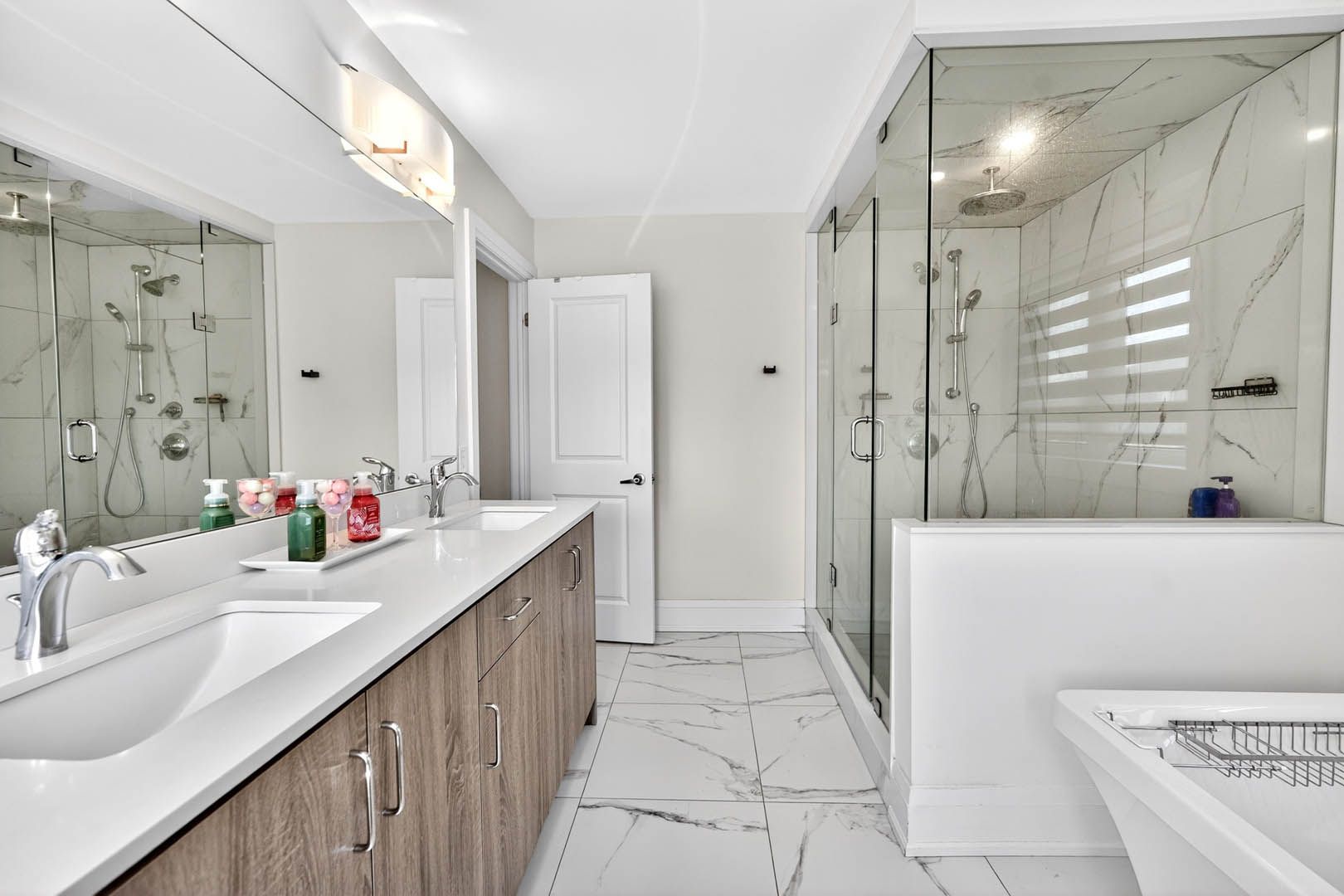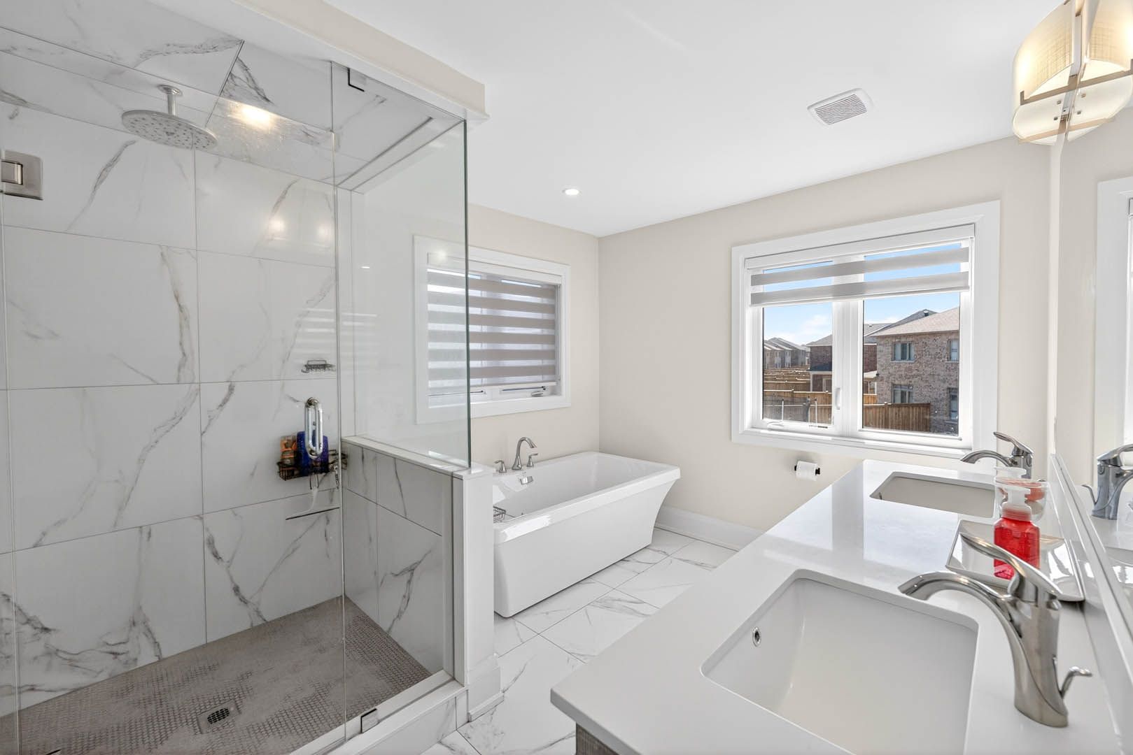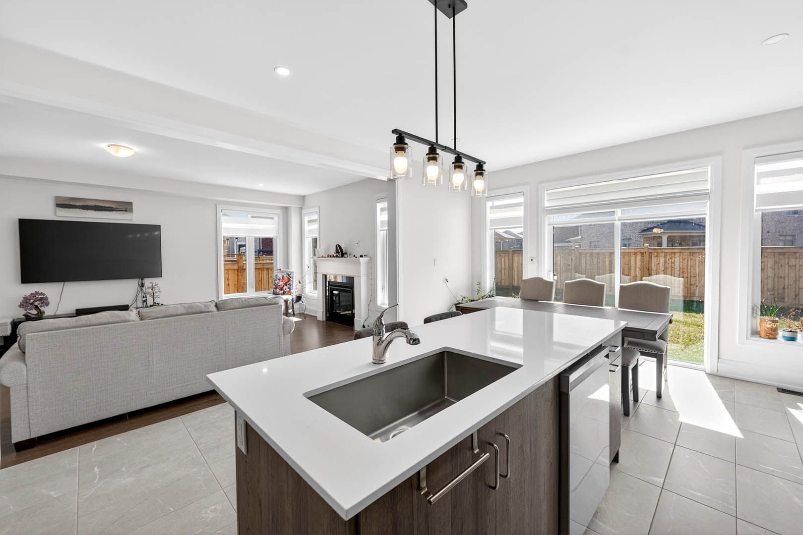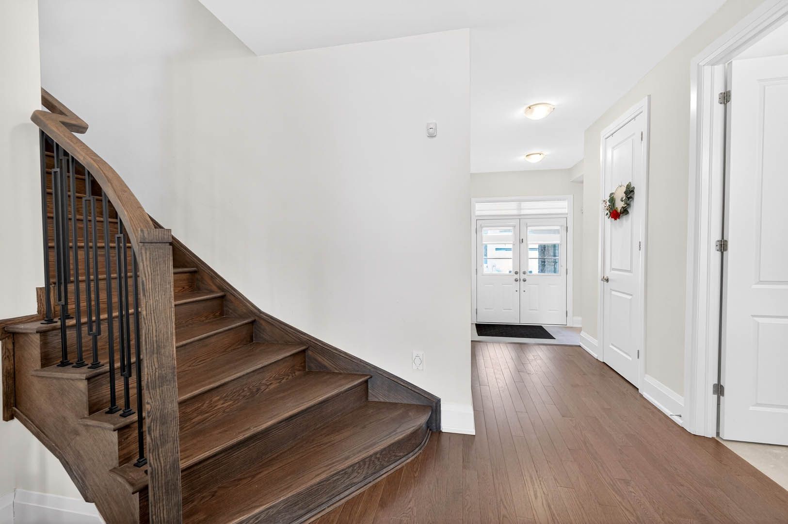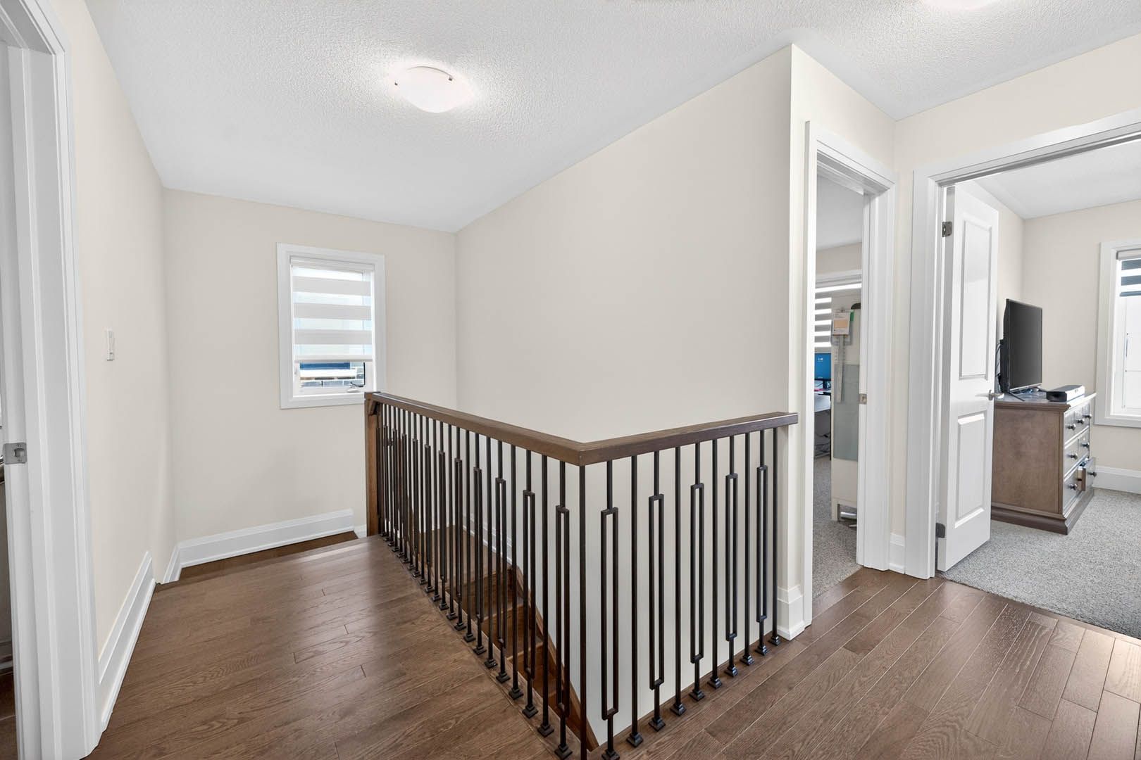 Here is the updated **mls-style description** with that added clearly:---beautifully upgraded home featuring extensive modern enhancements throughout. Exterior and interior pot lights, including timed outdoor lighting, provide excellent illumination and curb appeal. The home is equipped with security cameras, ring doorbell, and **internal data network ports throughout** for enhanced connectivity and convenience. The main living areas showcase hardwood flooring on both the main and second floors, complemented by zebra blinds throughout. The kitchen has been upgraded with a chef-style sink and a redesigned, extended island offering additional functionality and space. Bathrooms have been tastefully upgraded, including the primary ensuite with a modern shower, upgraded tub, flooring, and vanity, as well as the second-floor bathroom with glass shower, upgraded tiling, and sink. Bathroom exhaust fans include timers for energy efficiency. Additional features include a larger upgraded a/c unit, furnace with humidifier, added electrical upgrades, and central vacuum rough-in. The home also offers two garage door openers with remotes and mobile app access. The fully fenced backyard provides privacy, and the driveway has been enhanced with decorative rain pebble stonework. A well-maintained home with thoughtful upgrades throughout, ideal for comfortable modern living.