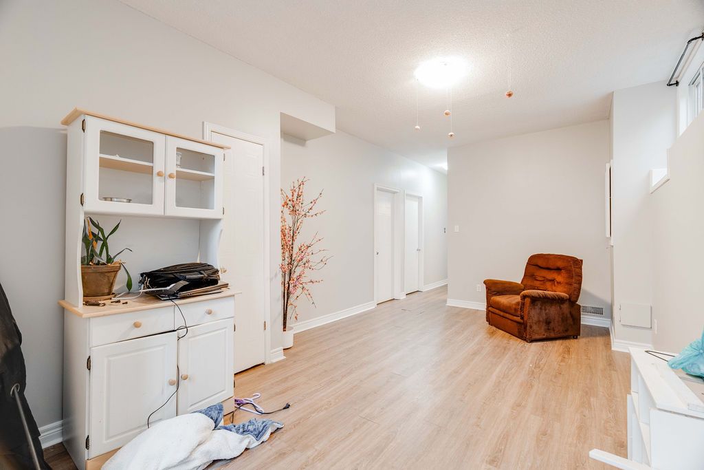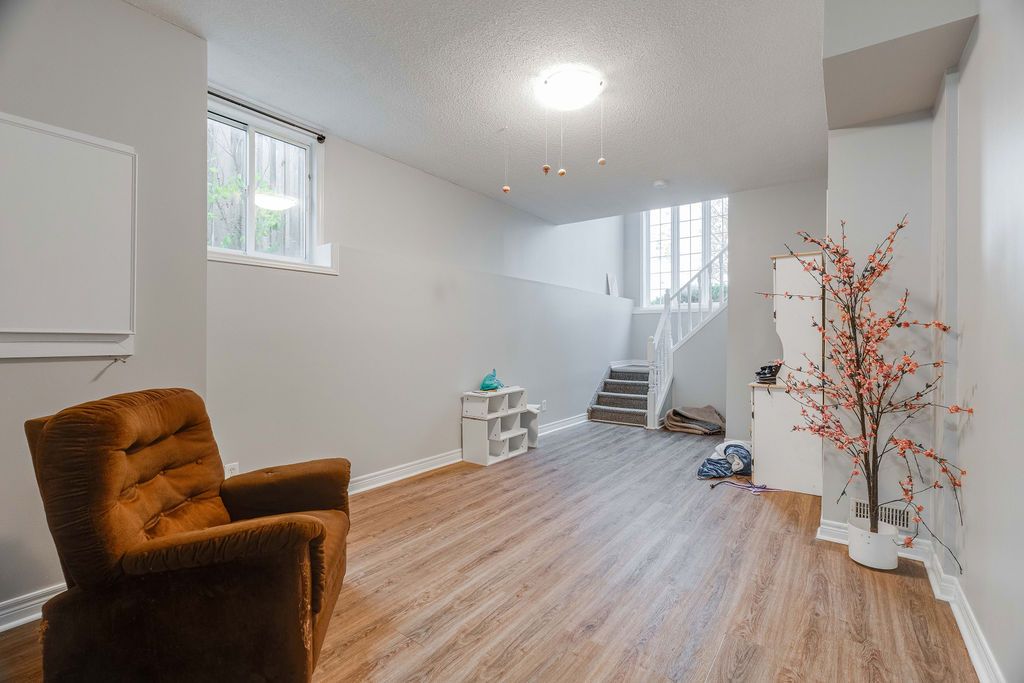 • High-ceiling basement with natural light, feels open and welcoming.