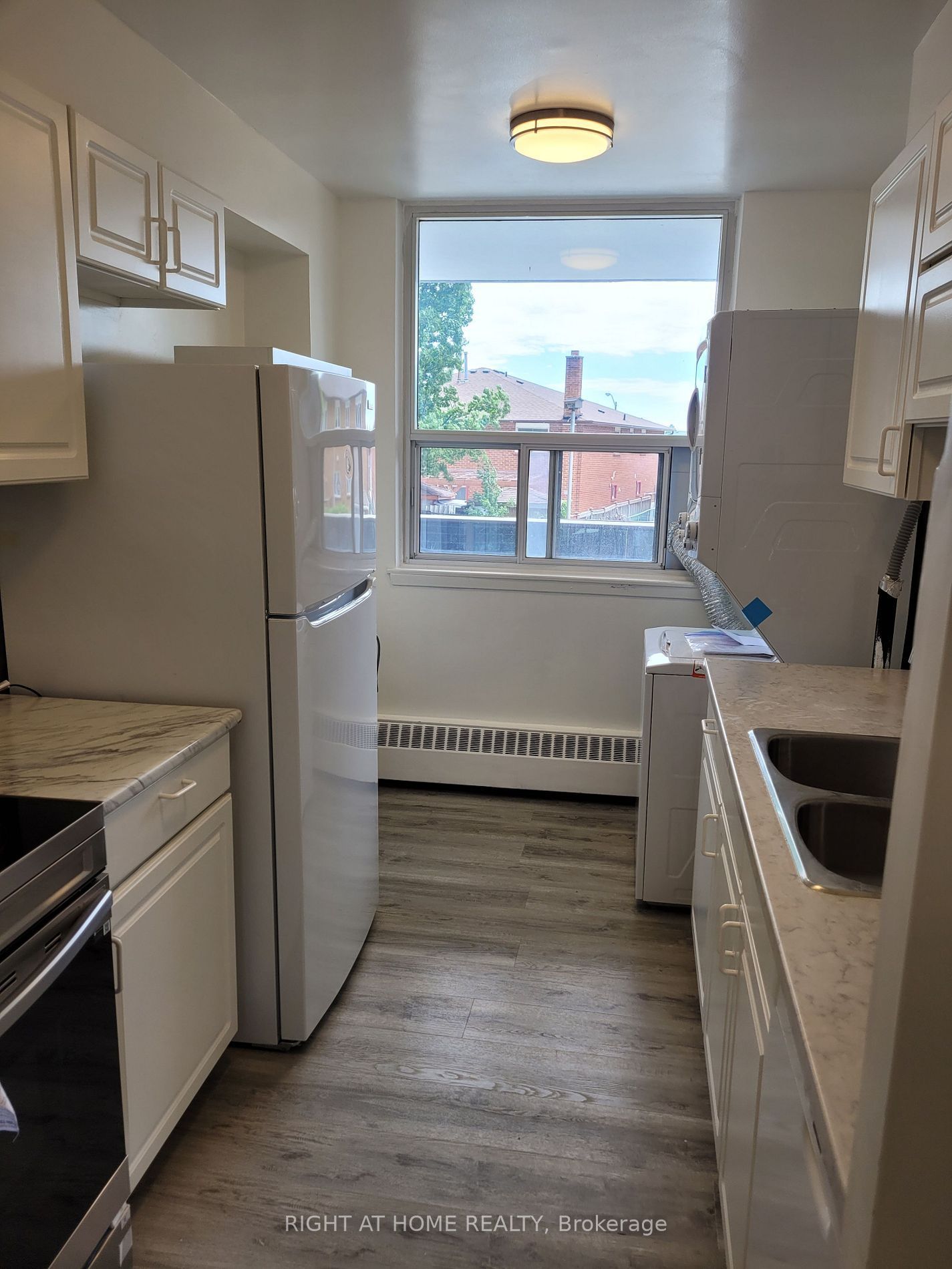 • Functional kitchen with a large window and contemporary finishes.