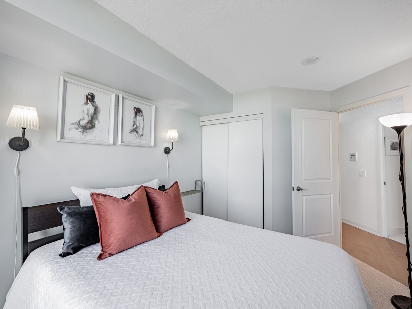 Experience luxurious living in this stunning corner two-bedroom unit, thoughtfully designed with spacious rooms situated on opposing sides for maximum privacy. The home features pristine, brand-new hardwood flooring throughout, showcasing impeccable condition and a true sense of care and attention. Bright and inviting, this residence offers spectacular skyline views uninterrupted by nearby buildings, allowing you to enjoy breathtaking vistas from every window. A cherished and meticulously maintained space, this corner unit combines comfort, elegance, and exceptional views in a premier building. Awesome amenities include an indoor pool, hot tub, gym, theatre, and party room! Hop skip & a jump from sherway gardens, restaurants, cafés, transit, go stations, and trails. This home suite is perfect for professionals, families, or investors seeking a premium layout with fantastic transit & getting around!