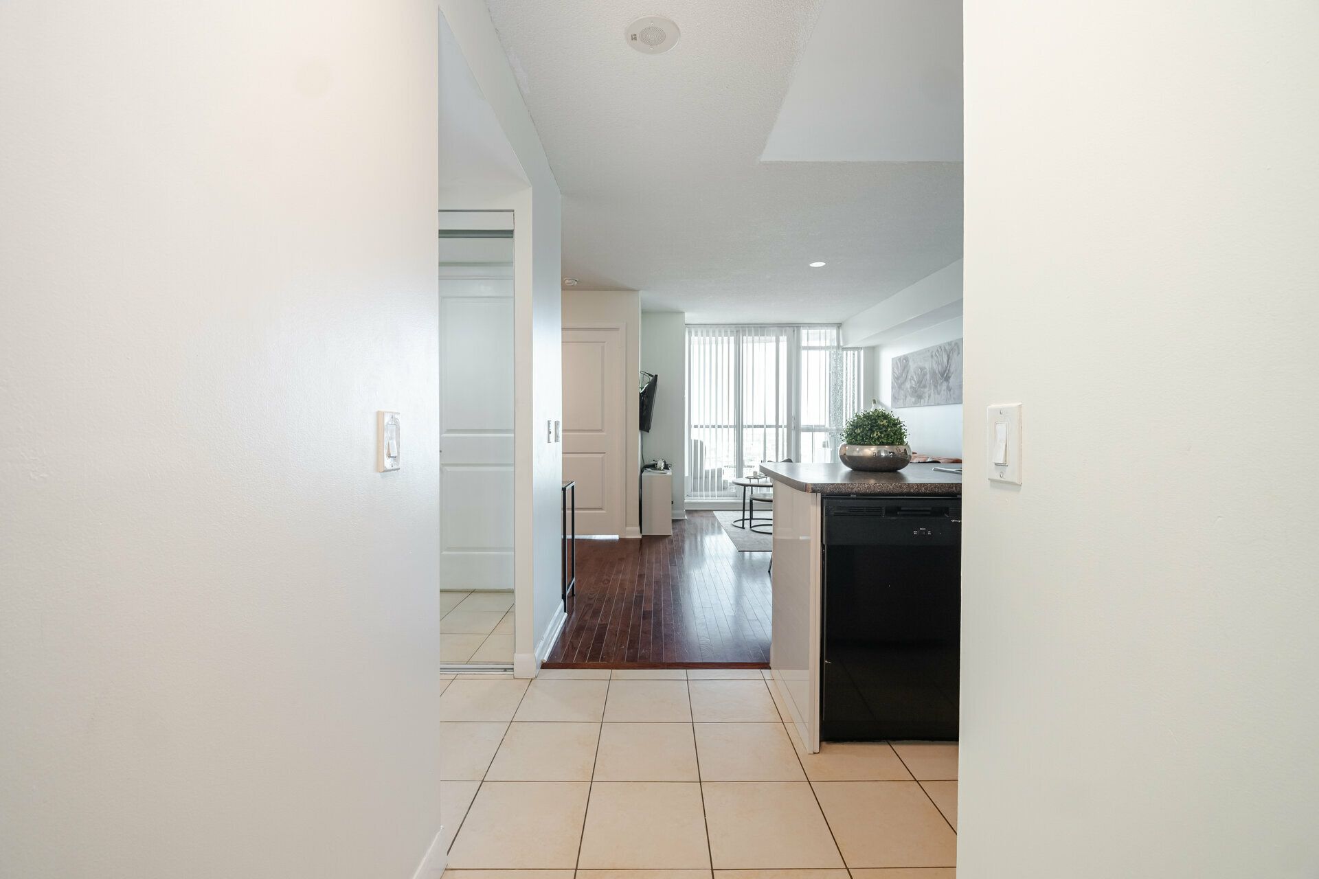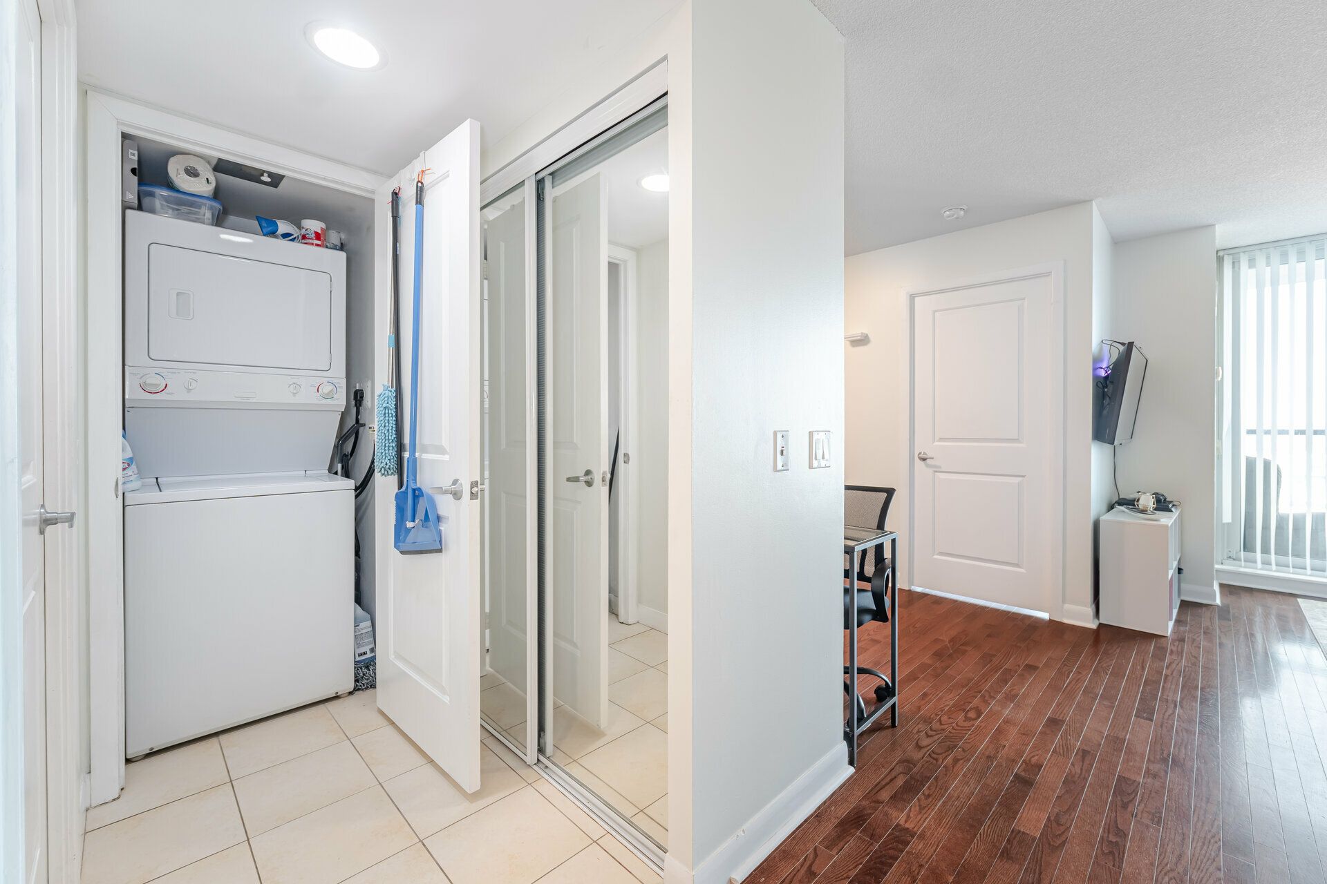 Welcome to 235 sherway garden unit 1609, absolutely gorgeous one bedroom plus den in popular one sherway tower. Open concept kitchen, living and dining. Unobstructed view allows for plenty of light all day. This lovely unit features hardwood flooring throughout, 9ft ceilings, private large balcony, ensuite laundry and much more. White kitchen with stainless steel fridge/stove, backsplash and breakfast bar. Den is perfect for a home office. 1 underground parking and 1 locker. Top notch amenities, including: 24-hour concierge service, new uneekor golf simulator, fitness center, indoor pool, hot tub and sauna, party room, guest suites, visitor parking, top dining options, library, media room, yoga room, games room (billiards and ping pong). Other great features include possibility to set up ev charging. Walking distance to sherway gardens mall, great restaurants, shopping and ttc at your doorsteps. Mins to hwy 427, qew & gardener. Move in & enjoy!