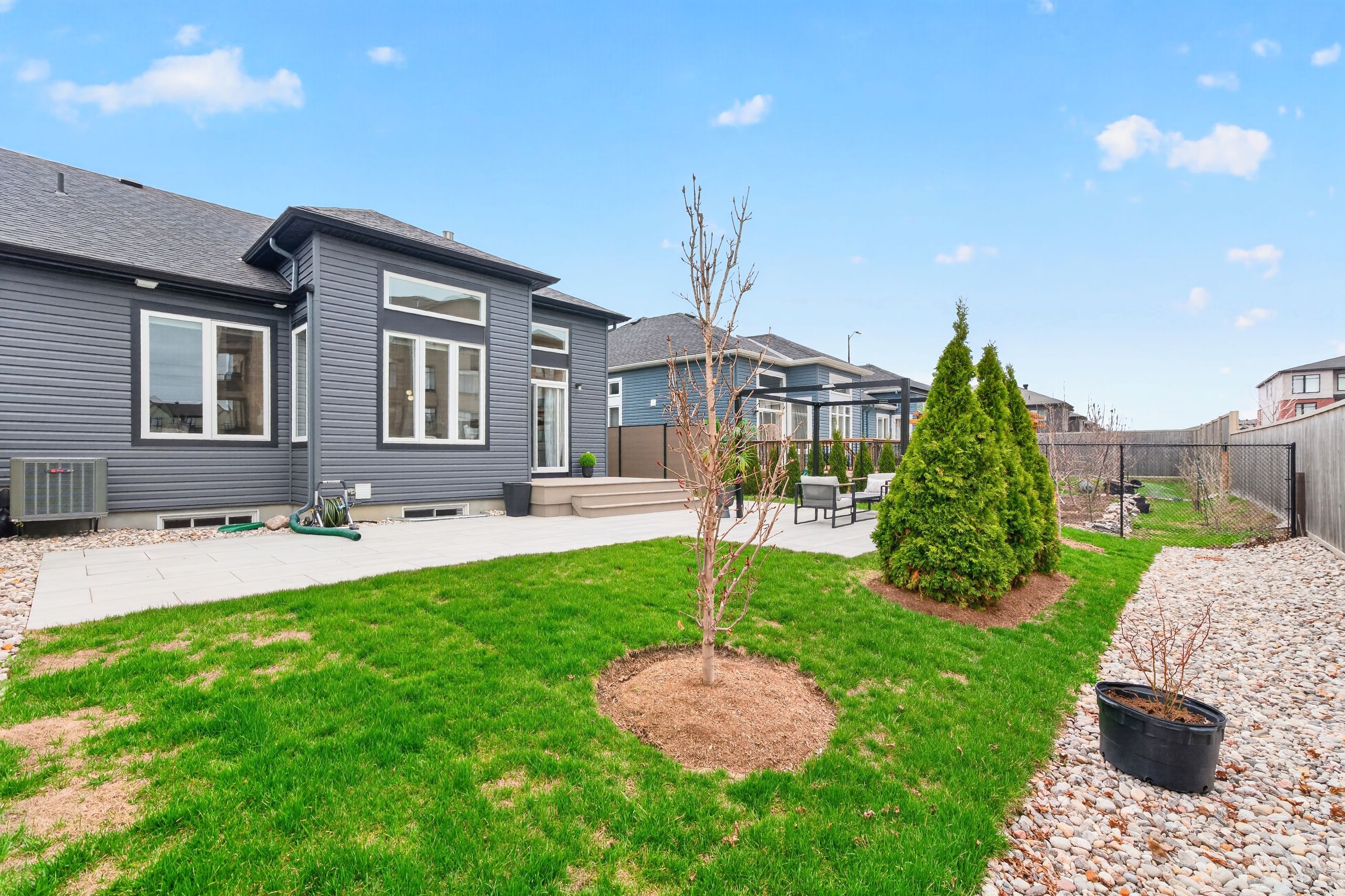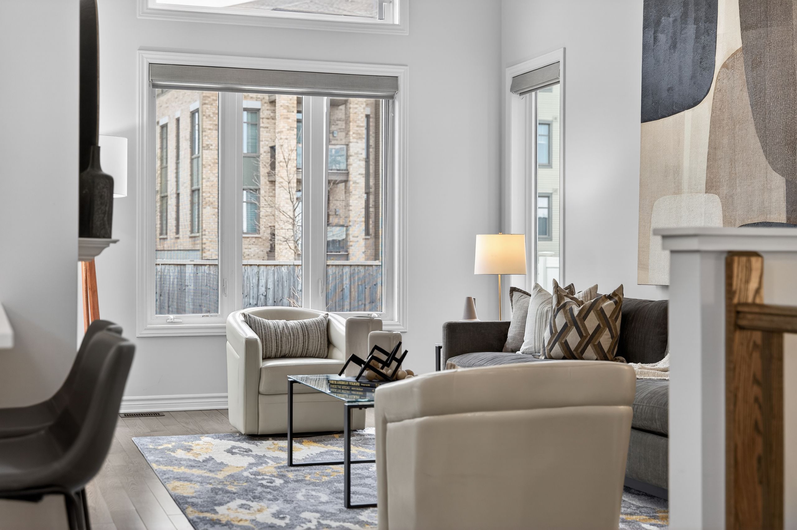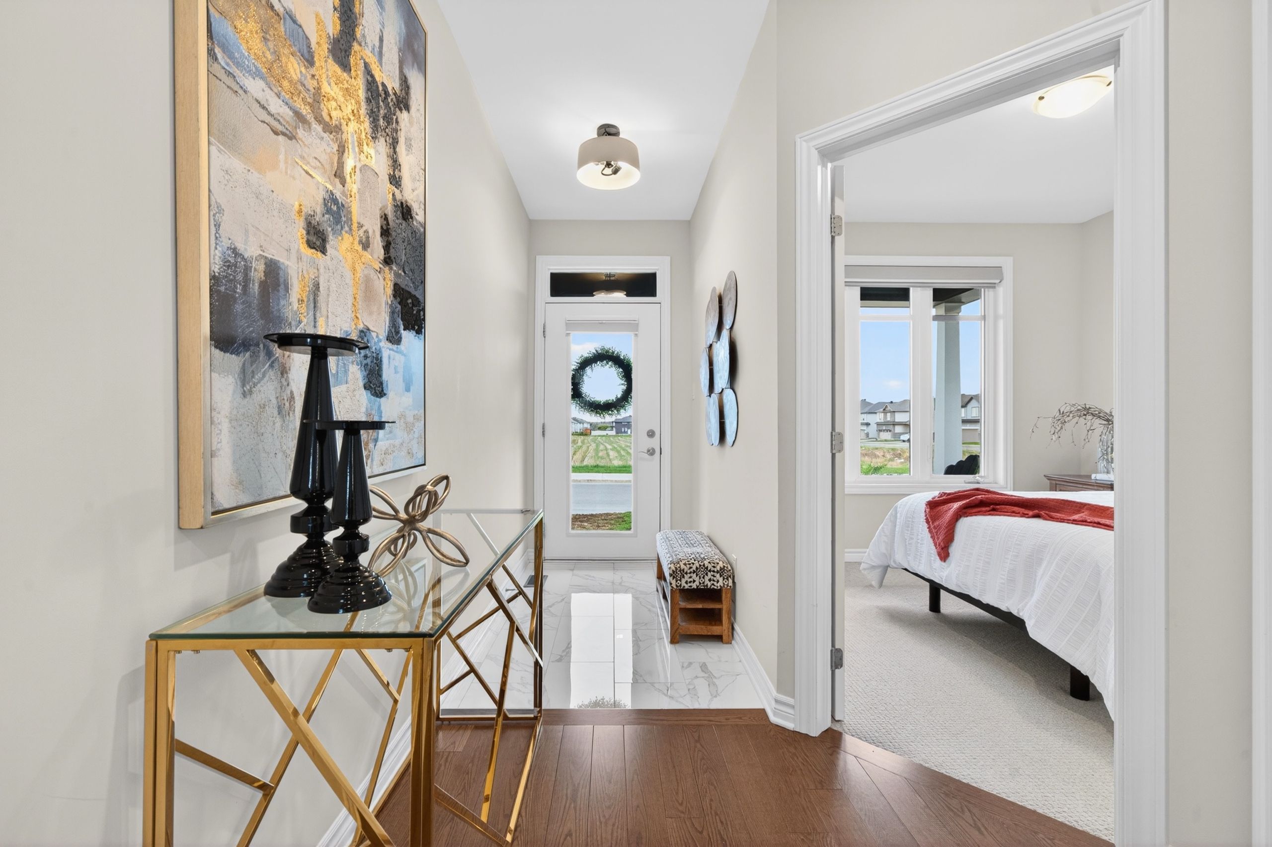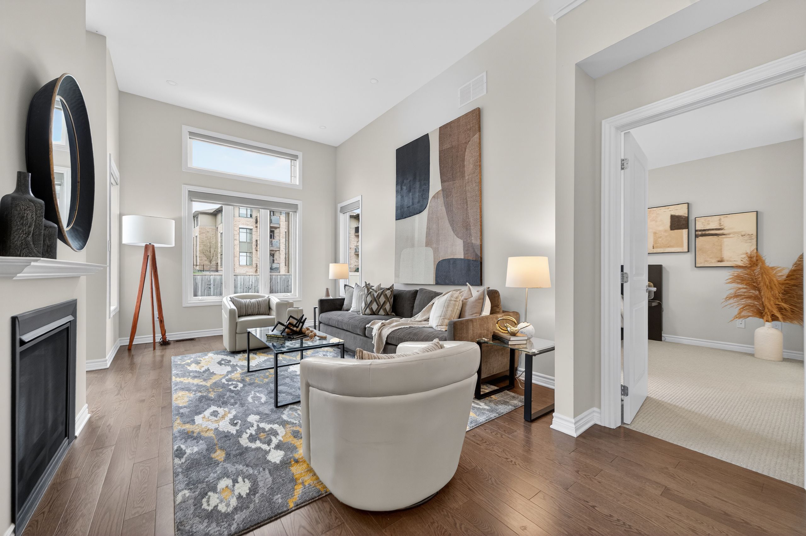 Welcome to 235 shinny avenue in the sought-after fernbank crossing community of stittsville-an exceptional sunningdale energy star high-efficiency bungalow semi offering approximately 1,978 sq. Ft. Of finished living space, including the lower level. This beautifully designed home features 2+1 bedrooms and 3 full bathrooms, with a bright open-concept layout enhanced by soaring 12' ceilings and an abundance of natural light flowing through the living, dining, and kitchen areas. The stylish kitchen showcases elegant quartz countertops, a breakfast bar, and overlooks the spacious great room, where a stunning central gas fireplace creates a warm and inviting focal point. Thoughtful design details include aluminum alloy kitchen handles finished in brushed brass, adding a refined and modern touch. Hardwood flooring extends throughout the main living areas, complemented by ceramic tile in the bathrooms and laundry room, plush carpeting in the bedrooms, and the convenience of main-floor laundry. The generous primary suite offers a walk-in closet and a private 4-piece ensuite, while the fully finished lower level provides a versatile recreation room, an additional bedroom, and a full bathroom-perfect for guests or extended living. Step outside to a beautifully landscaped backyard, ideal for entertaining, relaxing, or gardening, complete with a fully fenced yard (2023), custom window coverings with automatic blinds (2022) in the living and dining area, and extensive landscaping (2025). Ideally located close to parks, shopping, restaurants, services, and easy highway access, this home offers the perfect blend of comfort, style, and convenience in a thriving community.