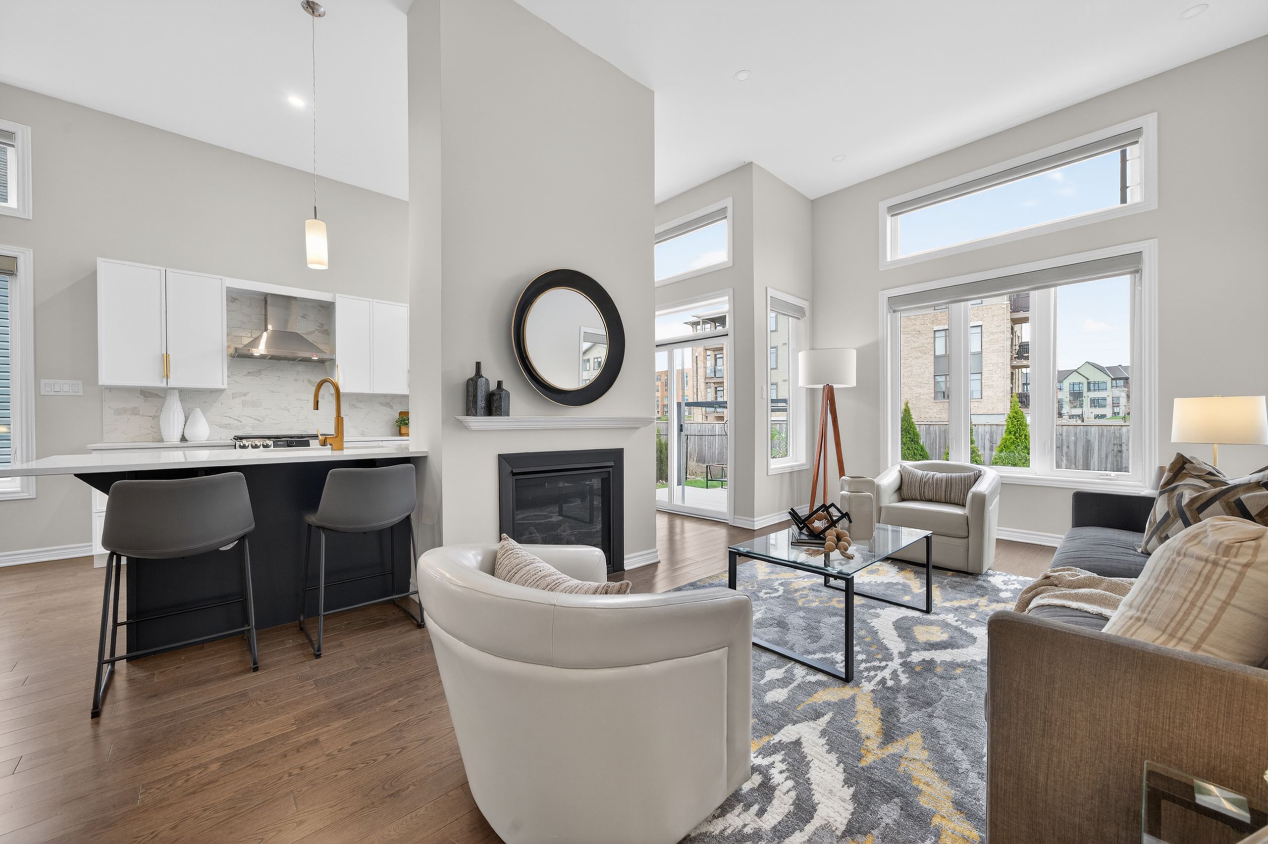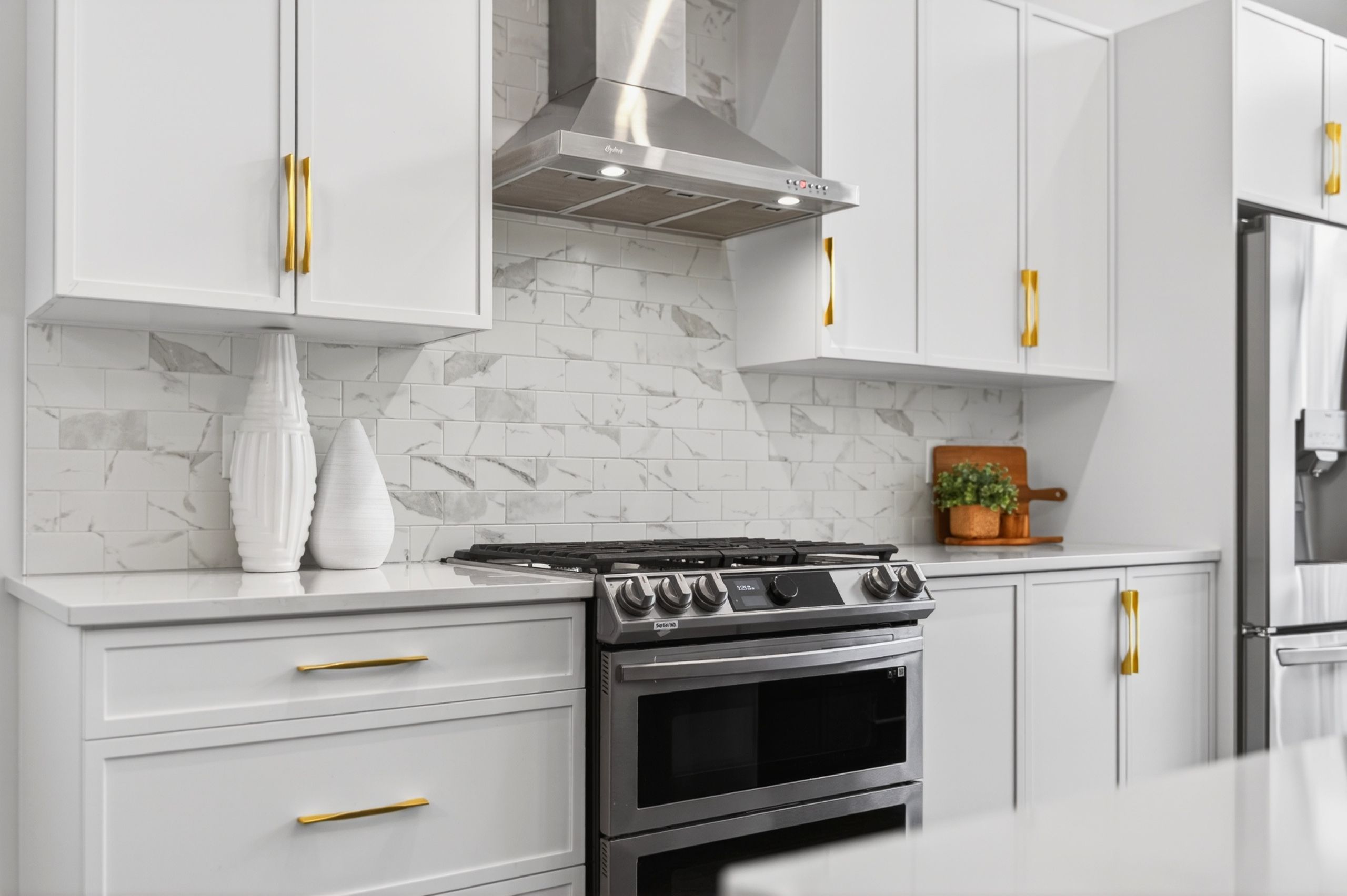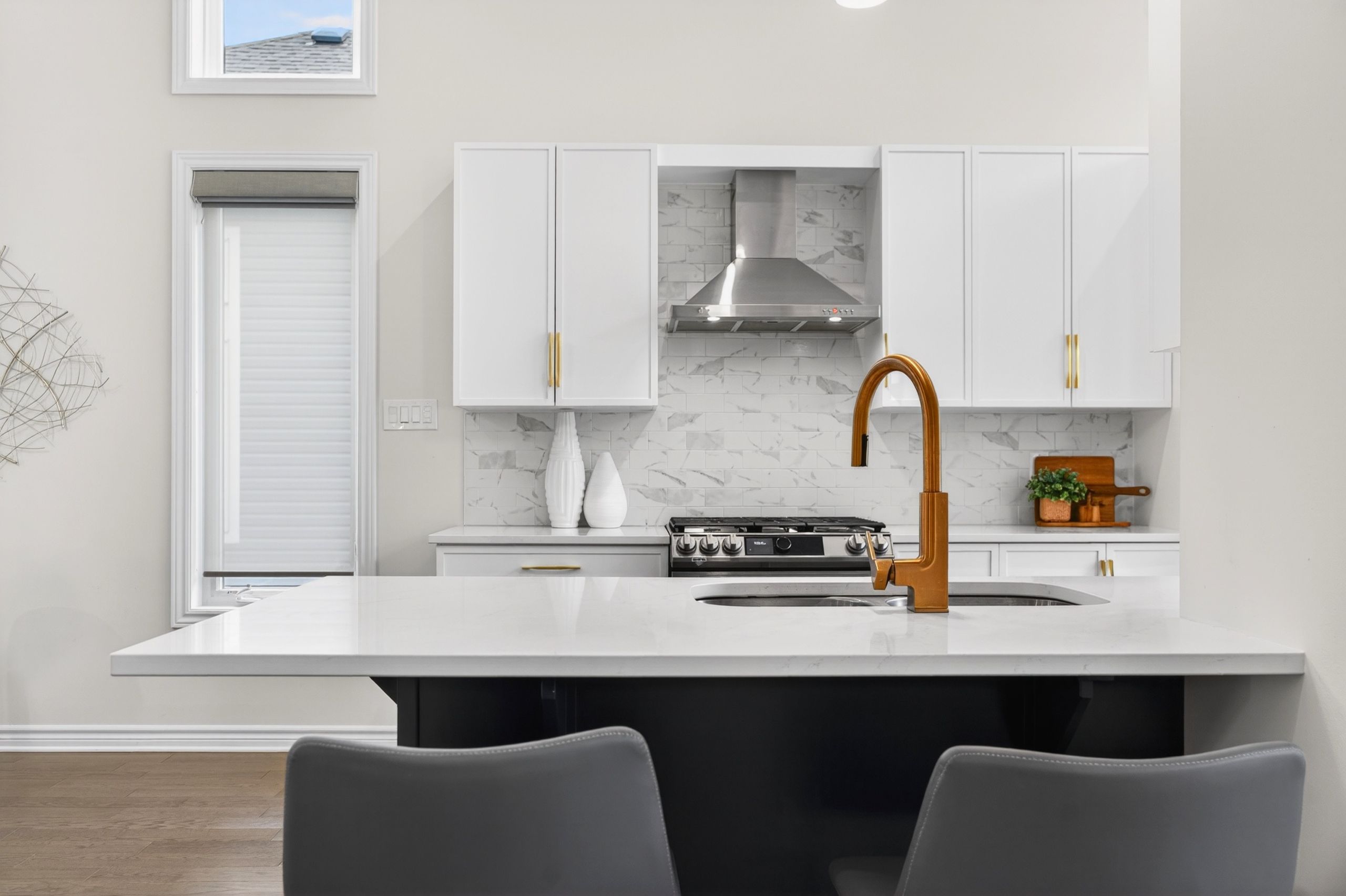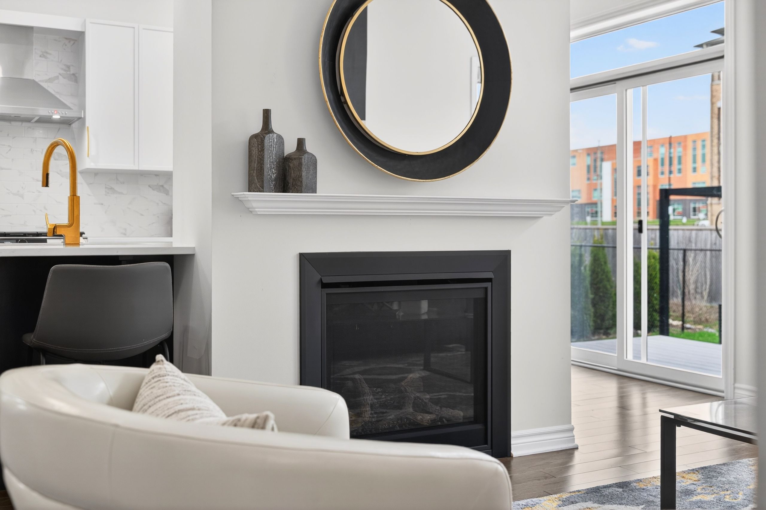 • Stylish kitchen with quartz countertops and a gas fireplace in the great room.