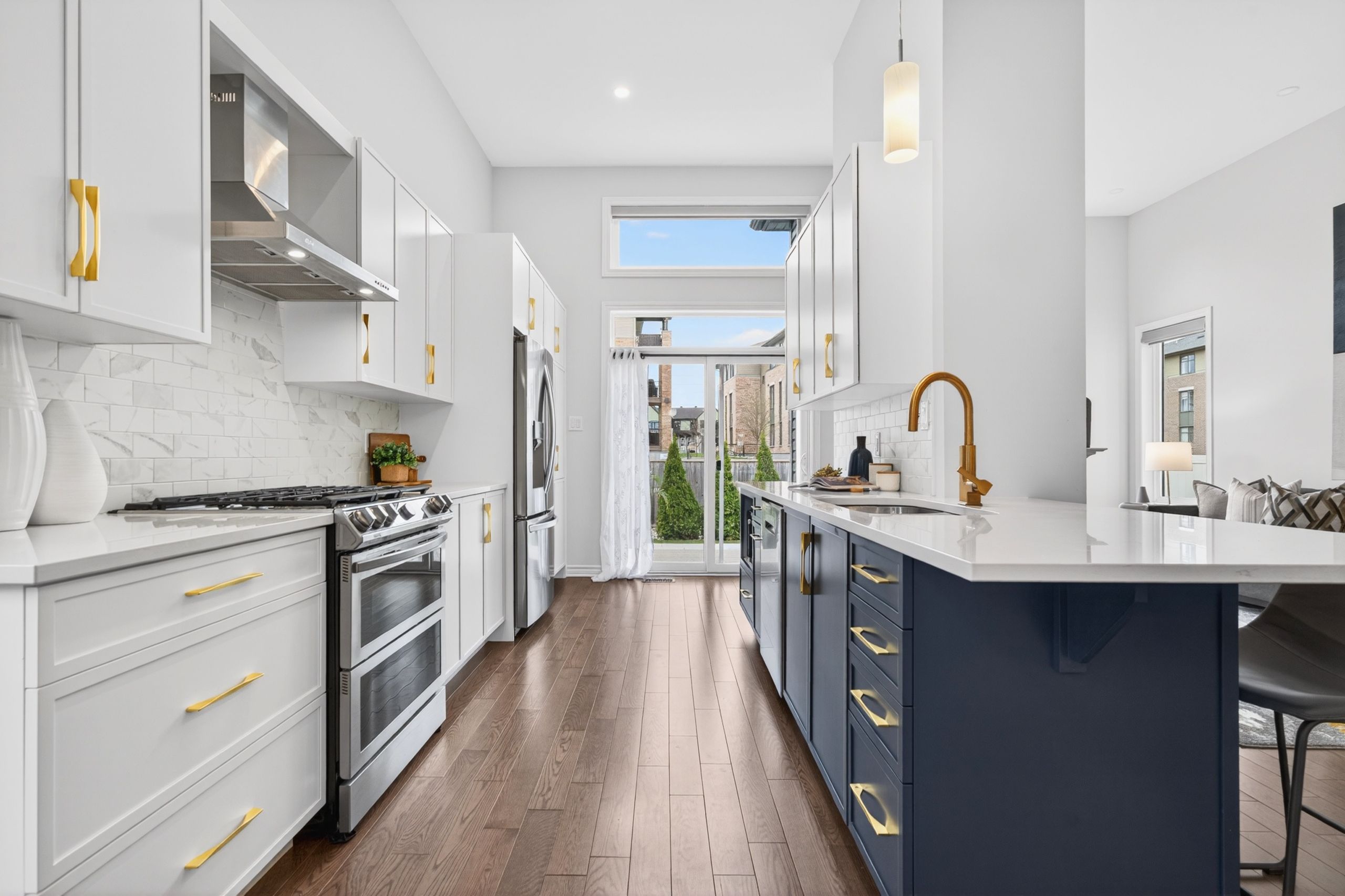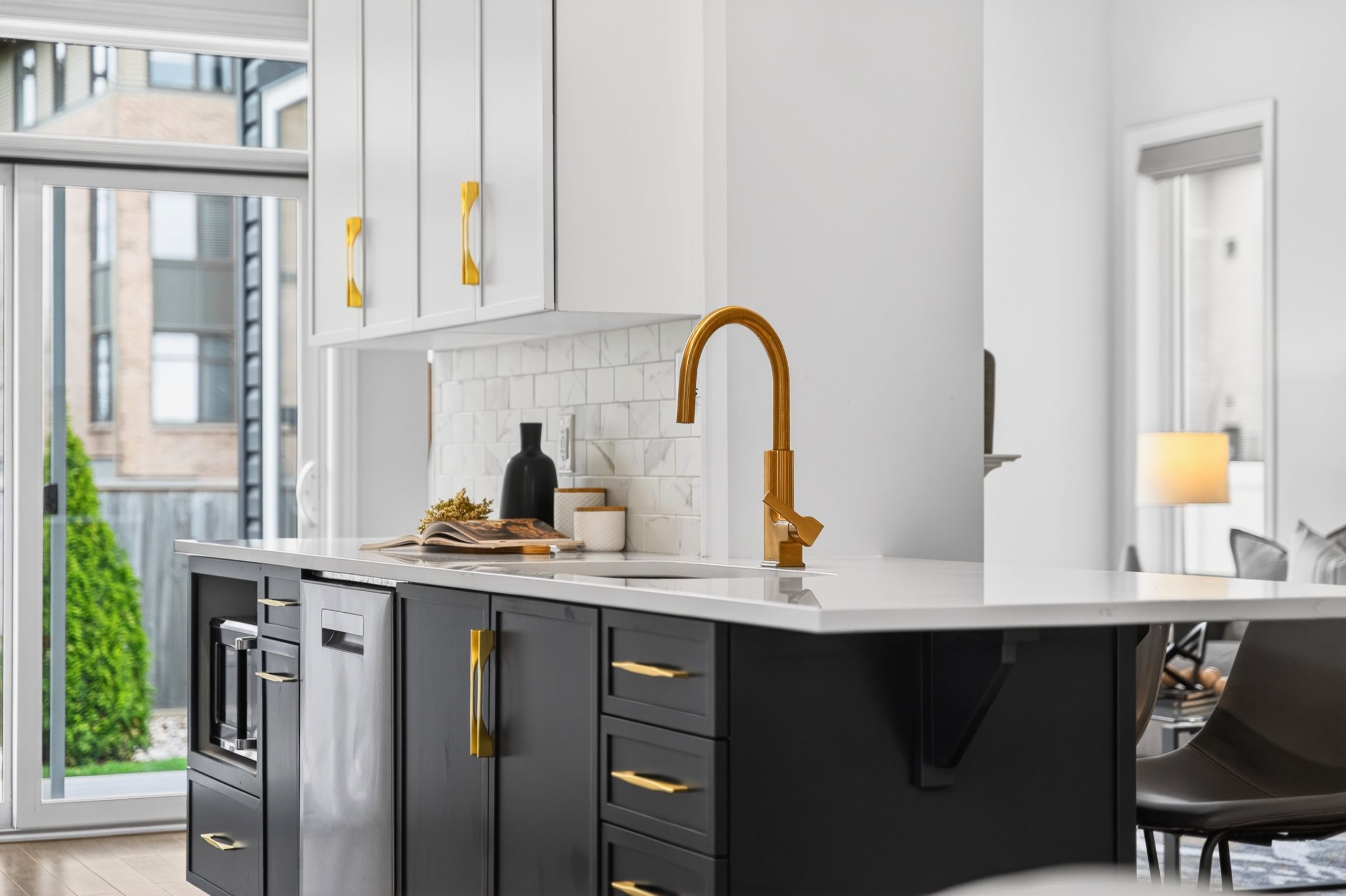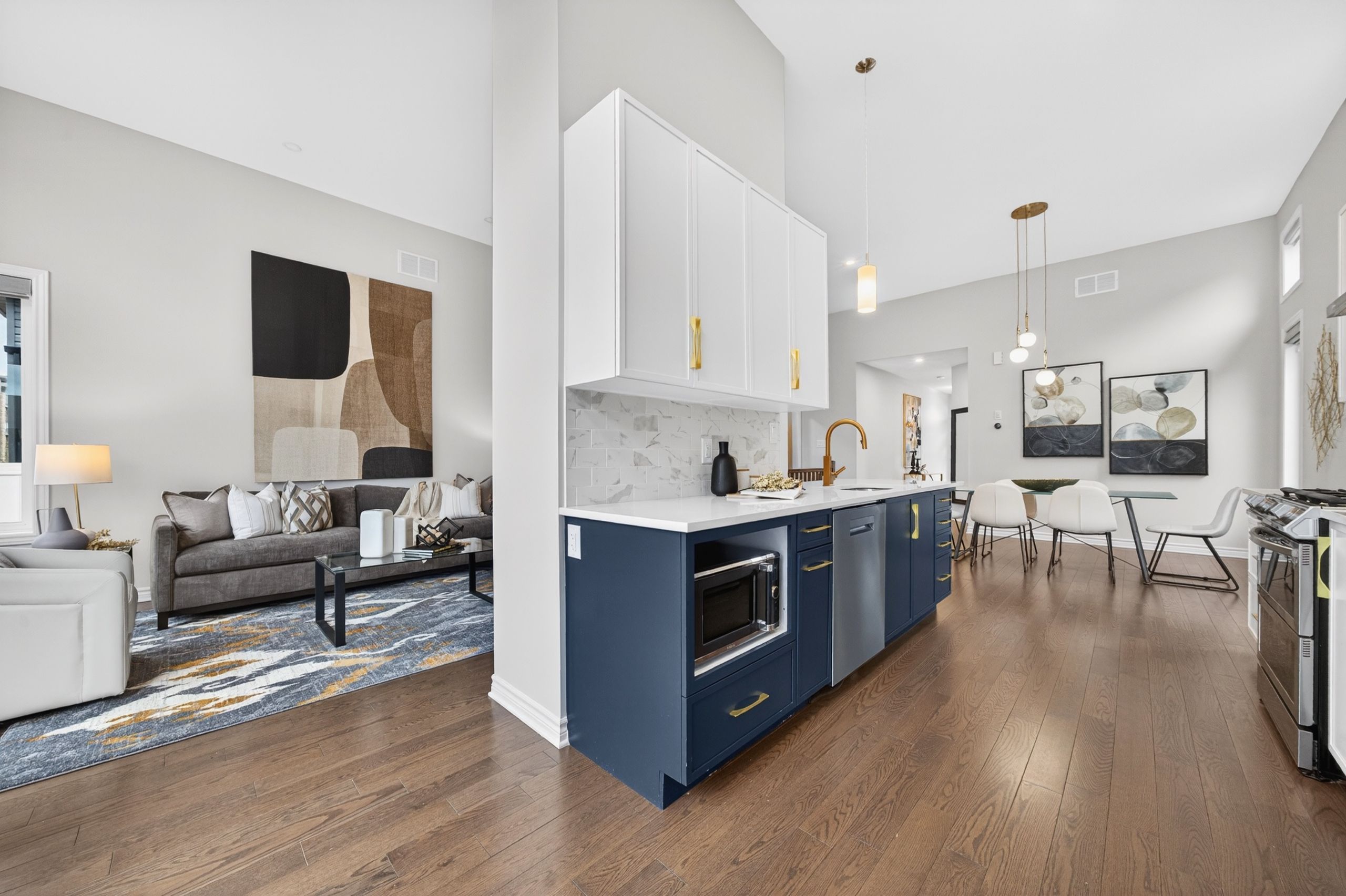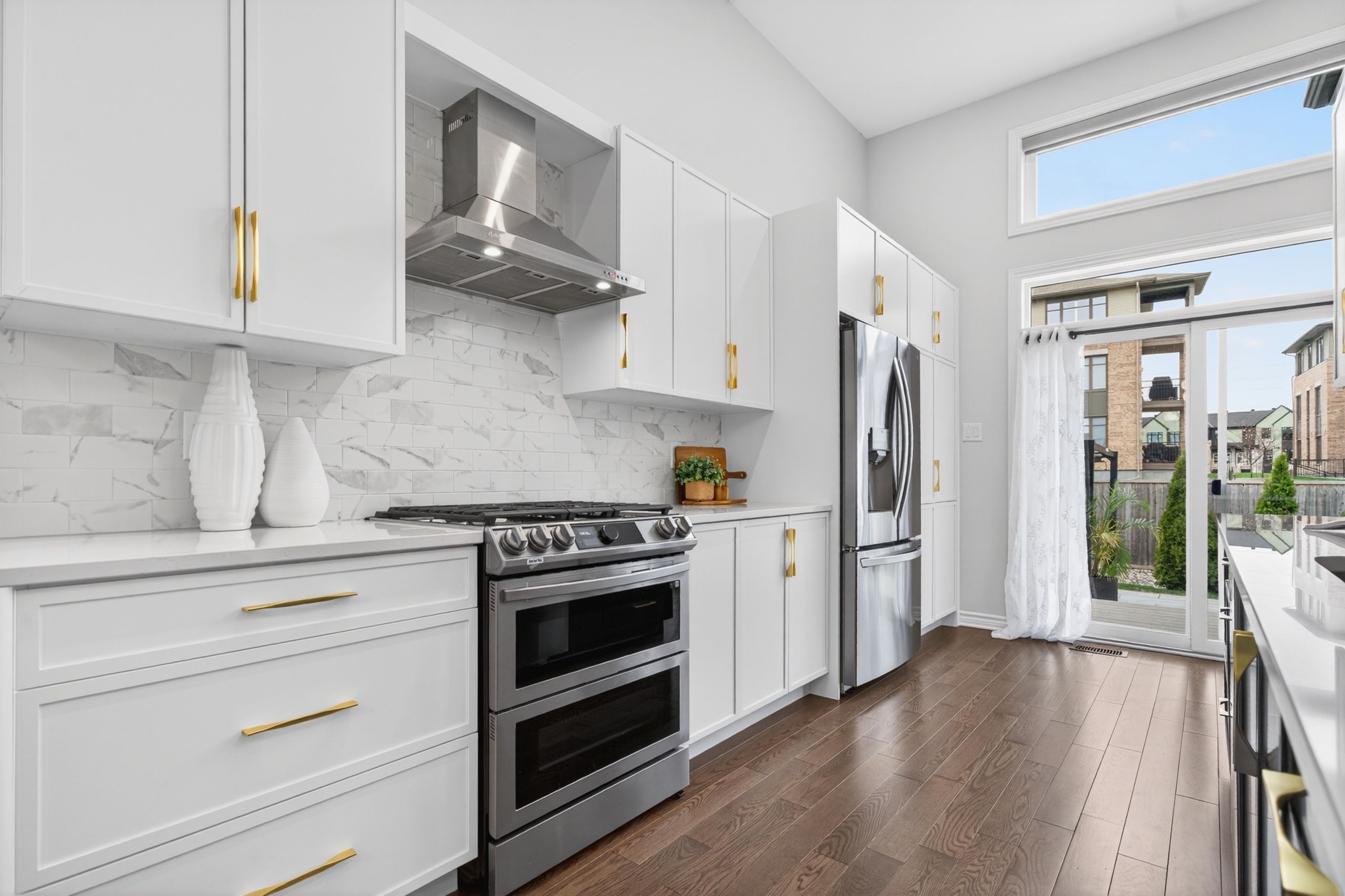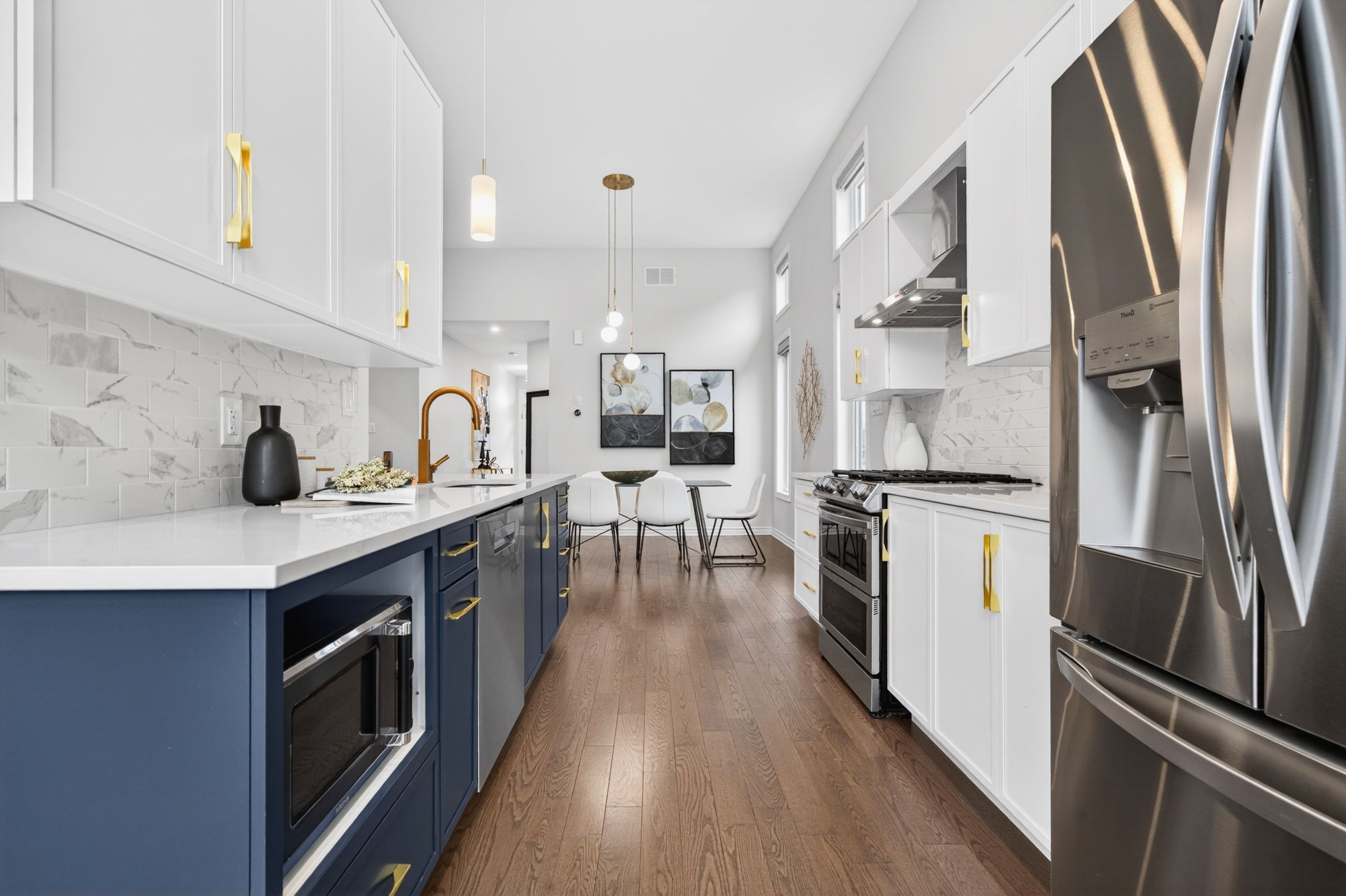 • Stylish kitchen with quartz countertops and a gas fireplace in the great room.