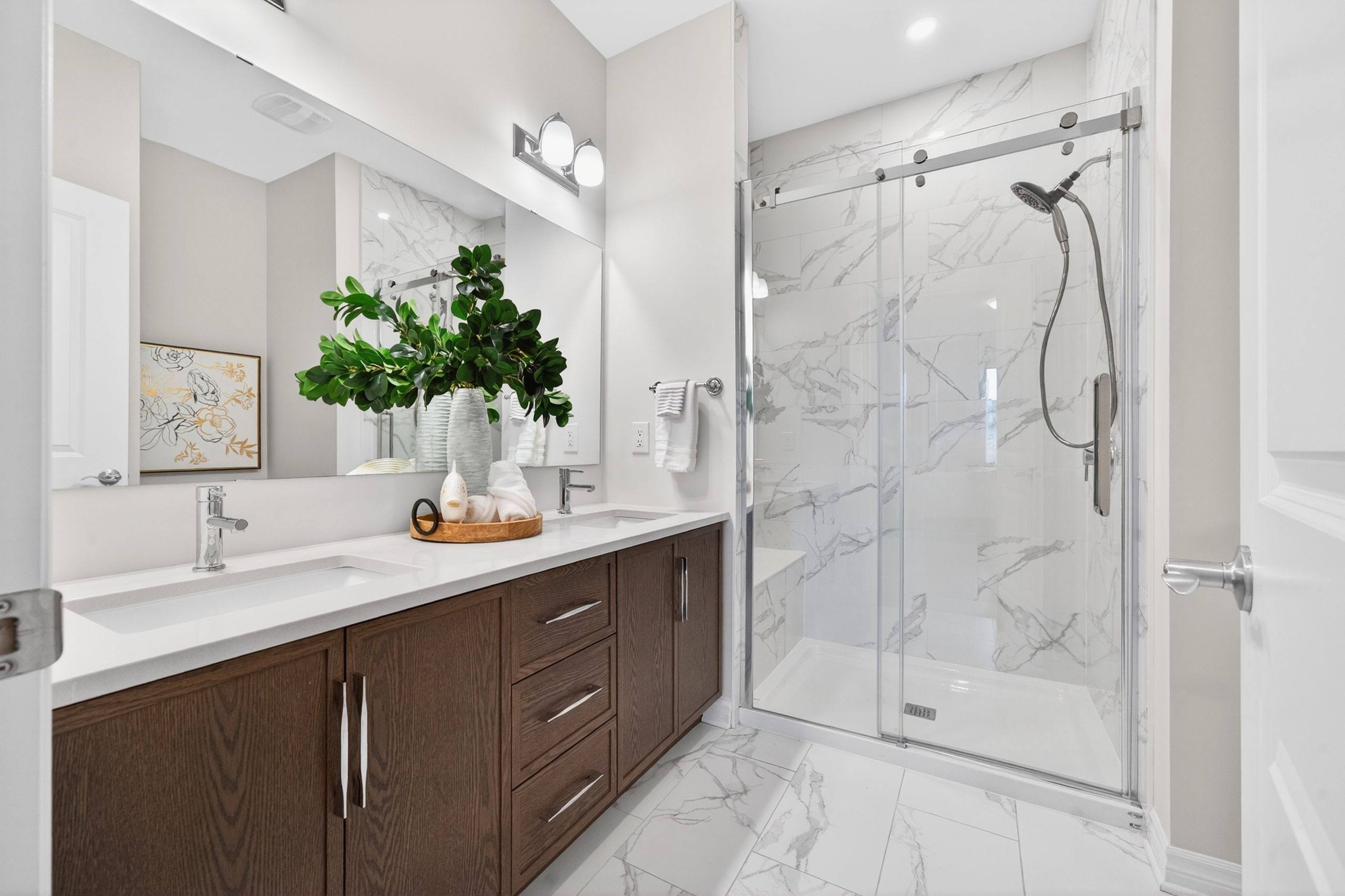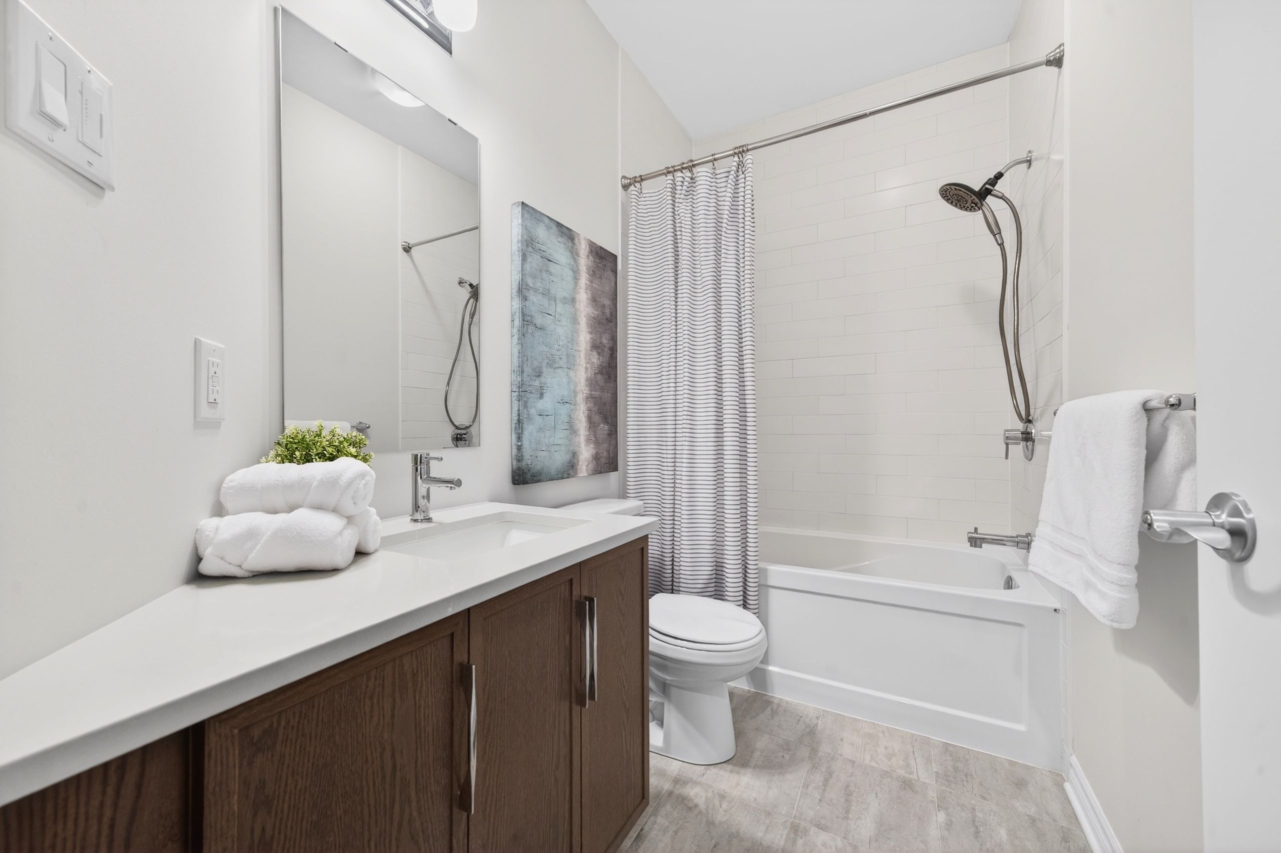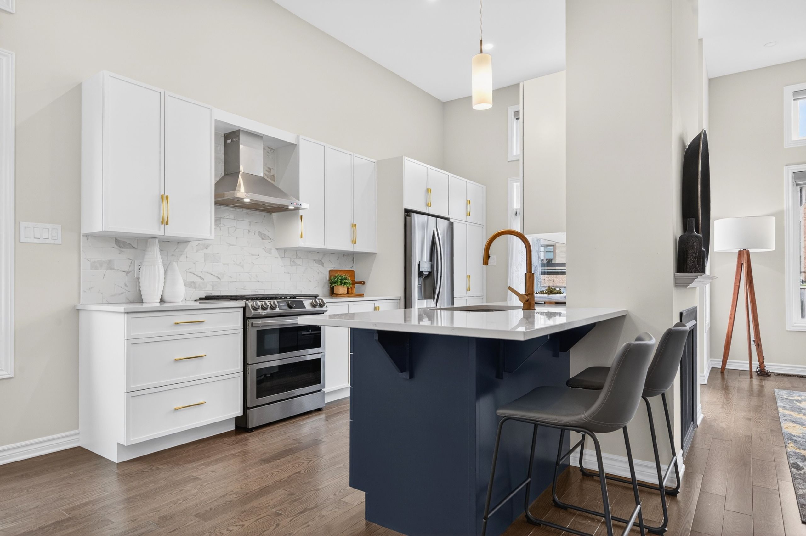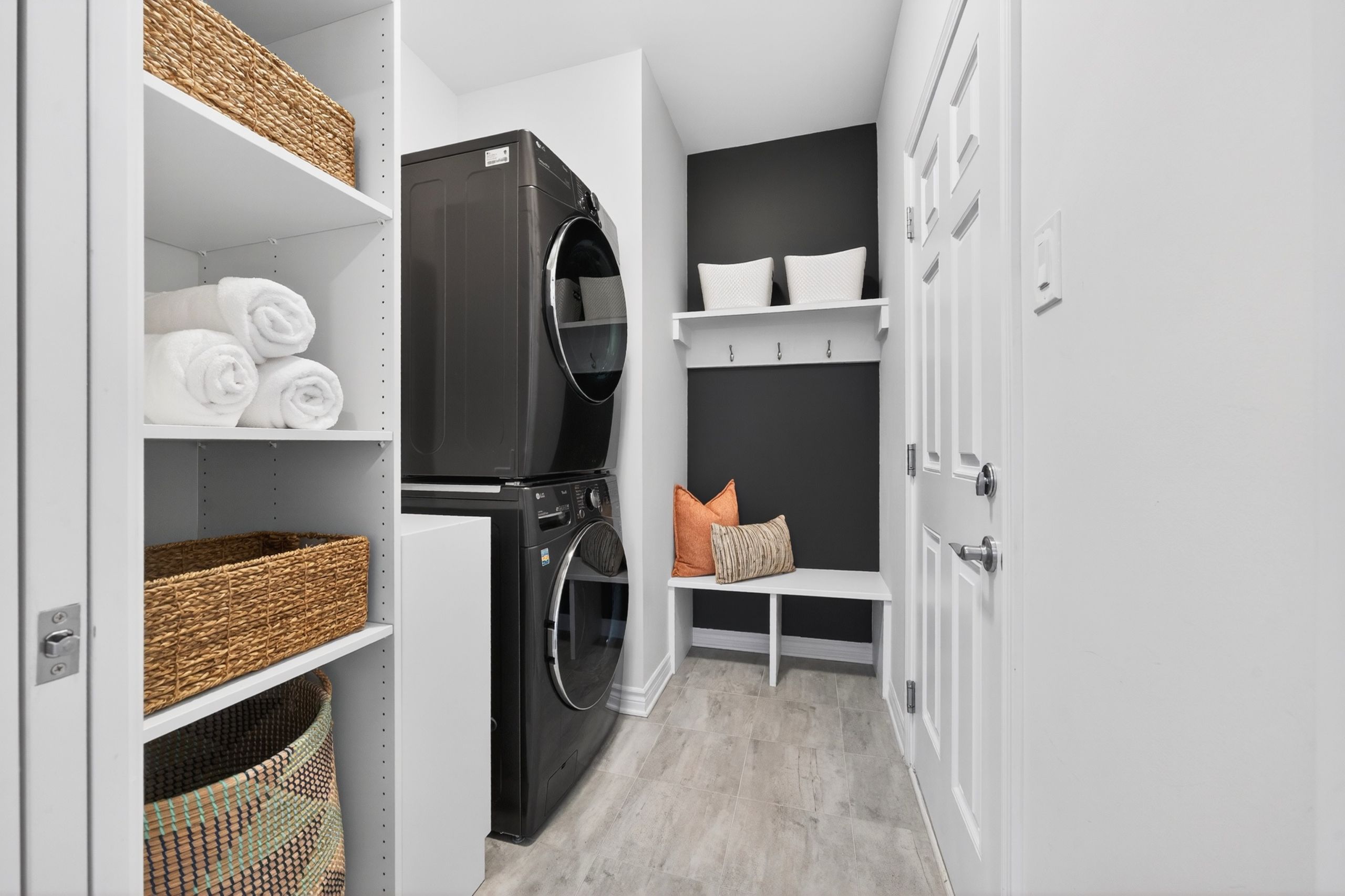• Stylish kitchen with quartz countertops and a gas fireplace in the great room.