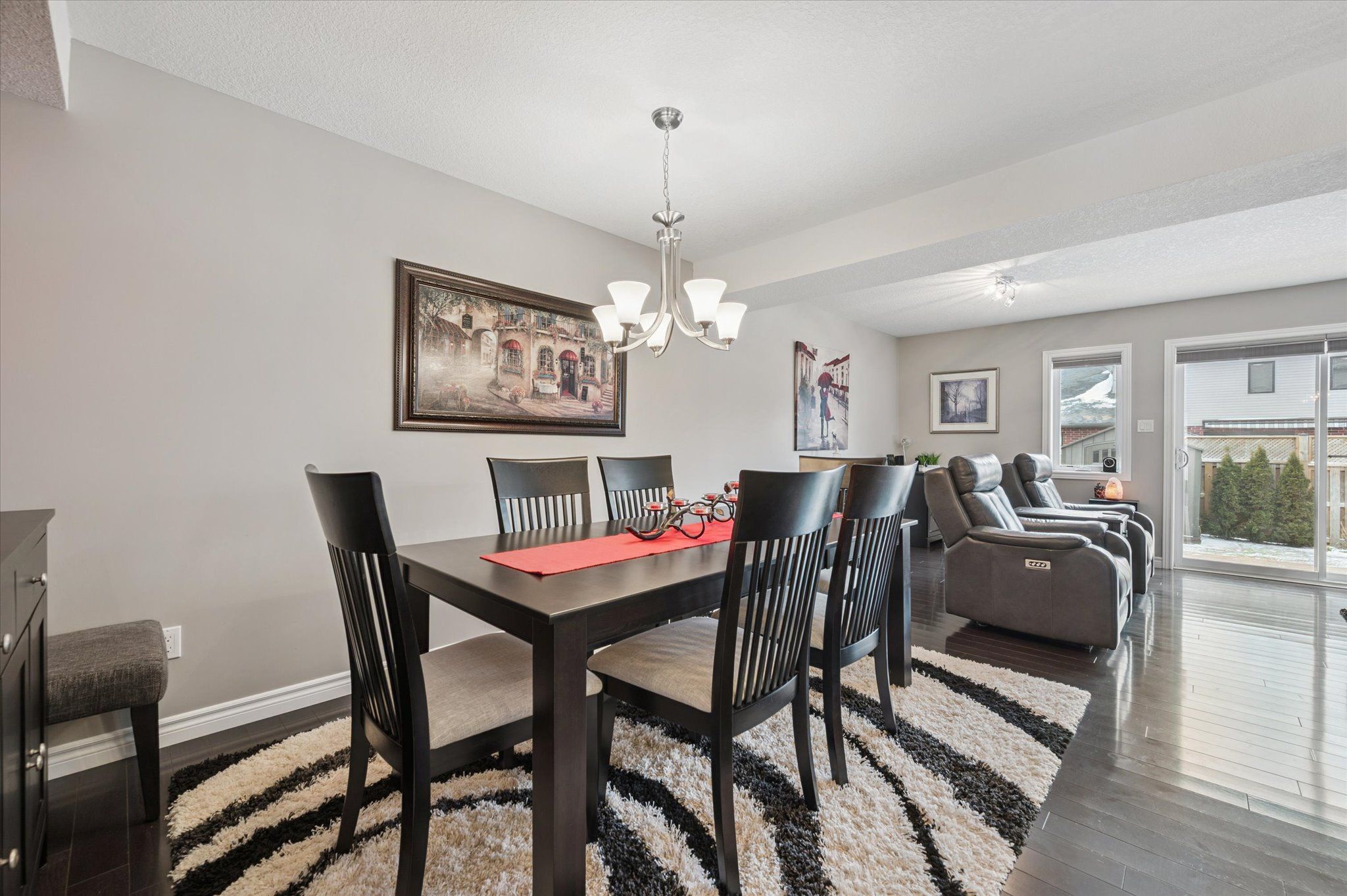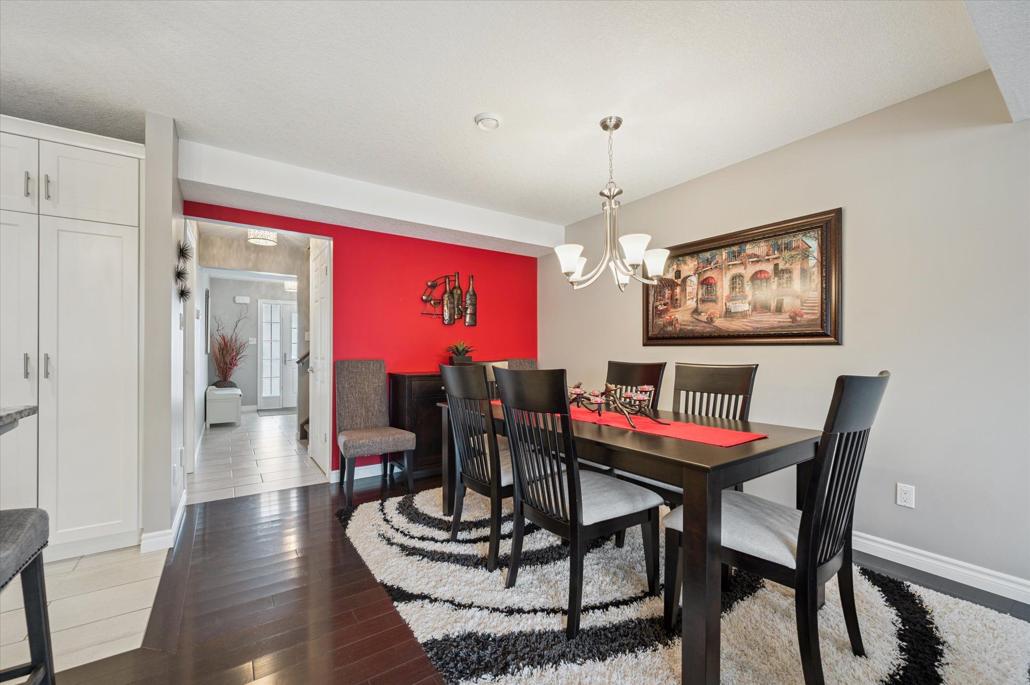 • Elegant hardwood flooring throughout the main living spaces.