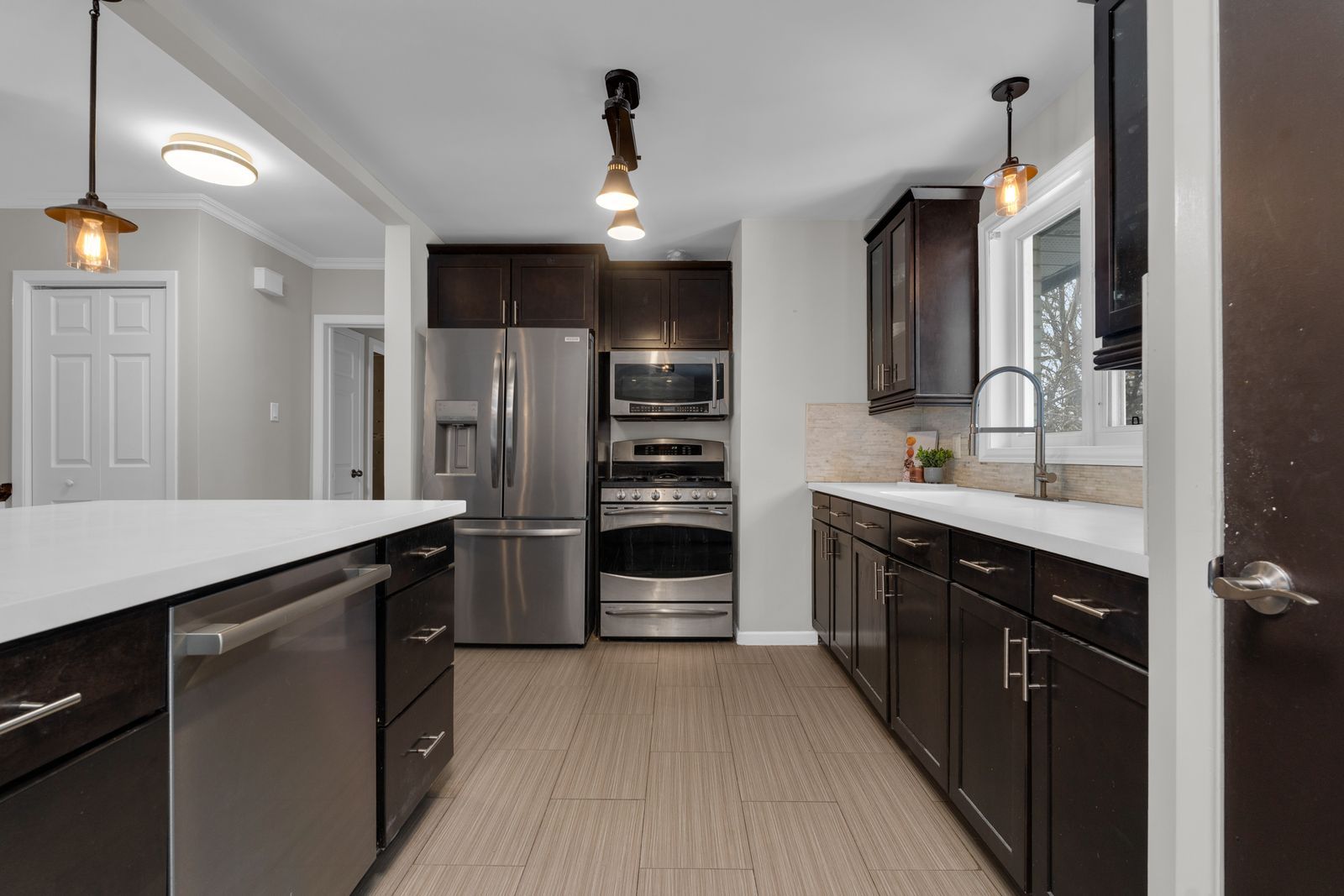 Summer out back, flexibility below, & a whole lot to love in between! If a large lot, an inground pool, and flexible basement space with in-law capability are on your wish list, you may want to read this twice. This raised bungalow at 235 st vincent street offers over 2,200 finished square feet on a 66 x 123 ft lot, with a brick exterior, covered front entry, and a built-in 1-car garage. Two front doors set it apart, with one leading to the main home and the other to the basement, a feature that opens the door to extended family living, guest space, or added privacy for teenagers. Large windows bring natural light through the open-concept principal rooms, where crown moulding, pot lights, modern light fixtures, and a double garden door walkout to the backyard add to the appeal. The kitchen is finished with dark cabinetry, stainless steel appliances, a large island with seating, and generous prep space, while the dining area adds a built-in sideboard with a beverage fridge and extra counter space. Generously sized bedrooms include a primary bedroom with a walk-in closet, while the 5-piece bathroom is finished with a separate tub, stand-up shower, and dual vanity with vessel sinks. Downstairs, nearly 900 finished square feet add even more value with a full kitchen, large rec room, bedroom, and two full bathrooms. Out back, the fenced yard, patio area, and separately fenced 16 x 32 ft inground pool set the scene for long summer days at home. Walk to maple grove public school, barrie north collegiate institute, public transit, and multiple parks, while georgian college, shopping, daily amenities, highway 400, barrie's beaches, waterfront trails, parks, and downtown are all just a short drive away.