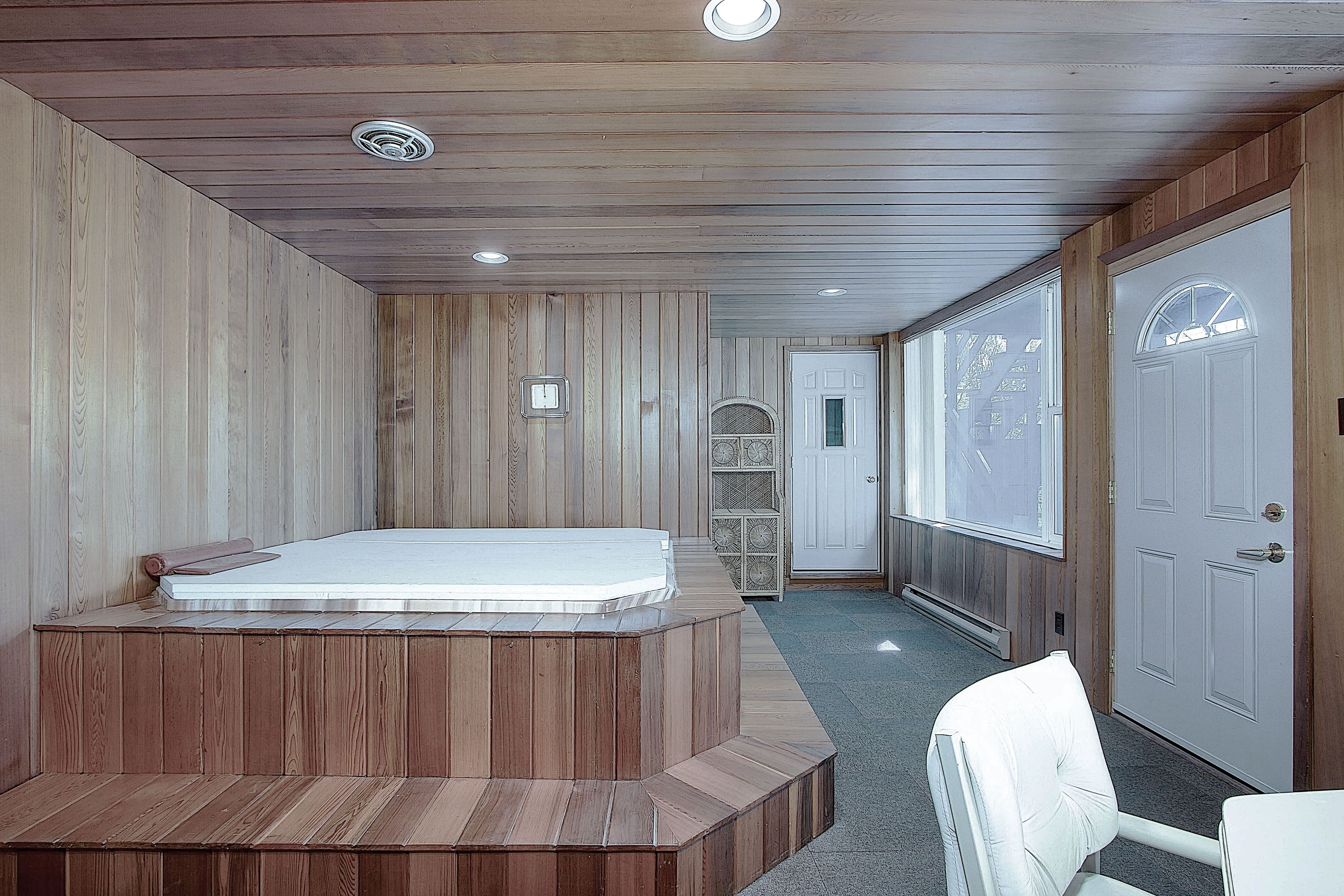 • Finished basement featuring a hot tub, sauna, and walk-out to the river.