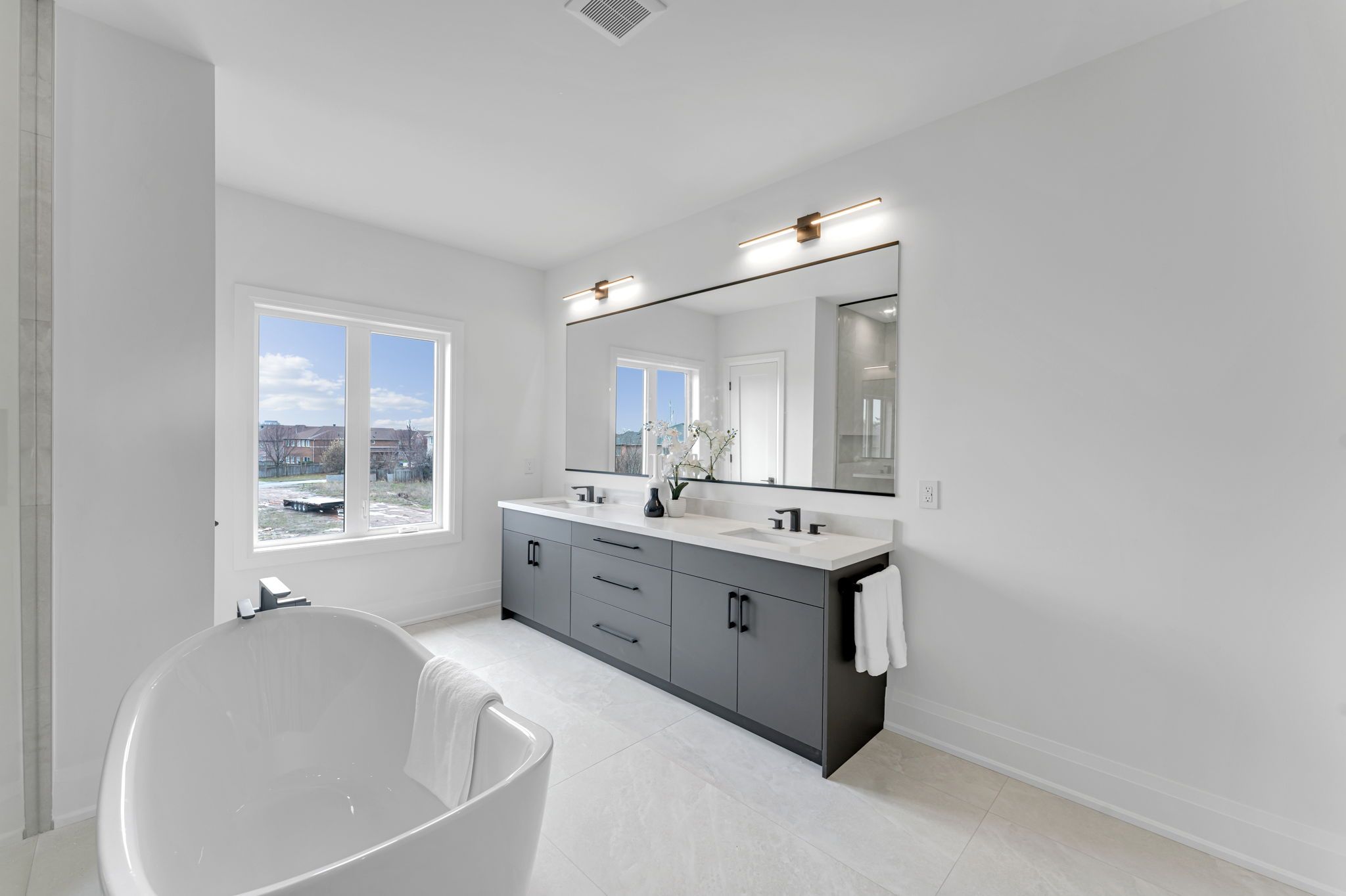 This brand new custom home built by award winning builder sits on a rare 170'+ deep lot, offering unparalleled backyard privacy in the heart of oakville. Boasting over 3,500 sq. Ft. Of refined above-grade living space, the home features 10' ceilings on the main level, an extra-wide foyer, and a private main-floor office. The chef-inspired custom kitchen overlooks a stunning open-concept family room anchored by a linear gas fireplace. The second level is a sanctuary of comfort; every bedroom features its own private ensuite and walk-in closet. The primary retreat is fitted with heated washroom flooring, smooth ceilings, and designer millwork. Meticulously finished with high-end tile and custom craftsmanship throughout. High ceilings in the basement, with a seperate walkup side entrance. Built with a full tarion warranty for total peace of mind. Perfectly located just minutes from the qew, 407, and premium oakville amenities. Luxury living redefined. Note - landscaping virtually enhanced by ai. Tb completion before closing.