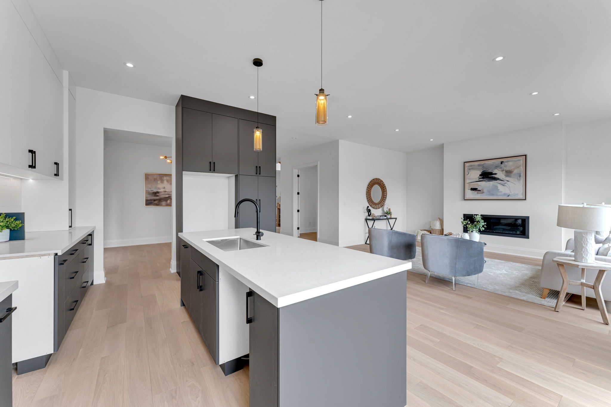 • Chef-inspired kitchen with an open-concept layout and gas fireplace.