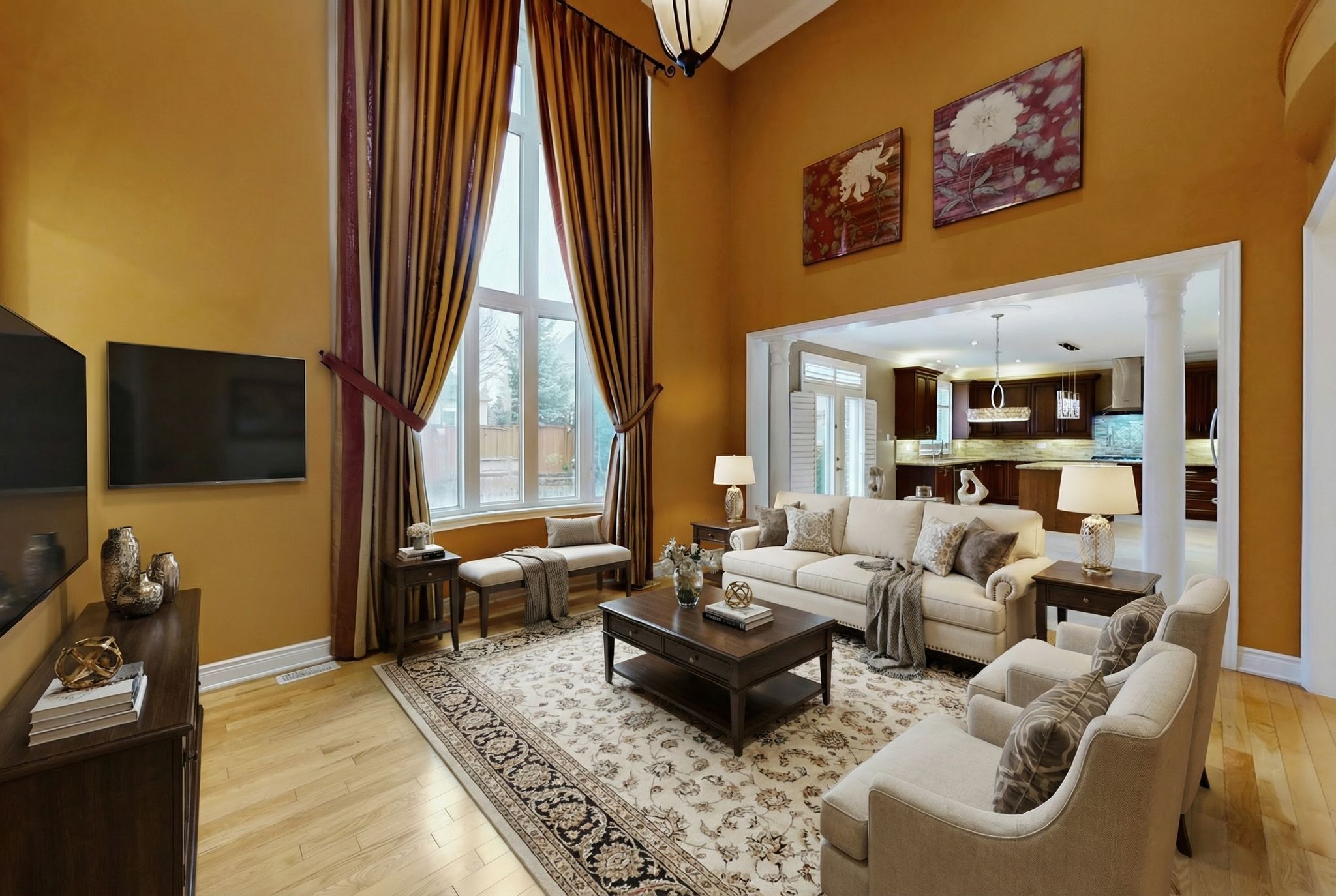 Spectacular executive residence nestled in the prestigious joshua creek community of oakville. This impressive 4+1 bedroom family home offers expansive, luxurious living space designed for both elegant entertaining and comfortable everyday living. A sun-drenched family room showcases soaring floor-to-ceiling windows and a striking fireplace, creating a warm yet dramatic focal point. The gourmet kitchen is beautifully appointed with granite countertops, a walk-in pantry, and a convenient butler's servery - perfect for hosting. The spacious primary suite is a private retreat, complete with a gas fireplace and an inviting sitting area. Set on a premium, pool-sized lot, this exceptional home also features a professionally finished open-concept lower level, offering versatile space for recreation, guests, or extended family living. A rare opportunity in one of oakville's most sought-after neighborhoods. Please note: some virtual staging photos attached with only furniture added. Please refer to both vacant & staged photos for reference.