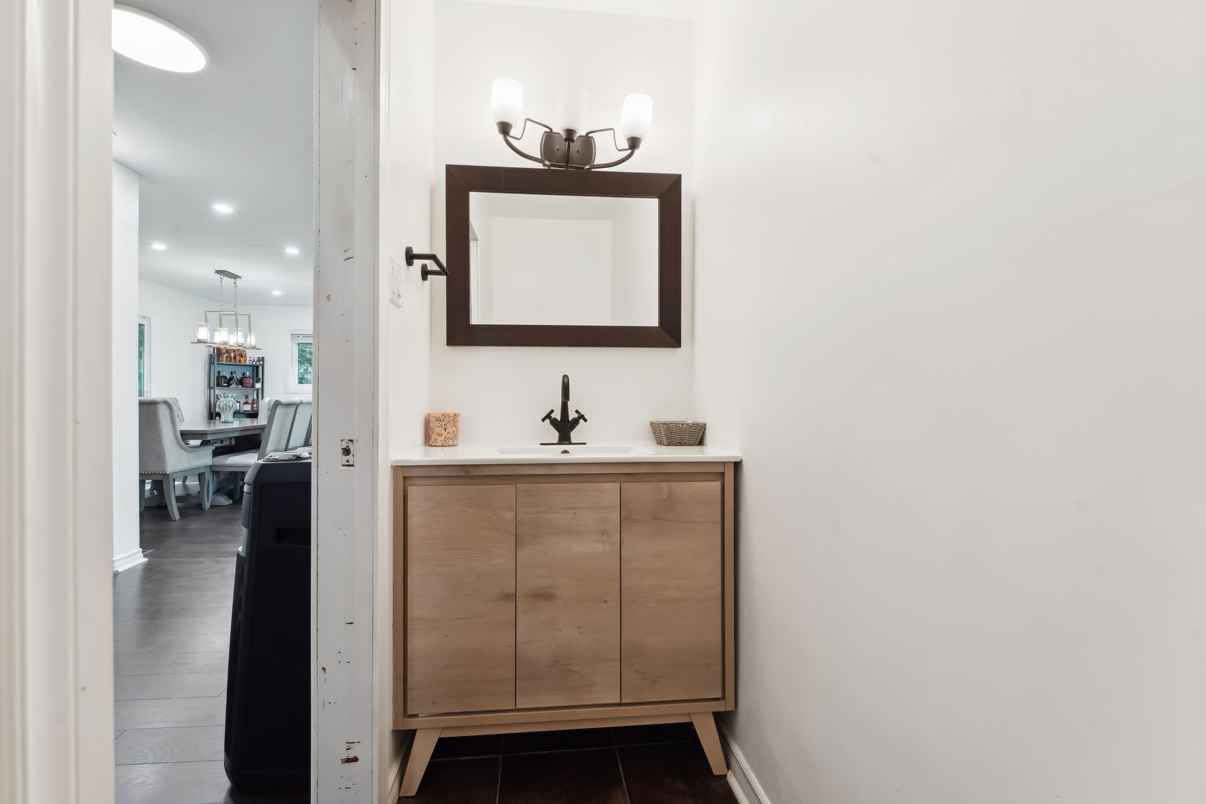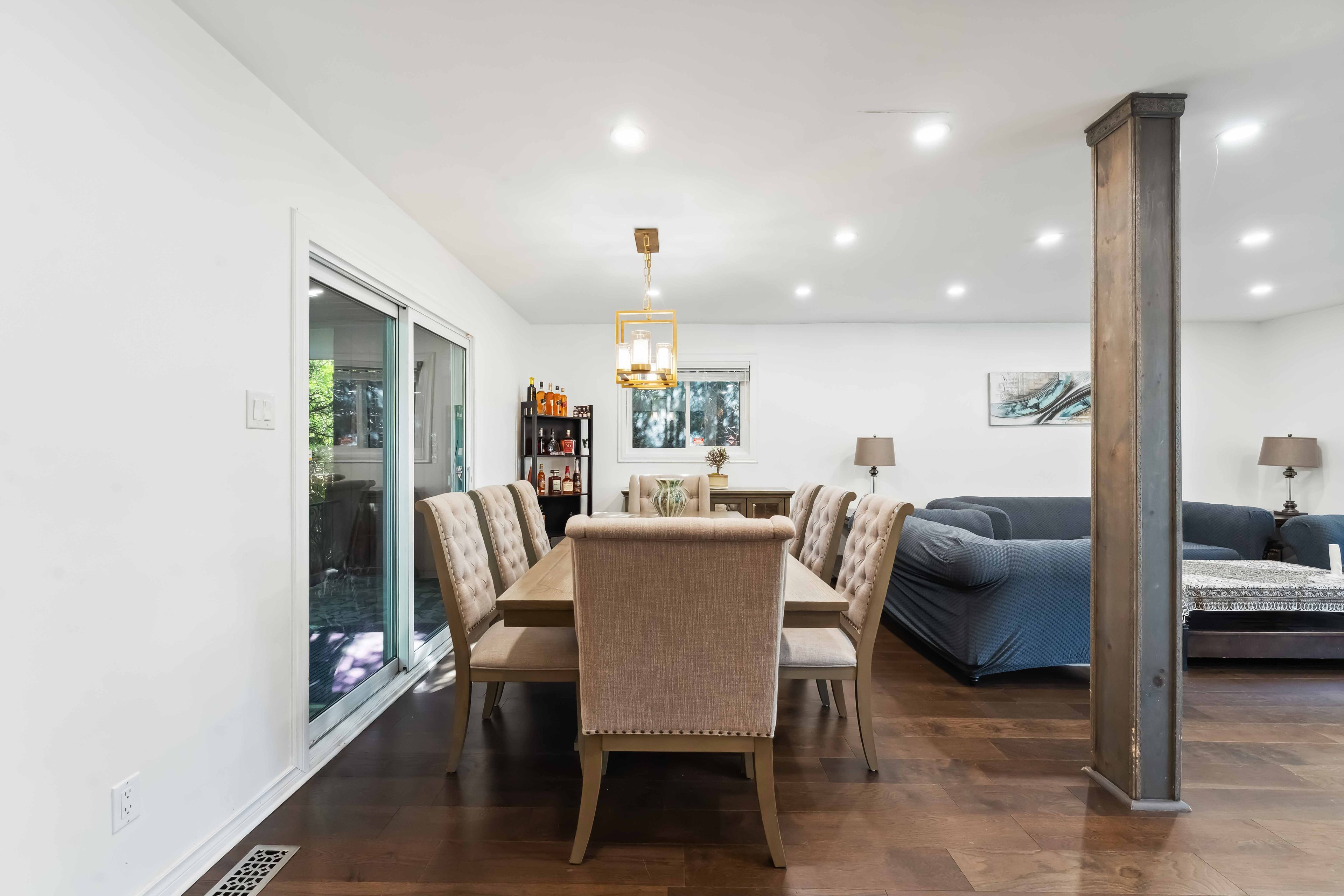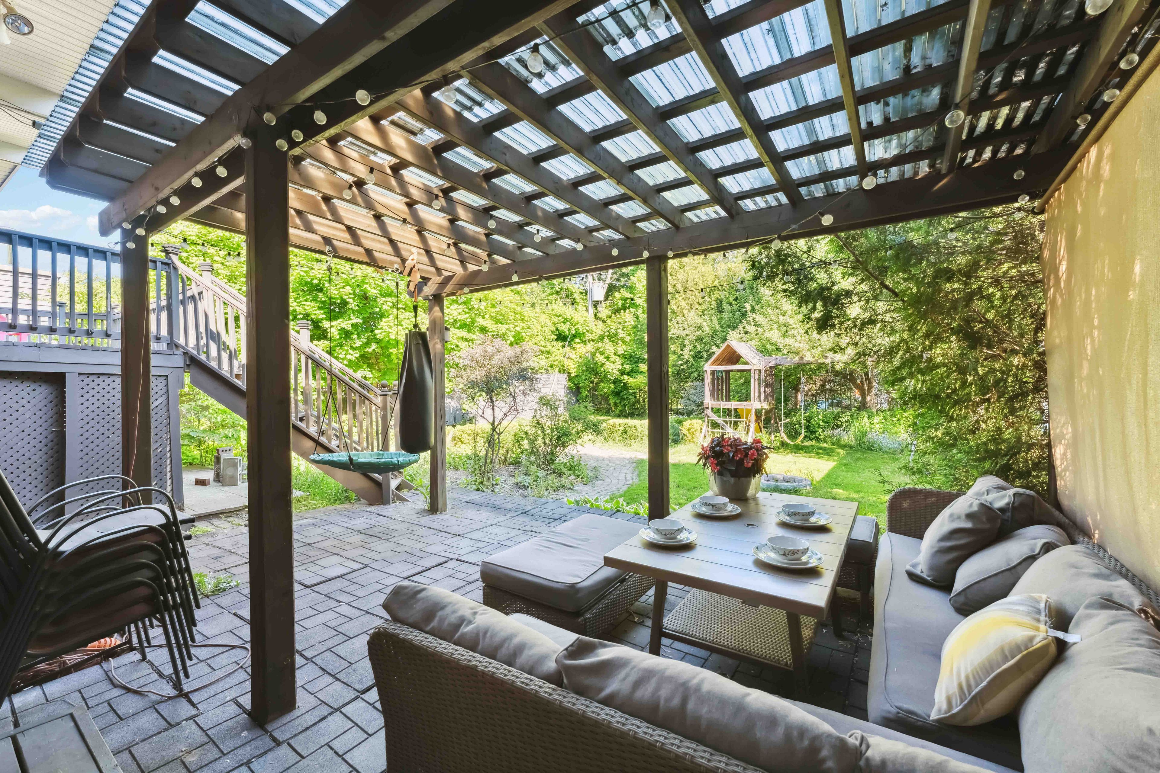 • Finished lower level with gas fireplace and direct backyard access.