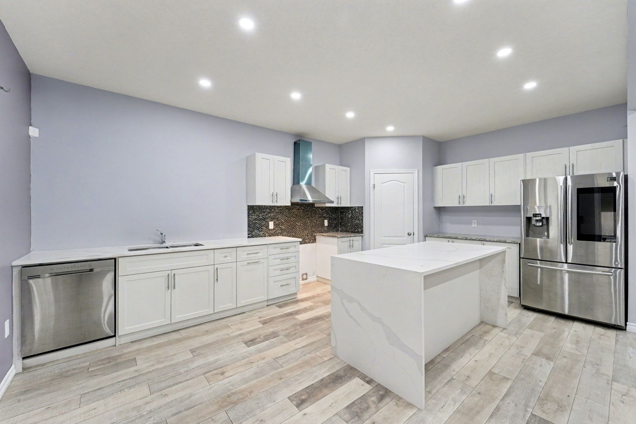 • Gourmet kitchen featuring granite countertops and a large island.