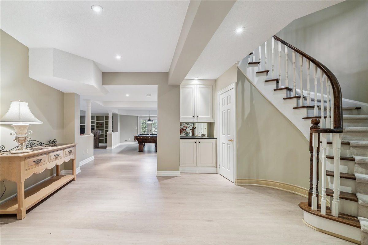 Built by the owner of fernbrook homes for his personal residence. Treed end unit ravine lot - walkout basement. This rare executive end-unit freehold townhome is set on a treed ravine lot - the largest on the street! Imagine waking in your main floor master to breathtaking treed views and unwinding in your walk-out basement retreat. With over 4000sq ft of total finished living space across three levels, this home is designed for those who crave both luxury and nature. Surrounded by the scenic beauty of lions valley park, sixteen mile creek, and canadas heritage walking trail at the end of your driveway, this home offers a peaceful yet connected lifestyle in one of oakville's most exclusive neighbourhoods - woodhaven estates. Inside, a grand two-storey foyer welcomes you, leading to an open and airy main level with hardwood floors, a formal open dining area, and a spacious living room with 16 foot windows bathed in natural light. The kitchen features maple cabinetry, granite countertops, chefs appliances, pantry, and breakfast area. Step out onto your deck, with a natural gas bbq connection, to enjoy a morning coffee while taking in the serene treed views. Upstairs, continues the wide plank hardwood flooring with another family room and two additional bedrooms and a four-piece bathroom, also on this level is a 17 ft x 9 ft storage room. The 1565 sq ft finished walk-out lower level with 2nd gas fireplace is a showstopper - offering a versatile entertainment space and billiards table, a three-piece bathroom and abundant storage. The walk-out leads to a stunning backyard oasis, where you'll find a stone patio, inground sprinkler system, all surrounded by lush greenery. Located just minutes from top-rated schools, oakville hospital, highways, and every convenience you could need.