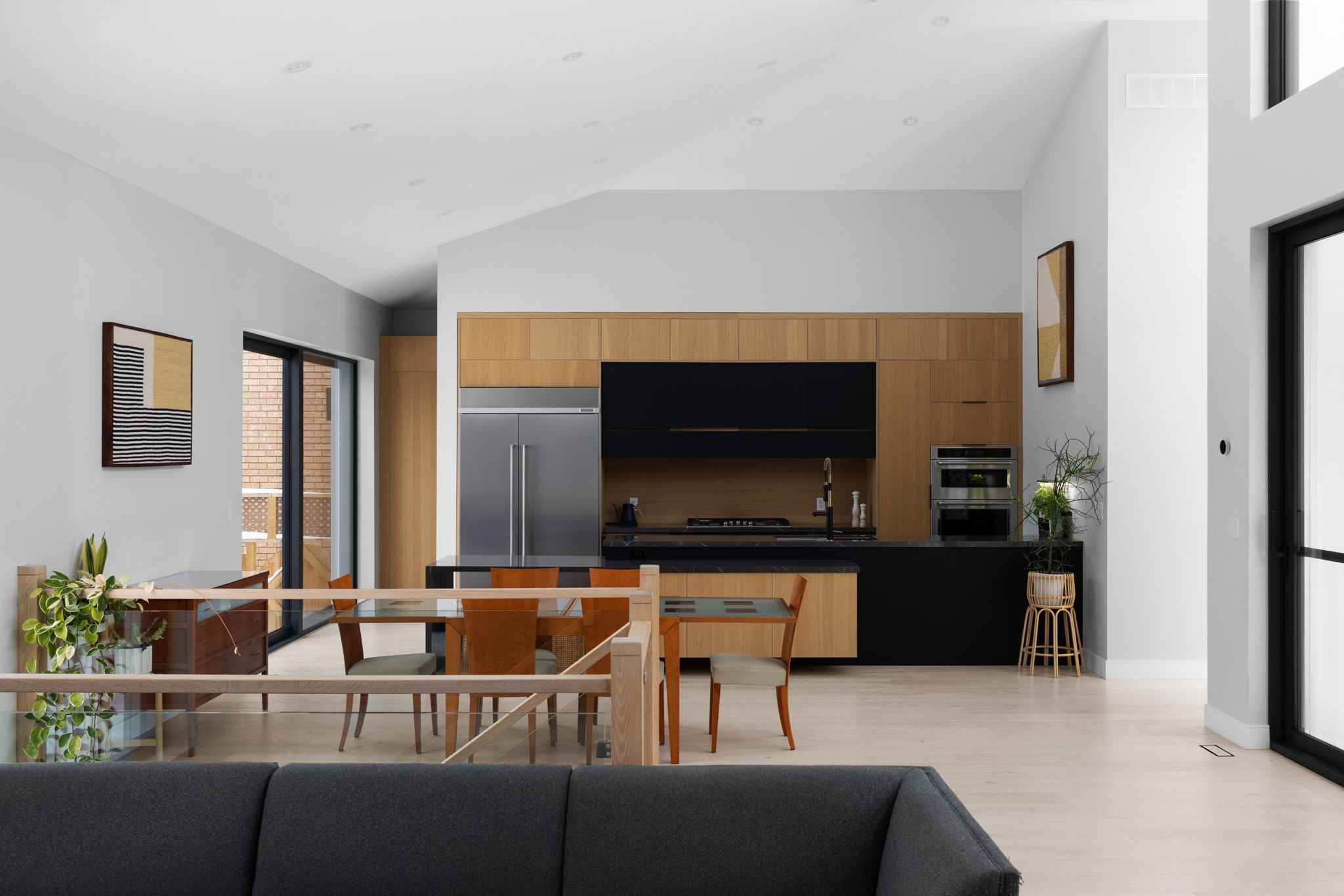 • Open-concept design with 17-ft cathedral ceilings and engineered hardwood.
