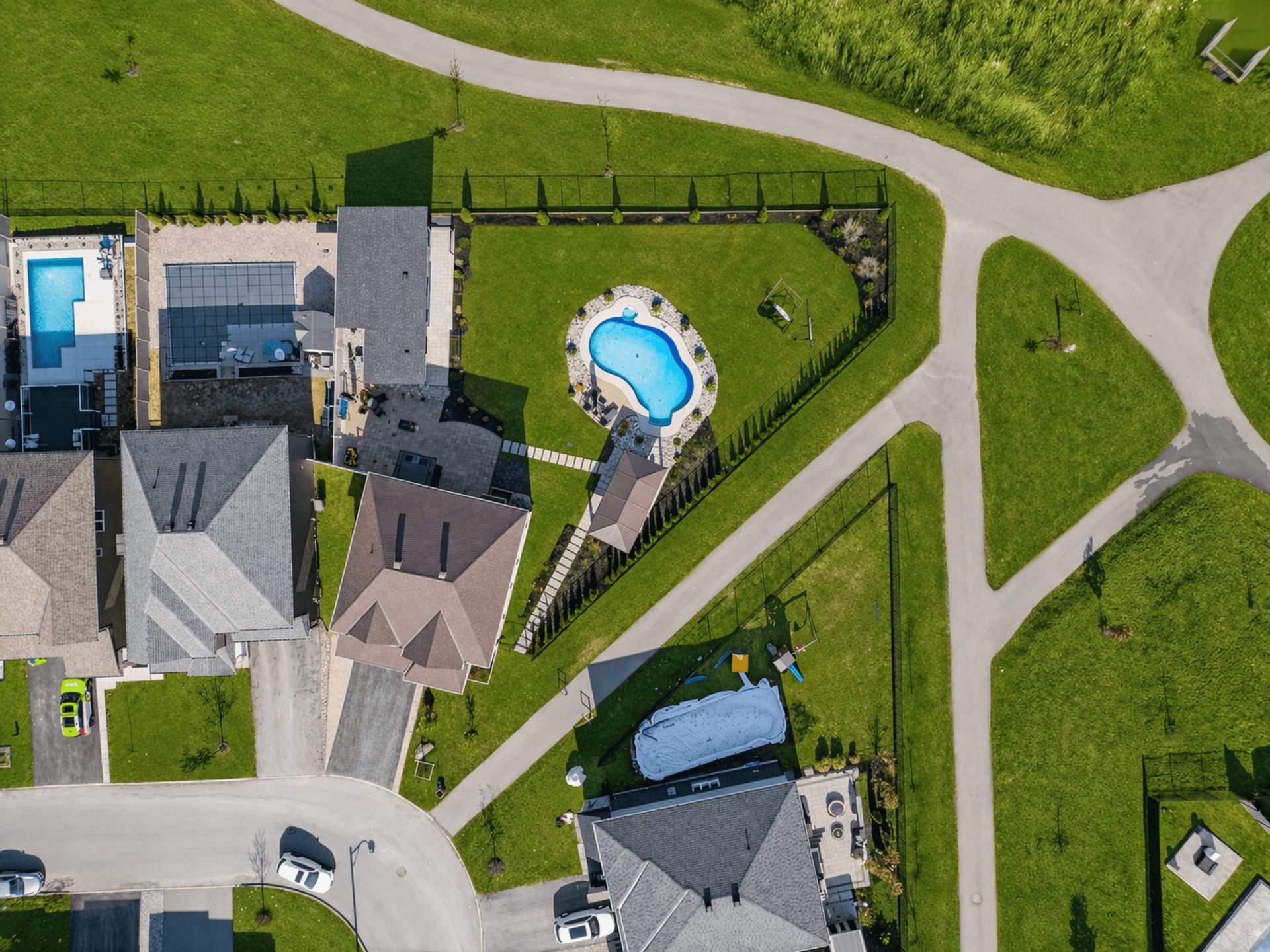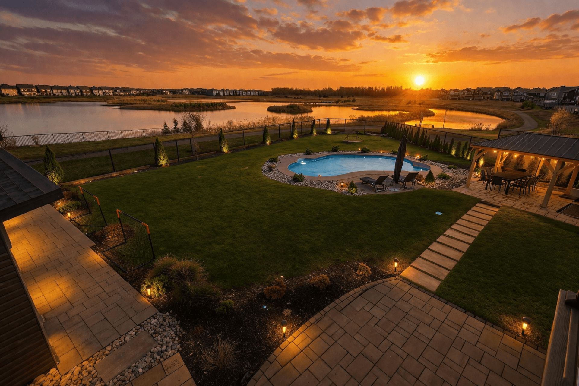 • Expansive lot features a stunning inground swimming pool for outdoor relaxation.