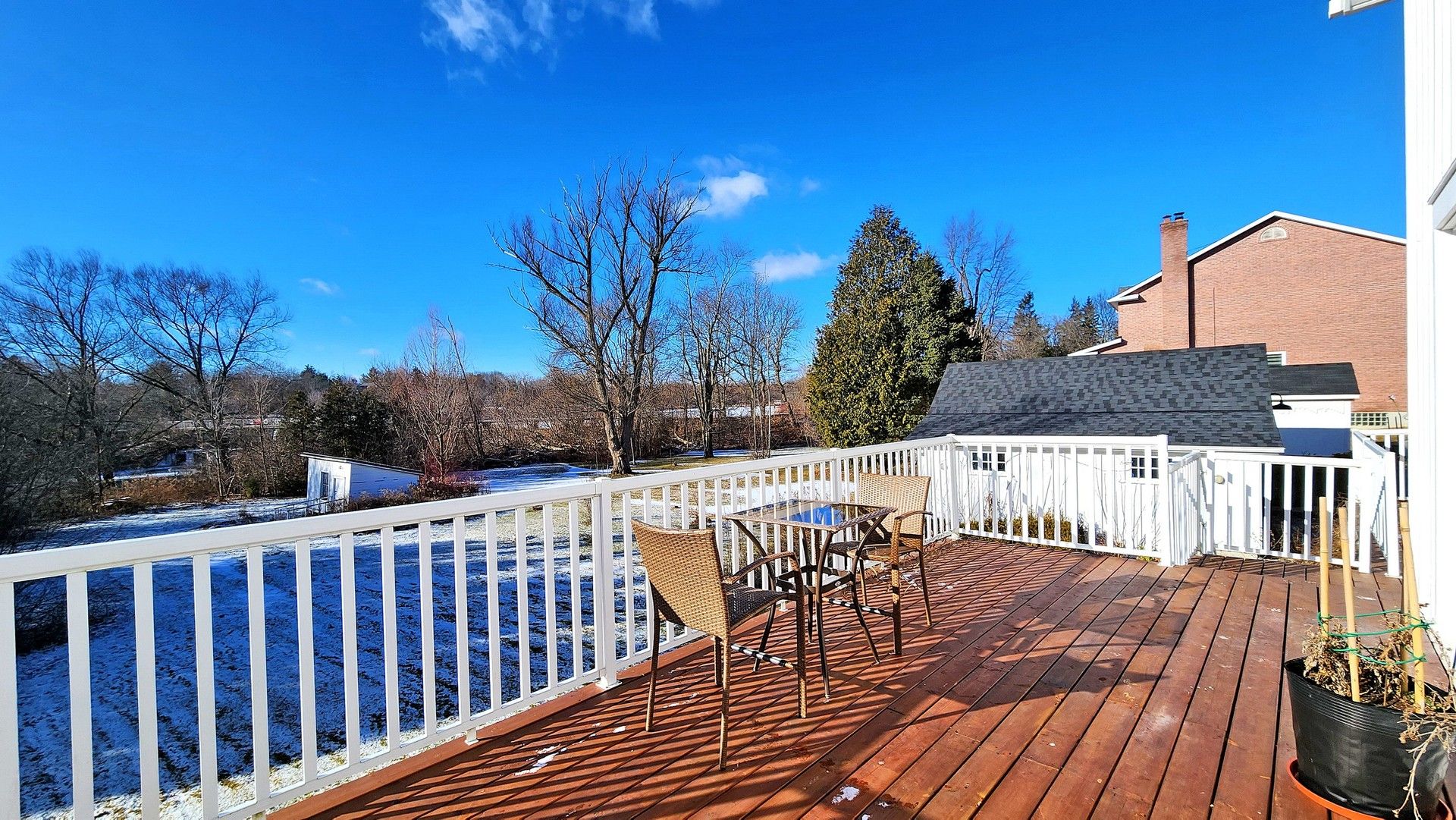 • Large balcony overlooking the pond, perfect for relaxing and enjoying nature.