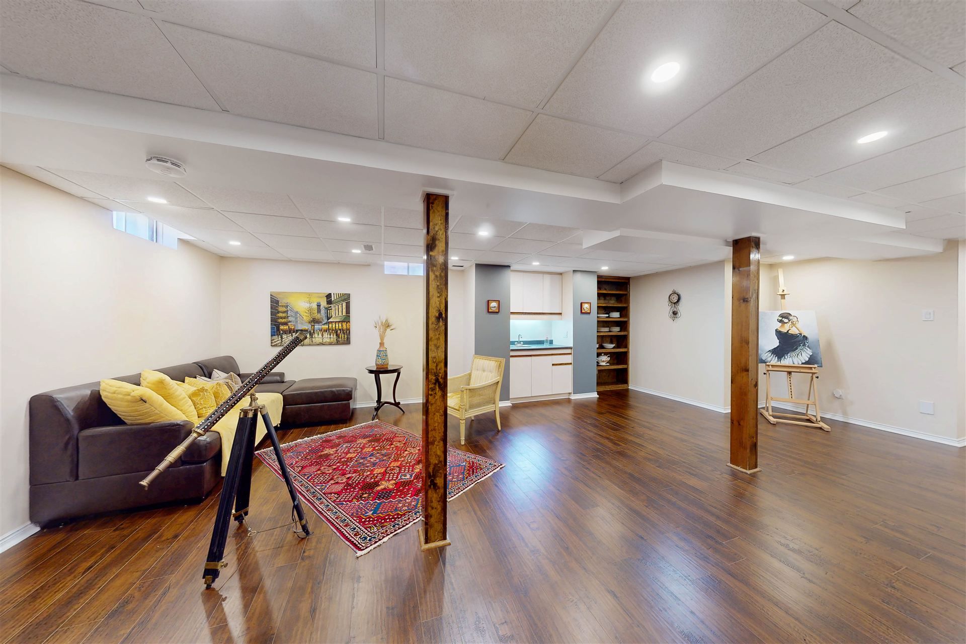 • Finished basement with bedrooms, bathroom, and mini kitchenette for flexibility.