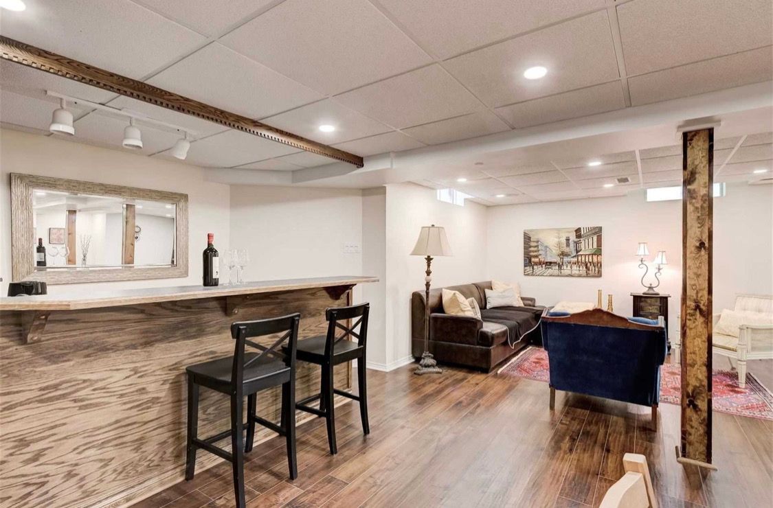 • Finished basement with two bedrooms and mini kitchenette for extra living space.