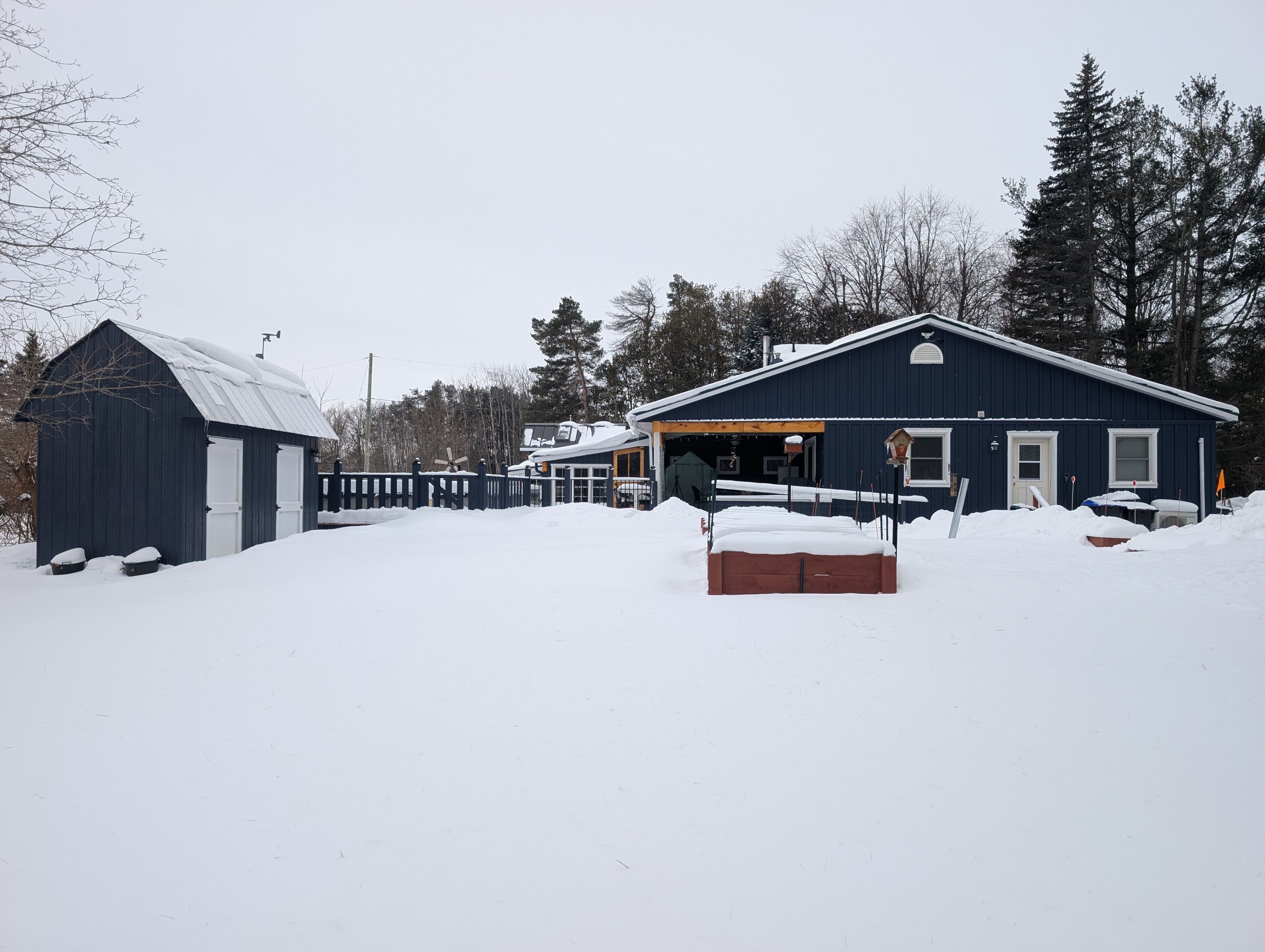 There are houses... And then there are homes that you simply feel at peace the moment you arrive. This is one of those two-family homes that are a rare find - warm, welcoming, and thoughtfully designed for real life. From the moment you step inside, you'll notice the care and craftsmanship throughout. Most of the living spaces are on one level, including a legal accessory apartment designed with barrier-free accessibility in mind. This home is ideal for multi-generational living, aging parents, adult children, or guests who need their own comfortable space. There's room here for the whole family to gather, celebrate, and grow - and just as important, room to unwind. Whether you're chilling on the huge enclosed porch or cozied up next to the warm woodstove, time seems to stand still here. Custom trim work, wood and porcelain countertops, custom doors, and beautiful wood finishes give this home character you simply won't find in a cookie-cutter build. A charming kids' loft complete with its own 3-piece bath adds both fun and function. Summer is where this property truly comes alive. Imagine mornings on a covered porch spanning over 800 square feet, watching the kids play in the pool, or enjoying fresh country air. The expansive deck and sparkling, large above-ground pool set the stage for unforgettable bbqs, birthday parties, and evenings that stretch long after sunset. Step outside and you'll find lush grounds with fruit and flowering trees, generous parking, and space for your rv/boat or visiting family and friends. Let's not forget the detached shop. Tucked away on a peaceful dead-end street, you'll enjoy privacy and tranquility - yet you're only 15 minutes to collingwood, 10 minutes to sandy beaches, and just over an hour to toronto international airport. This is a lifestyle - a place to put down roots and build memories. Come experience it; you may never want to leave. You need to see it to see the value!! Where can you buy two homes with this much value?