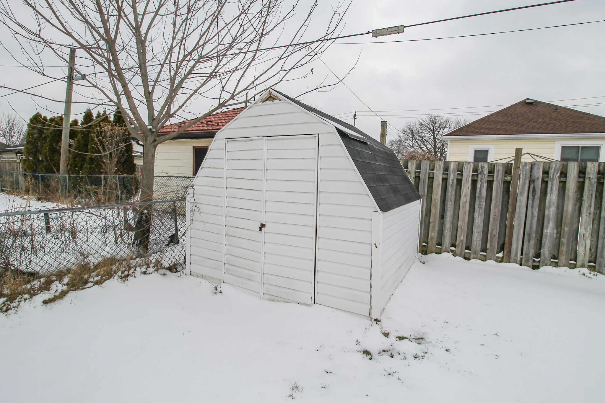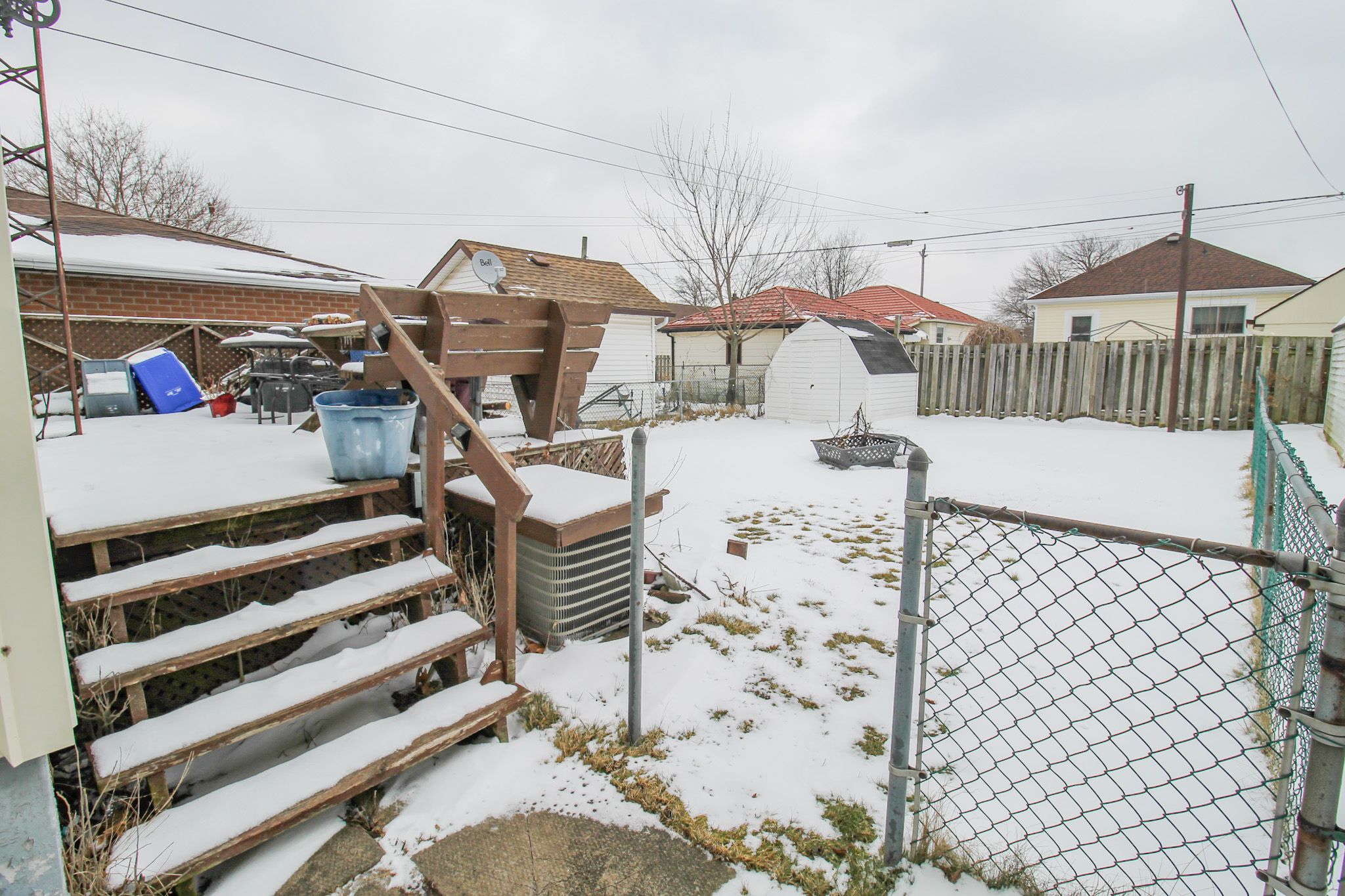 • Huge backyard with deck, fire-pit, and garden shed for outdoor enjoyment.
