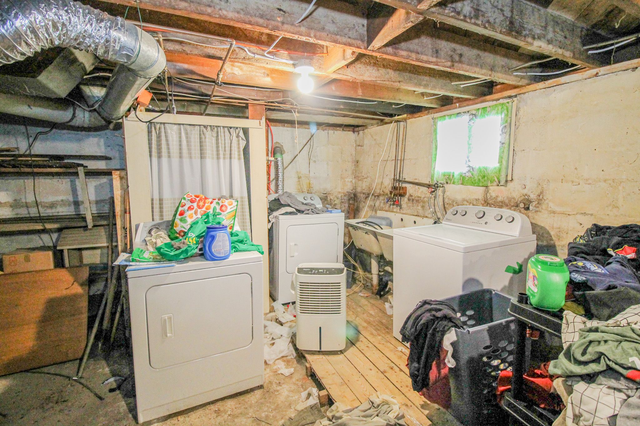 • Unfinished basement offers storage or potential for additional use.