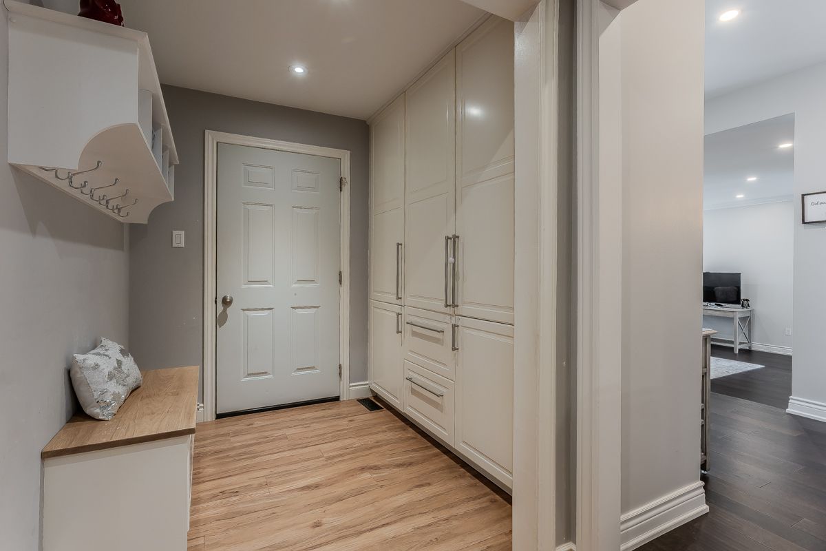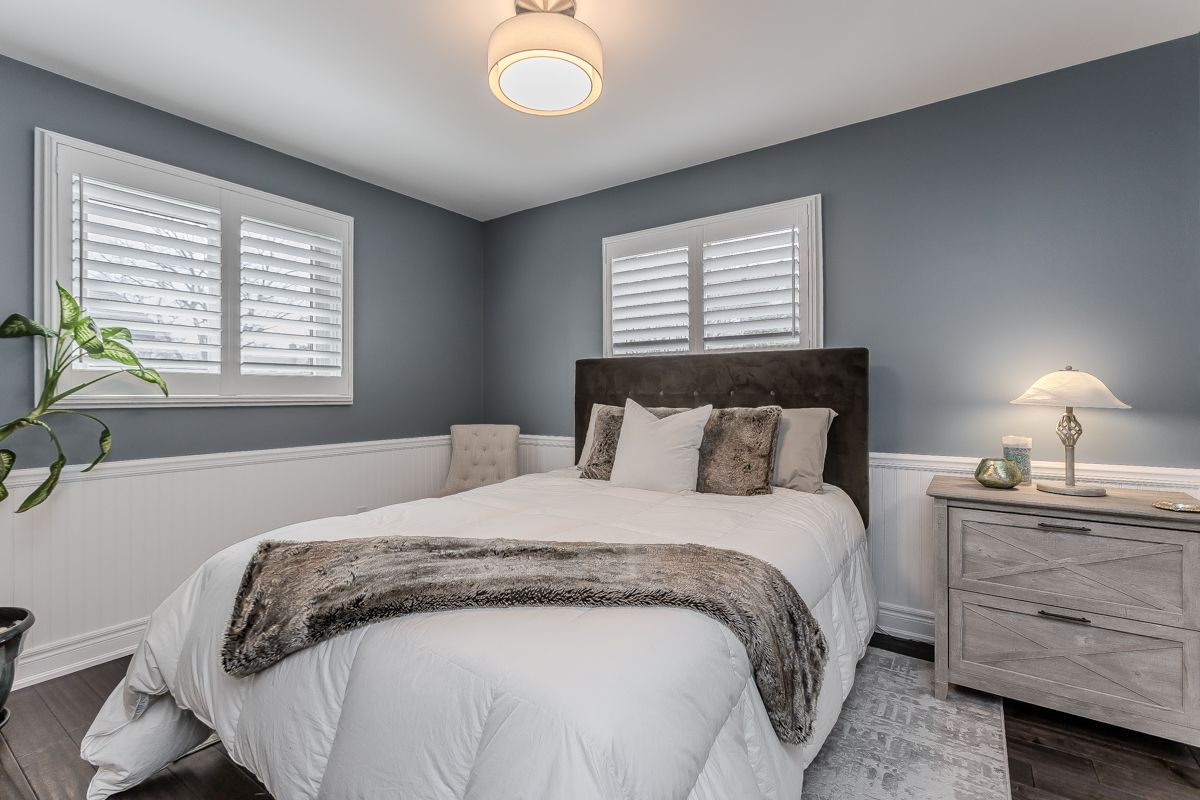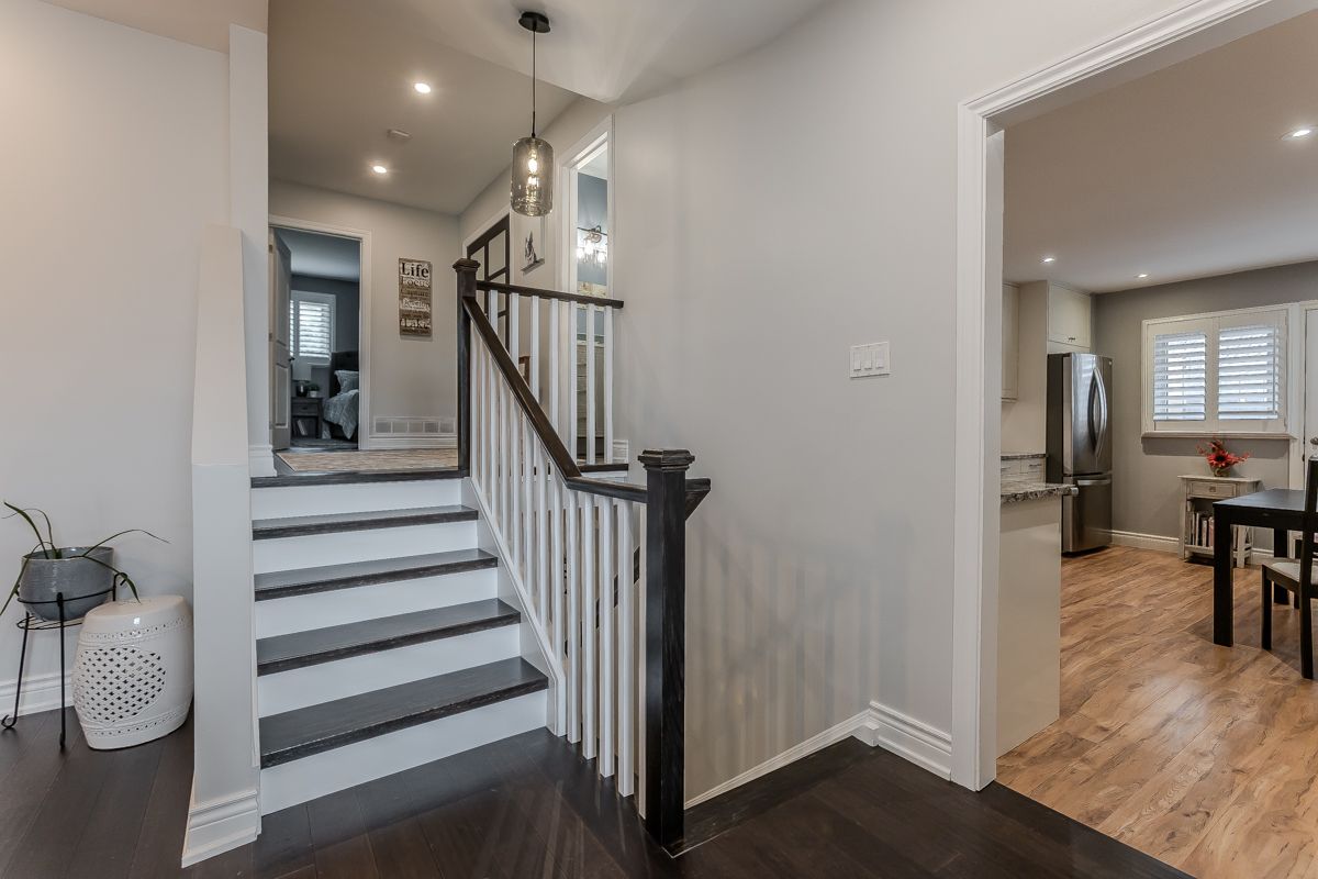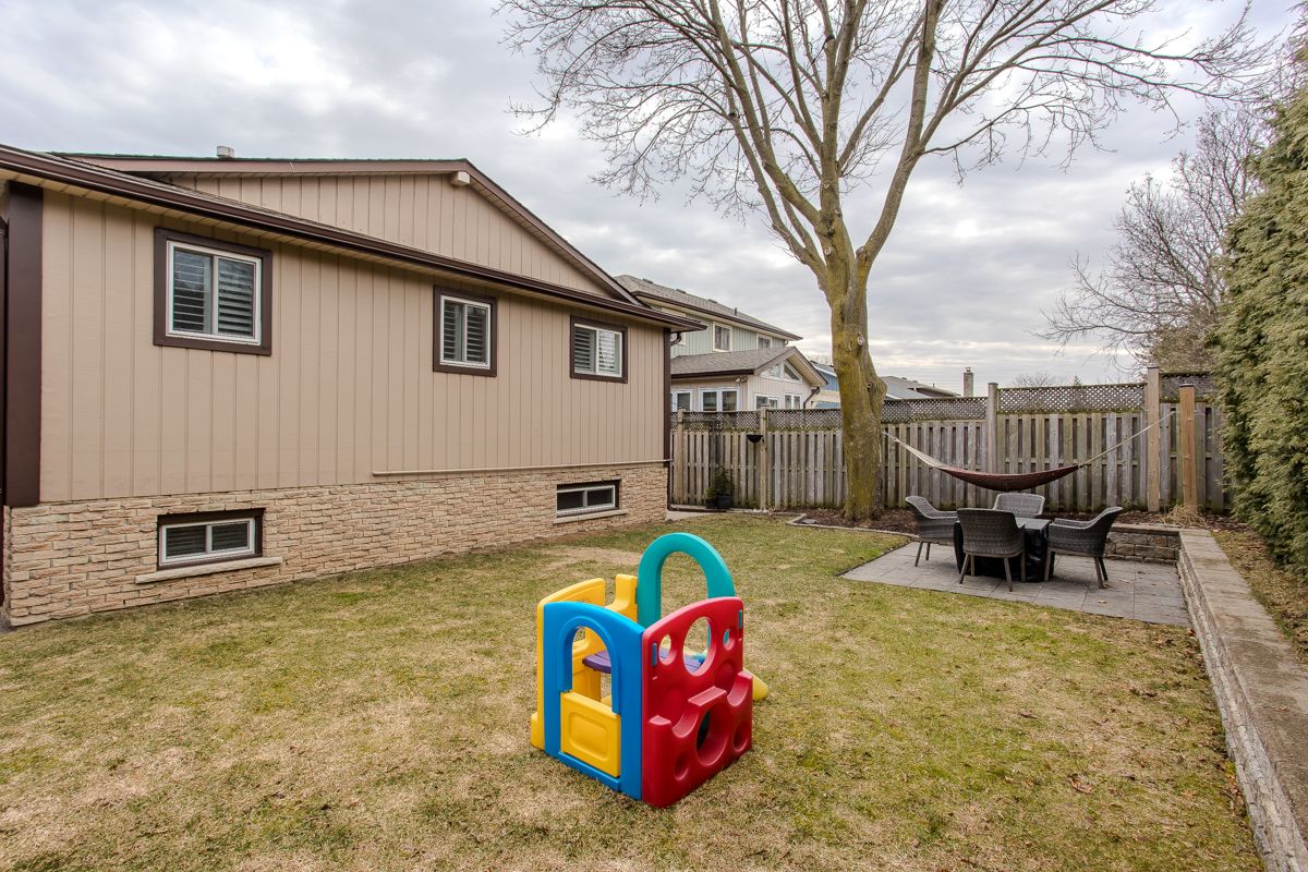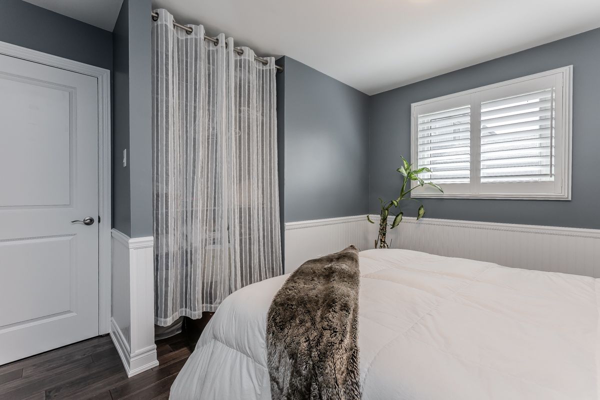 Welcome to this beautifully updated turnkey family home with standout curb appeal featuring a stone façade and stamped concrete walkway. Step inside to a spacious, light-filled interior with elegant and luxurious renovations at every turn. The open concept main floor welcomes you home with a gorgeous hardwood staircase and a formal dining room overlooking a huge sunken living room with a walkout to the backyard-perfect spaces for everyday living and entertaining family gatherings. The modern eat-in kitchen is designed with both style and function in mind, featuring granite countertops, soft close drawers, stainless steel appliances including gas range, a sleek tile backsplash and built-in wine storage. A convenient mudroom with built-in cabinets provides direct access to the 1. 5-car garage, which accommodates one full-size vehicle and offers ample extra space for bikes, lawn accessories, workshop tools and more. Upstairs, the spacious primary retreat includes dual closets and a beautifully renovated 4-piece ensuite bath. Two additional well-sized bedrooms and a full 4-piece bathroom provide plenty of room for growing families. All bedrooms feature california shutters, upgraded baseboards and gleaming hardwood floors. The finished lower level expands your living space with a large recreation room anchored by a cozy brick-surround gas fireplace, above grade windows, an additional bedroom (no closet), a 2-piece bath, utility/laundry and crawl space rooms for storage. Step outside to your private, fully fenced backyard oasis complete with landscaped patio, bbq gas hookup, mature trees and green space for kids and pets to enjoy. The gentle steps between levels make this 3-level backsplit the ultimate bungalow alternative. Offering a perfect blend of comfort, and style this home is designed for modern family living. Ideally located close to top-rated schools, parks, amenities, transit and shopping.