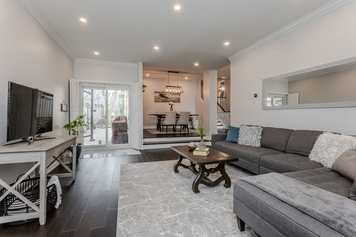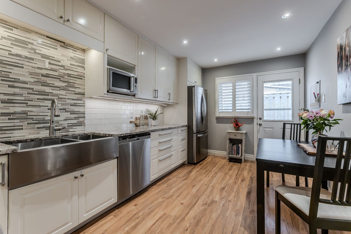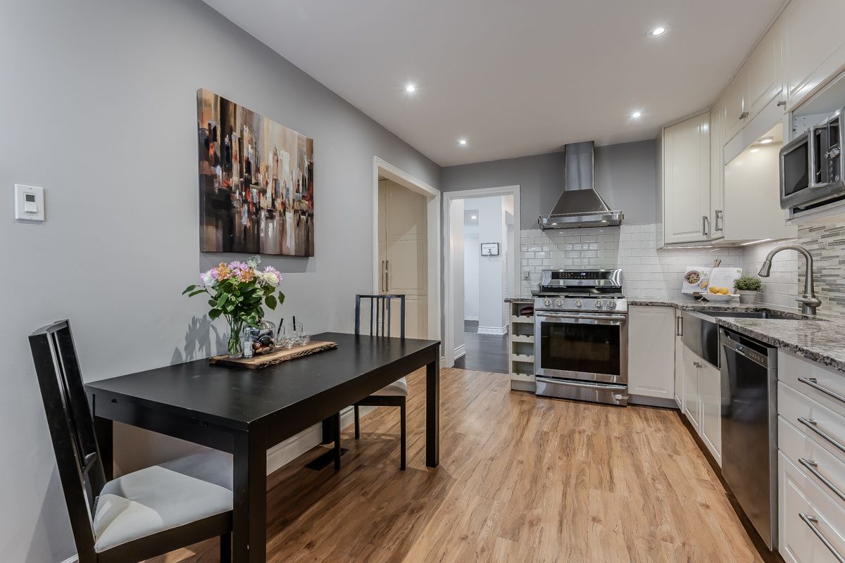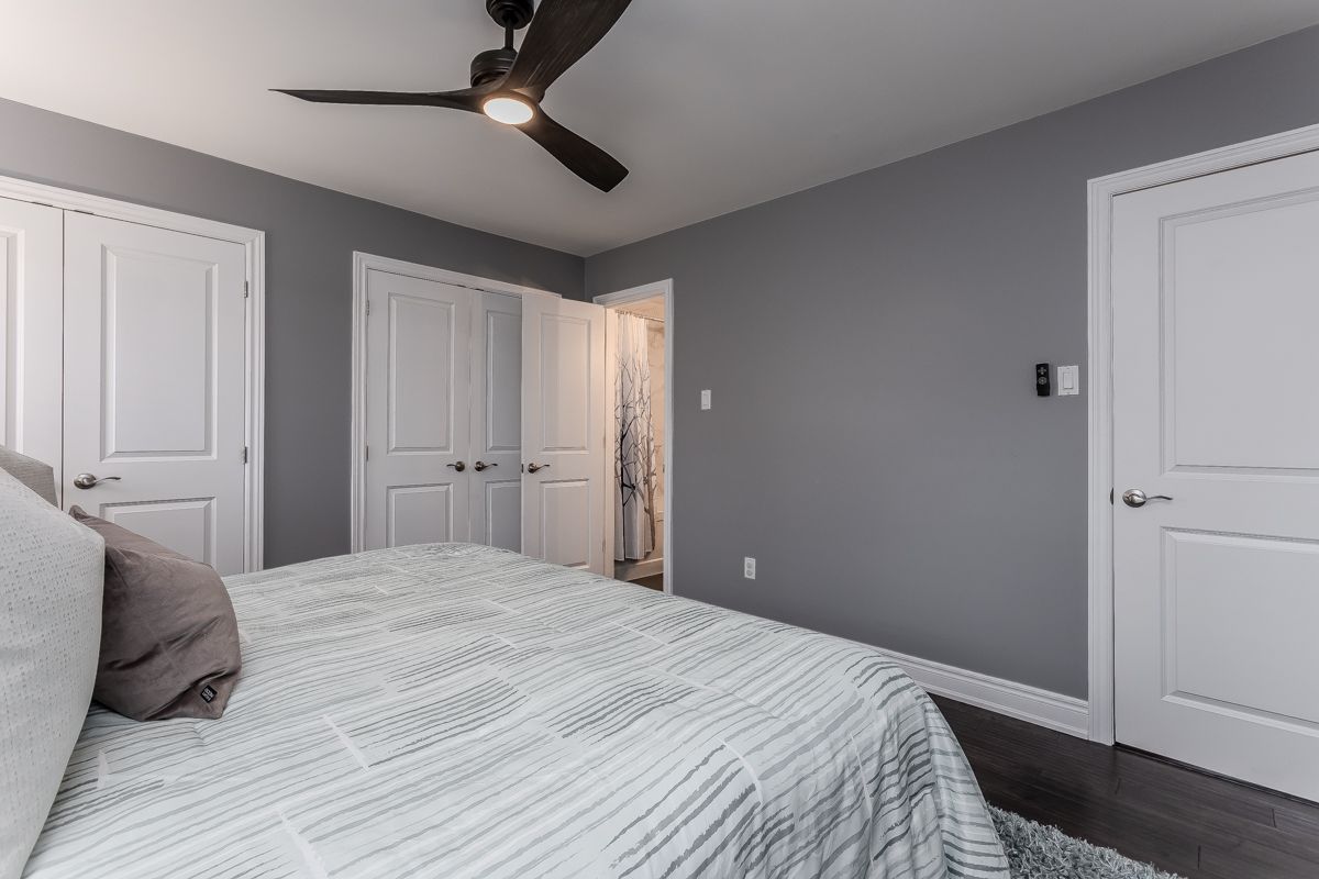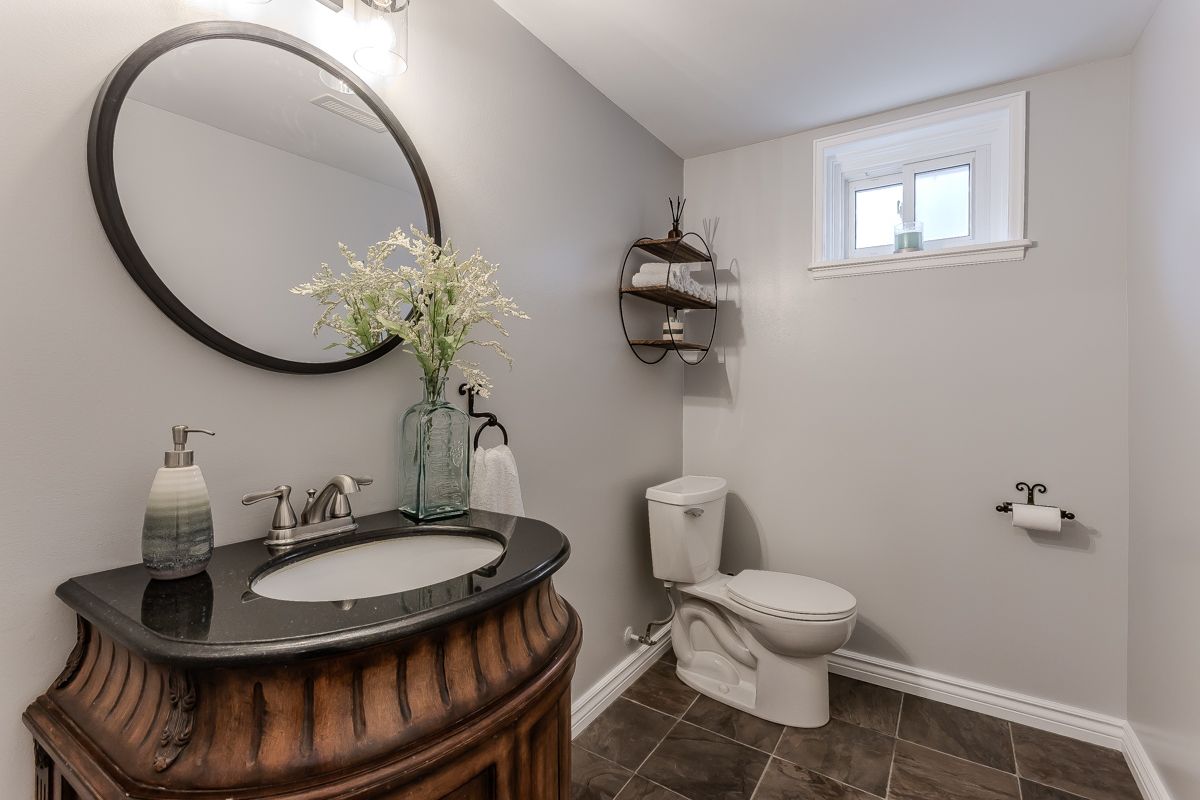 Welcome to this beautifully updated turnkey family home with standout curb appeal featuring a stone façade and stamped concrete walkway. Step inside to a spacious, light-filled interior with elegant and luxurious renovations at every turn. The open concept main floor welcomes you home with a gorgeous hardwood staircase and a formal dining room overlooking a huge sunken living room with a walkout to the backyard-perfect spaces for everyday living and entertaining family gatherings. The modern eat-in kitchen is designed with both style and function in mind, featuring granite countertops, soft close drawers, stainless steel appliances including gas range, a sleek tile backsplash and built-in wine storage. A convenient mudroom with built-in cabinets provides direct access to the 1. 5-car garage, which accommodates one full-size vehicle and offers ample extra space for bikes, lawn accessories, workshop tools and more. Upstairs, the spacious primary retreat includes dual closets and a beautifully renovated 4-piece ensuite bath. Two additional well-sized bedrooms and a full 4-piece bathroom provide plenty of room for growing families. All bedrooms feature california shutters, upgraded baseboards and gleaming hardwood floors. The finished lower level expands your living space with a large recreation room anchored by a cozy brick-surround gas fireplace, above grade windows, an additional bedroom (no closet), a 2-piece bath, utility/laundry and crawl space rooms for storage. Step outside to your private, fully fenced backyard oasis complete with landscaped patio, bbq gas hookup, mature trees and green space for kids and pets to enjoy. The gentle steps between levels make this 3-level backsplit the ultimate bungalow alternative. Offering a perfect blend of comfort, and style this home is designed for modern family living. Ideally located close to top-rated schools, parks, amenities, transit and shopping.