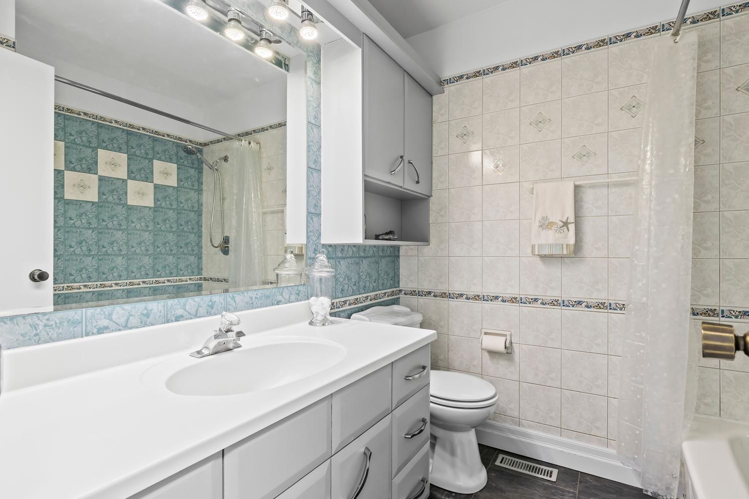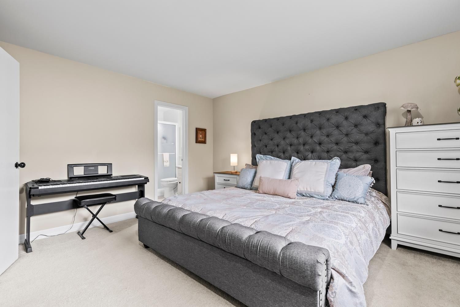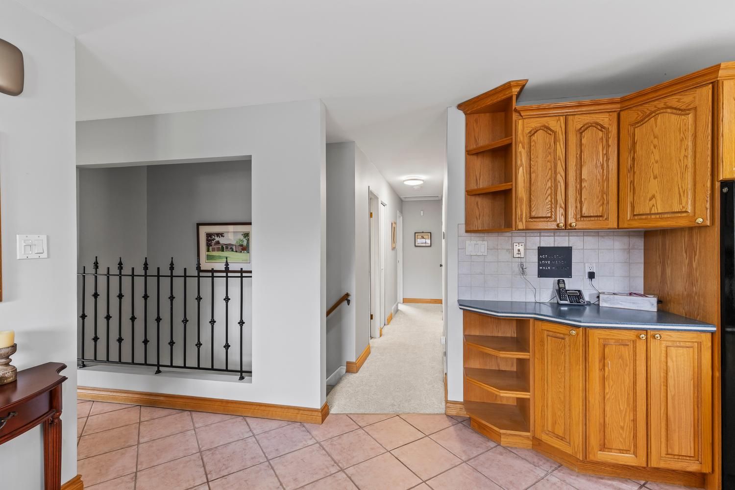 • Kitchen features solid oak cabinetry and quartz countertops for cooking enthusiasts.