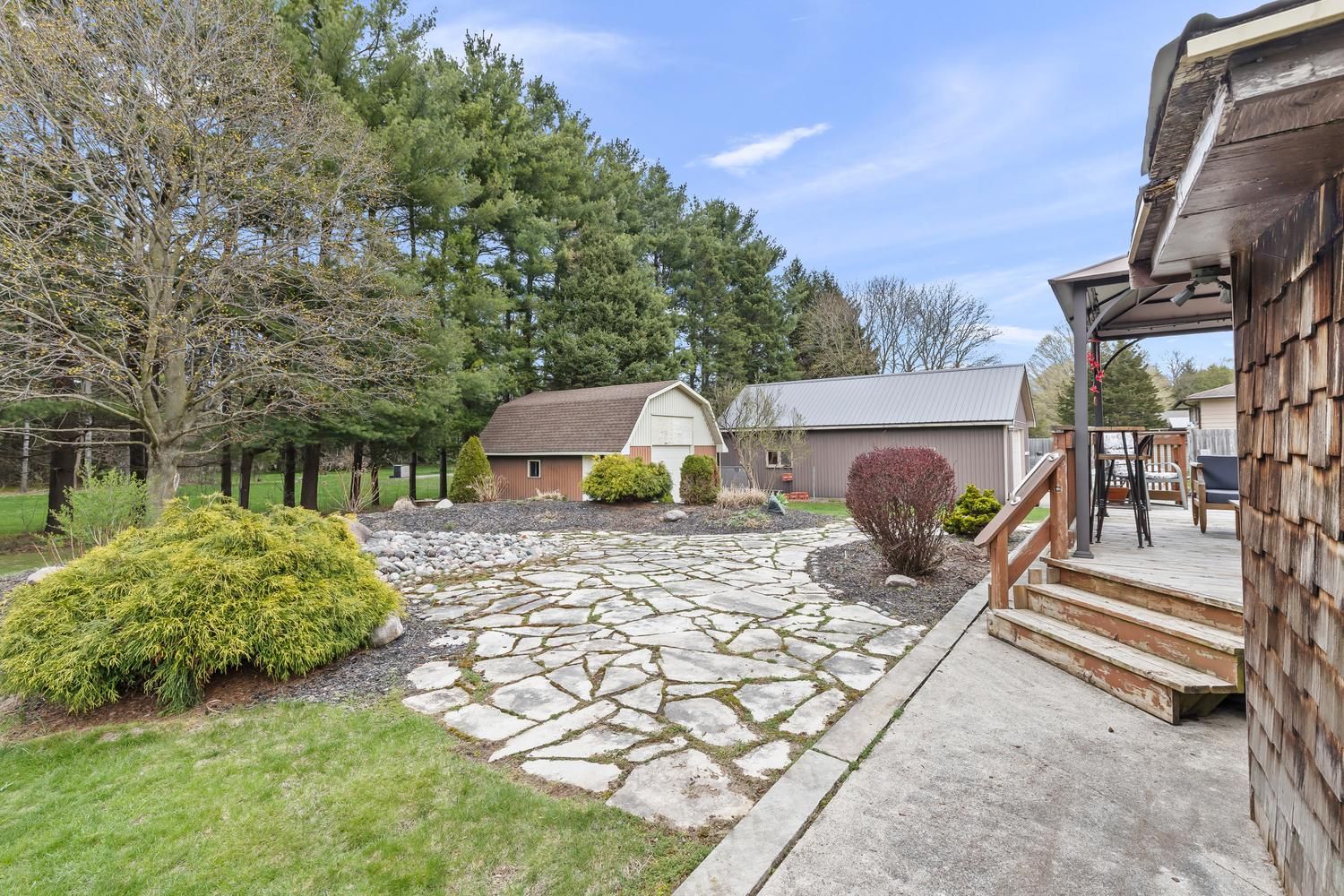 Welcome to this desired area, close to dorchester. Well-maintained 3-bedroom, 3-bath bungalow with shop set on nearly half an acre, backing onto peaceful green space. This inviting home offers a functional layout and a partially finished basement providing additional living space-ideal for family living, entertaining, or a home office. The well-appointed kitchen features solid oak cabinetry, quartz countertops, a gas stove, built-in microwave and dishwasher-perfect for everyday living and cooking enthusiasts alike. Upgrades include a 200 amp electrical service, roof (approximately 3 years old), & attic insulation upgraded in 2025, new heat pump, hepa filter and tankless water heater, adding to the home's efficiency and peace of mind. Step outside to a large deck overlooking the private, treed yard-an ideal spot to relax and enjoy the surrounding nature. Beautiful gardens and a covered front porch further enhance the outdoor living space in this peaceful setting. For those needing space to work or store equipment, the impressive large shop is a standout feature. With ample parking and plenty of room for a transport truck, trailer, or motorhome, this property offers incredible flexibility for hobbyists, mechanics, or outdoor enthusiasts. Conveniently located close to 401, pine knot golf and not far from slo-pitch city.