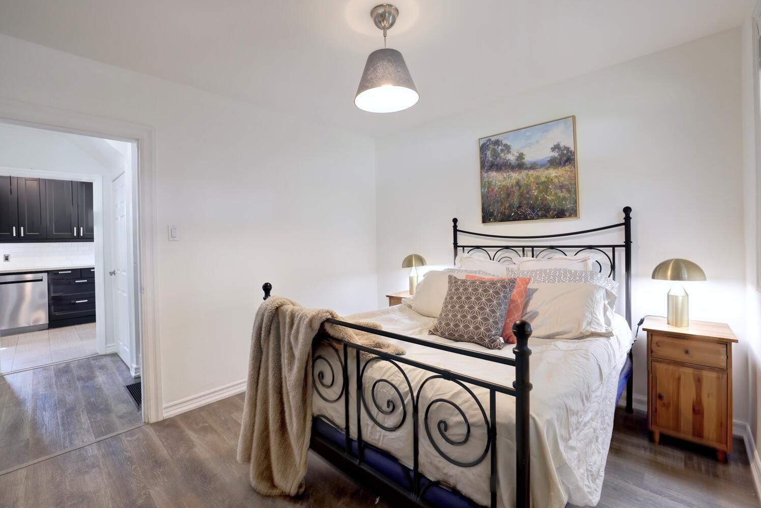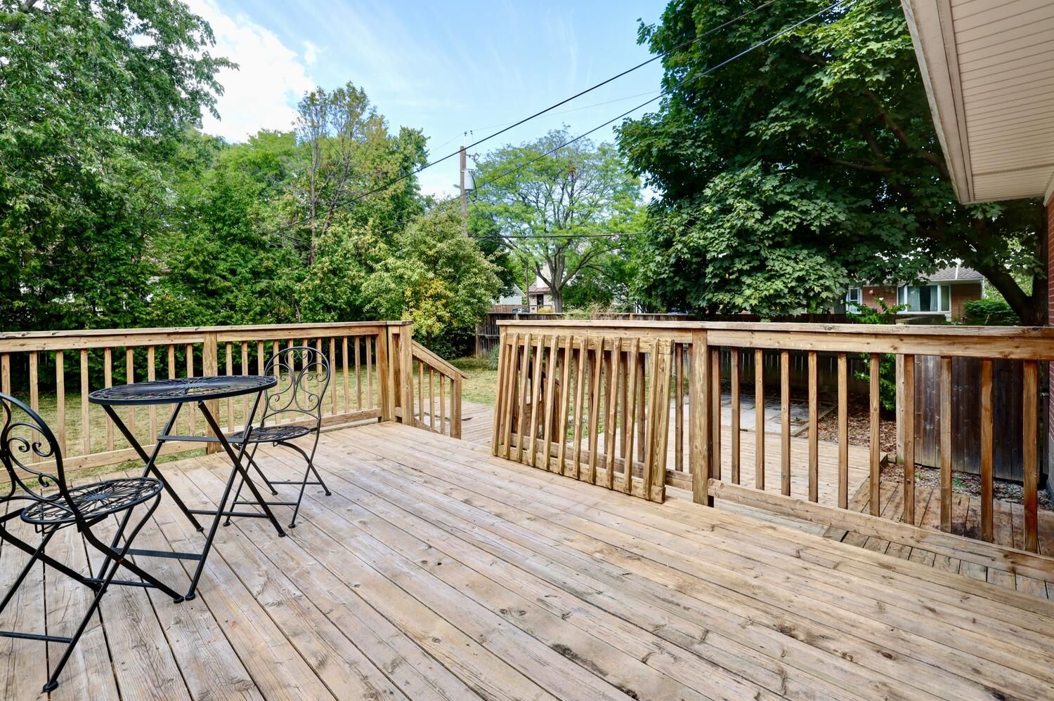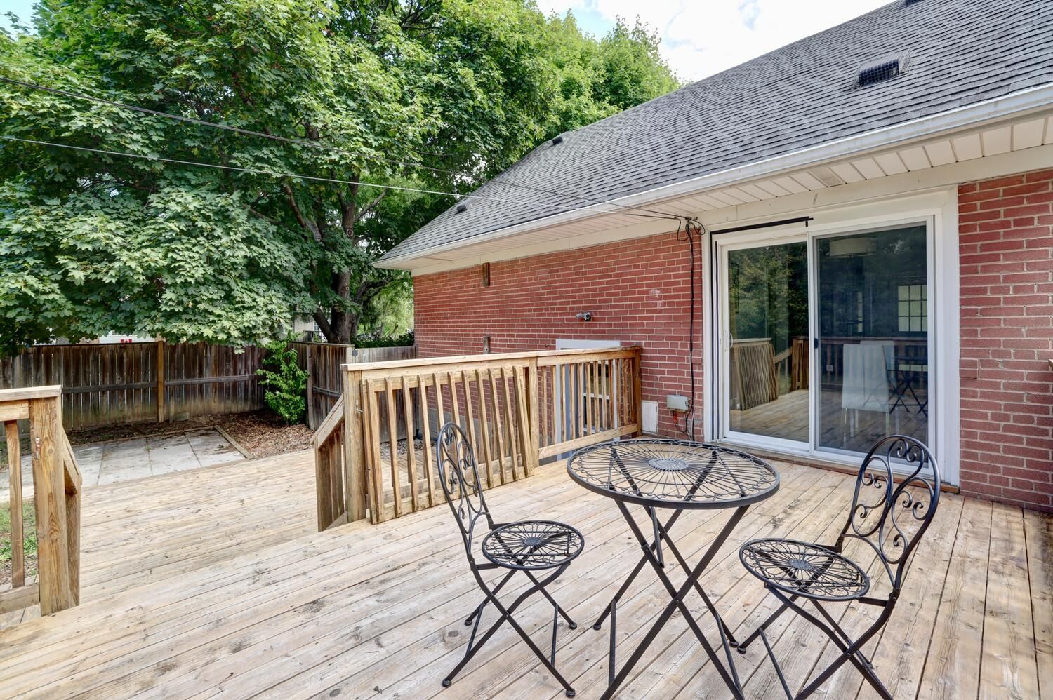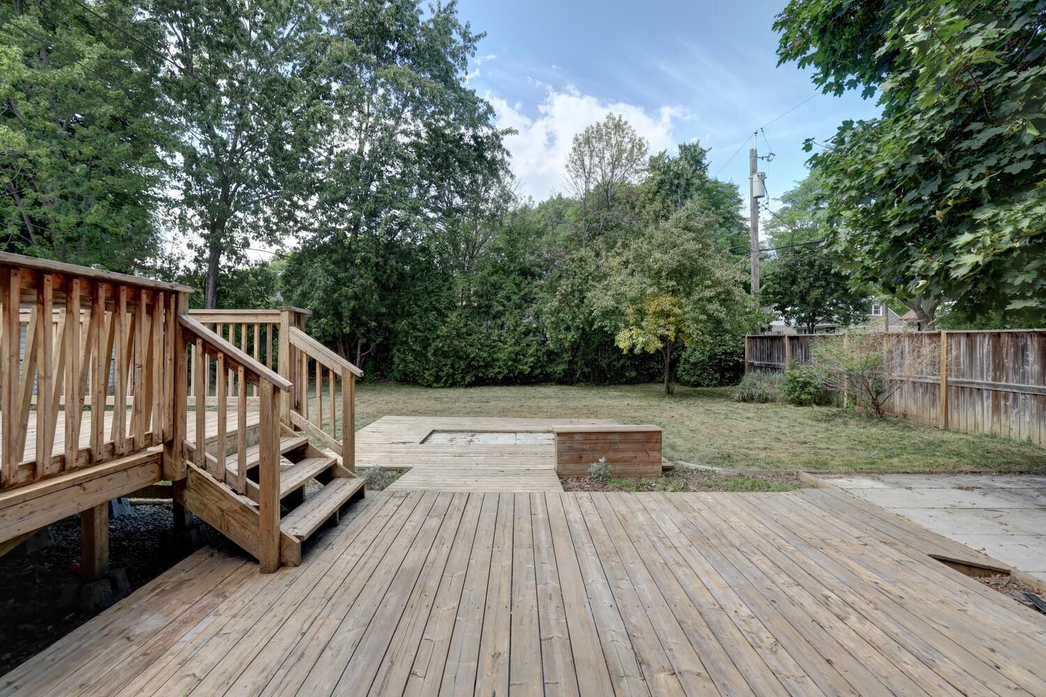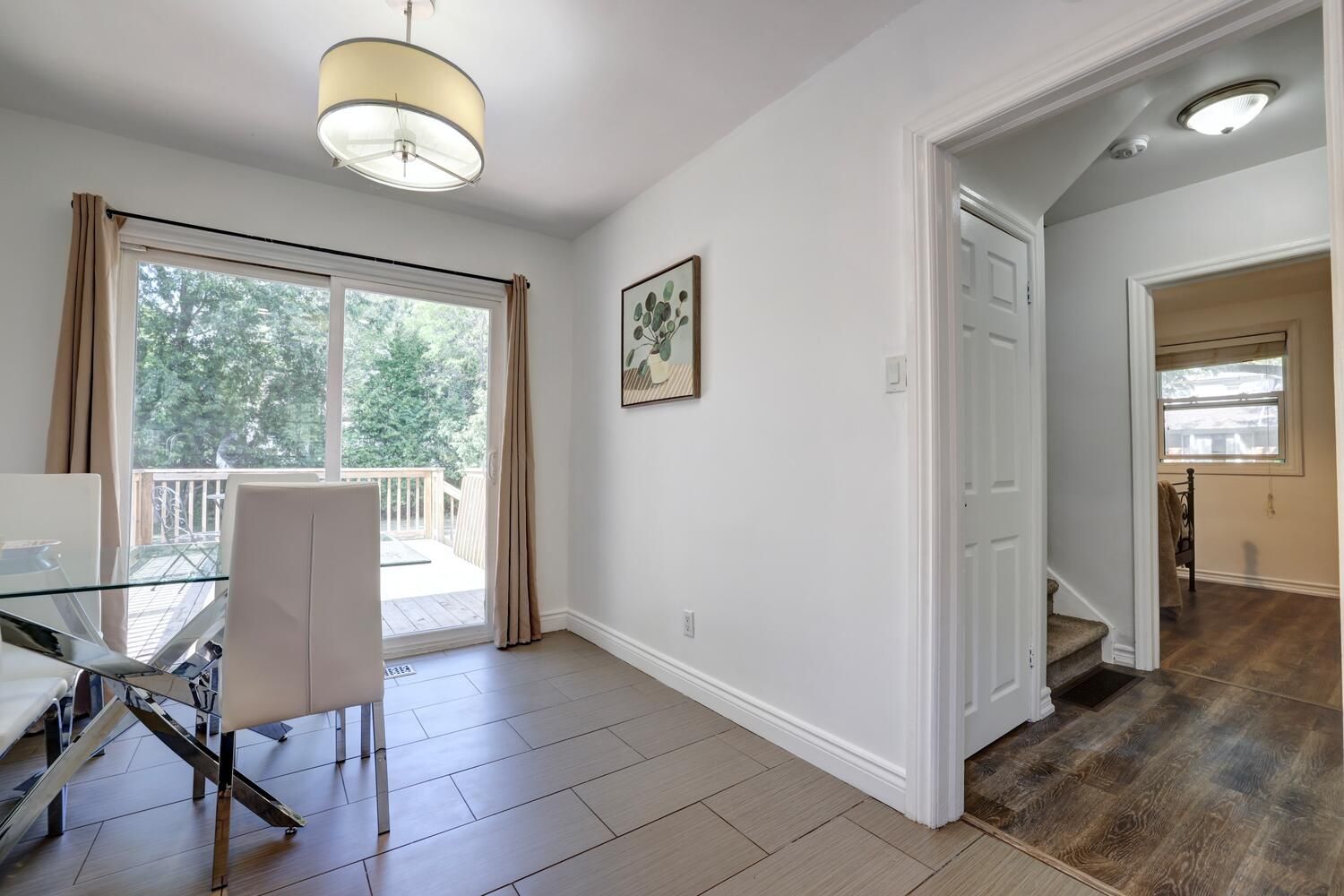 Gorgeous detached home on an oversized sunny lot in burlington! Move in ready! Tucked away on a quiet, leafy street, this renovated home sits in a fantastic, family-friendly neighbourhood of single-family homes interwoven with parks, trails, wooded areas, sports facilities, and community centres. A welcoming south-facing covered porch sets the tone as you step inside this move-in-ready home. Mature hedges surround the property, offering privacy and a serene setting. The renovated ikea kitchen features ample counter space, pantry with pull out drawers, led pot lights, porcelain floors, and hisense stainless steel appliances. An open-concept breakfast room flows seamlessly to the oversized three-tier deck and sprawling lawn perfect for entertaining and family fun. The bright and inviting living room boasts a large corner window and modern vinyl flooring. The main floor includes a primary bedroom, while the second floor offers a renovated bathroom with porcelain floors, a large vanity, a kohler toilet, and a sunny window, along with two additional bedrooms, each with walk-in closets and shelving. Brand new hardwoods and wood stairs on the upper floor. The lower level, with a separate backyard entrance, provides excellent additional living space. It includes a spacious recreation room with new vinyl flooring, an above-grade window, and built-in shelving, plus a modern bathroom with built-in shower. A bright laundry room with above-grade window, built-in shelving, and ample storage completes this level. Very flexible layout with main floor bedroom & lower level easily converted to apartment or in-law suite. Prime location: easy access to highway 407 & 403/qew, burlington go station, 3 major shopping and power centres, mountainside rec centre, costco&beautiful downtown burlington with its world-class dining, brant street pier, waterfront trails, port nelson park on lake ontario, the royal botanical gardens, and joseph brant hospital. Move in and enjoy! Great value!