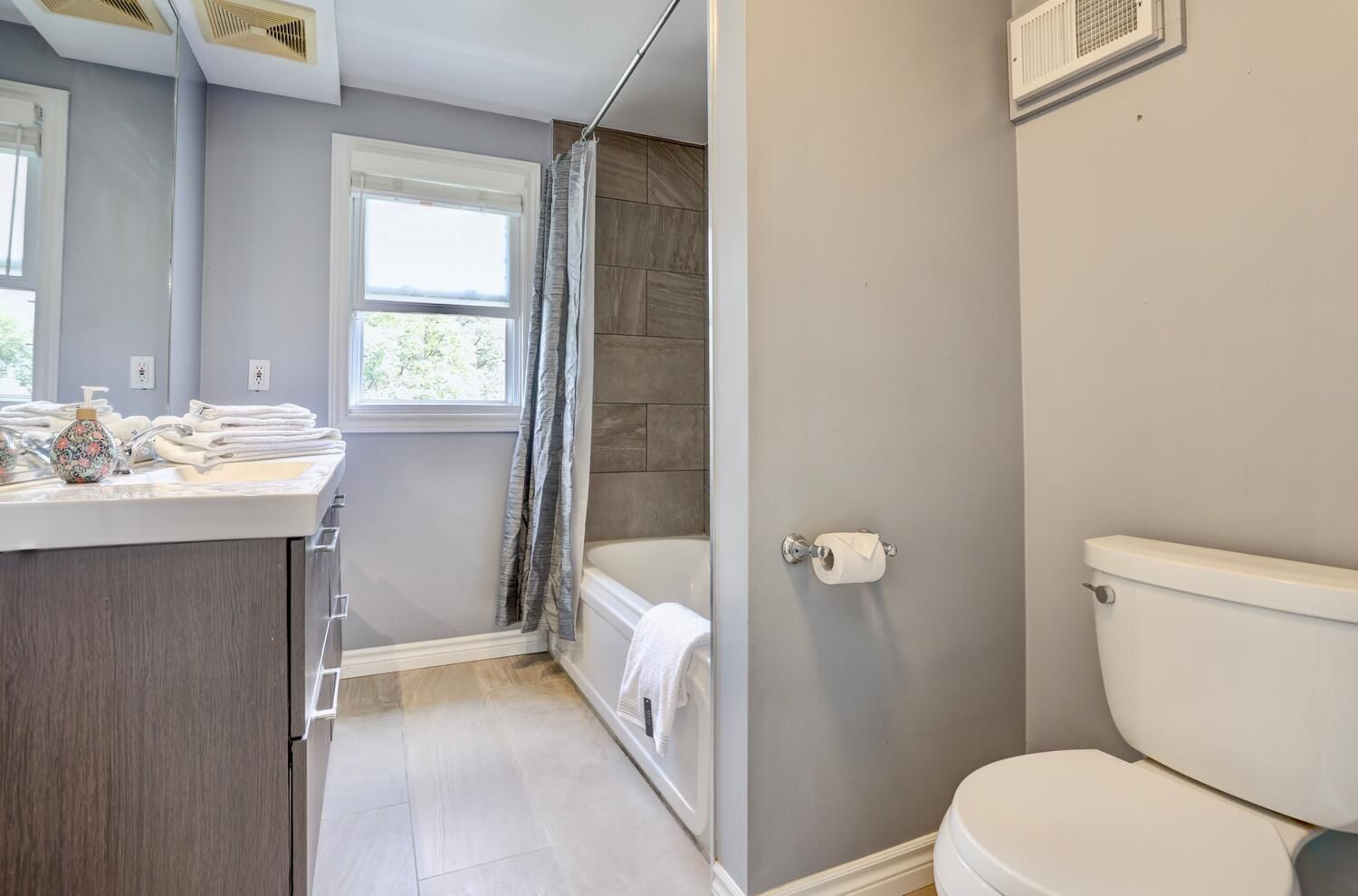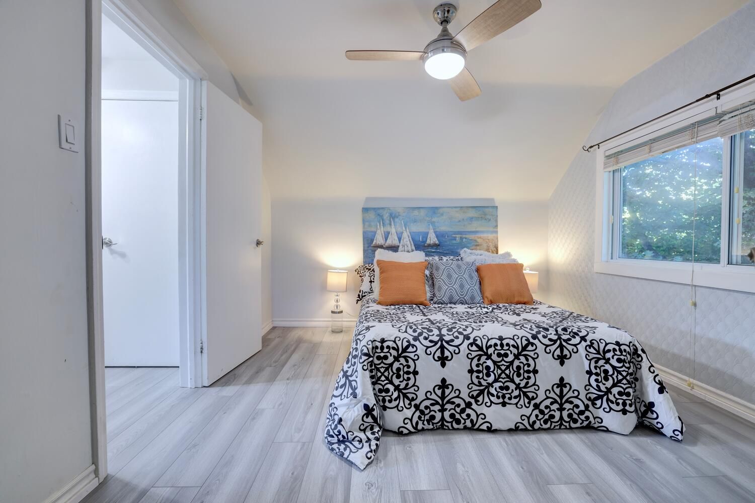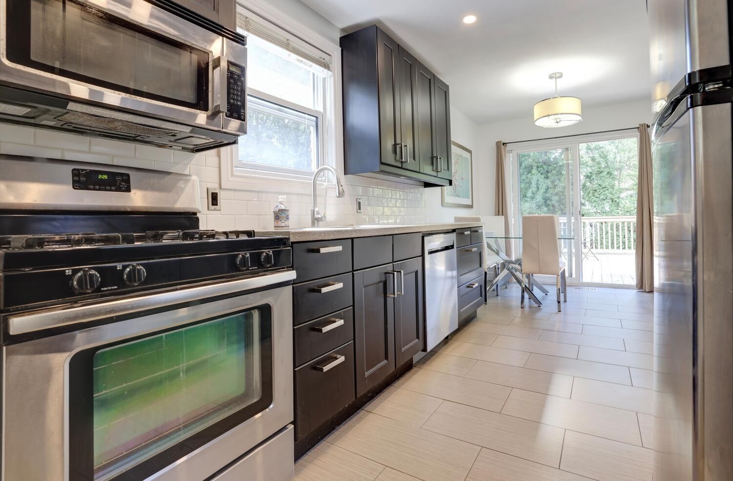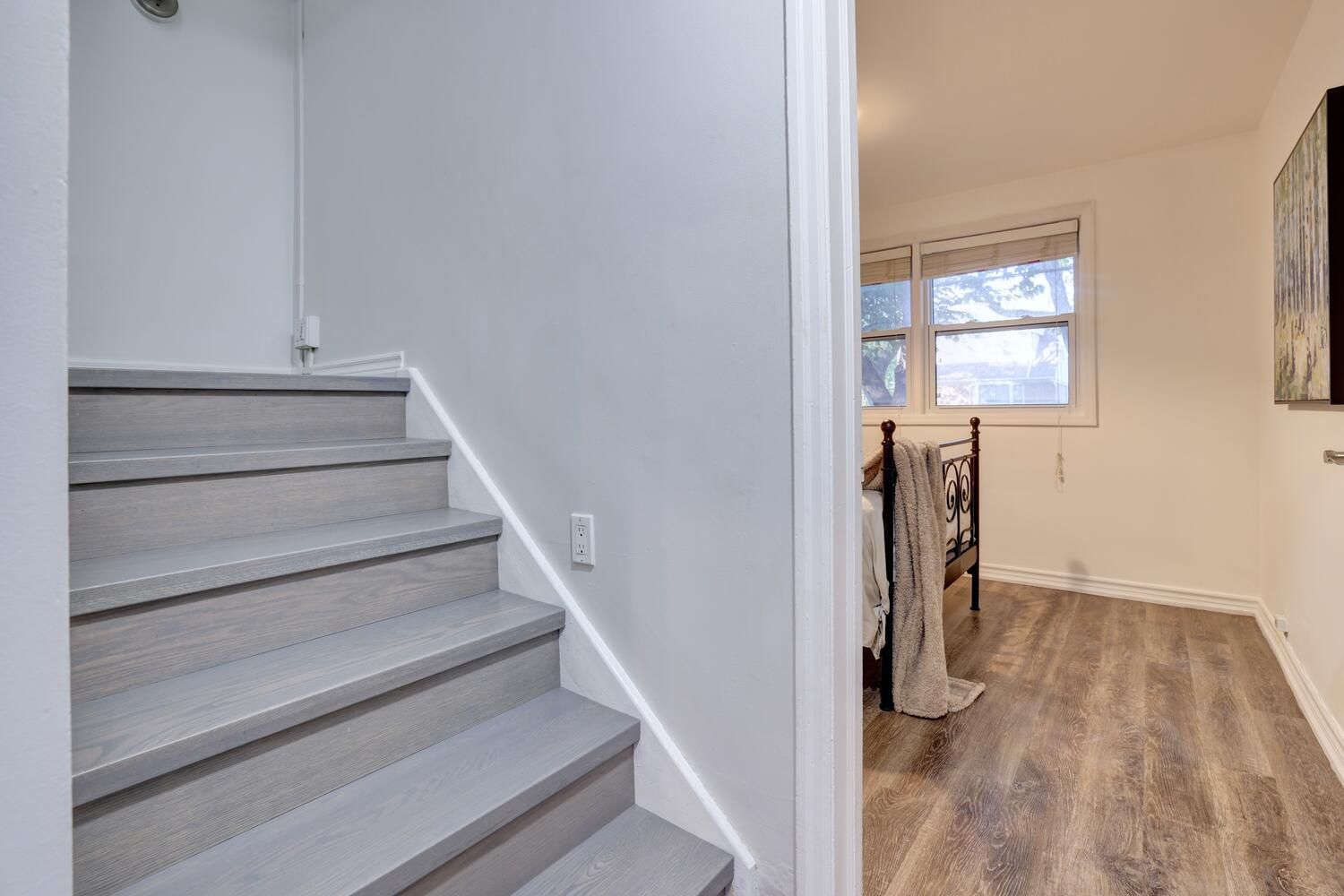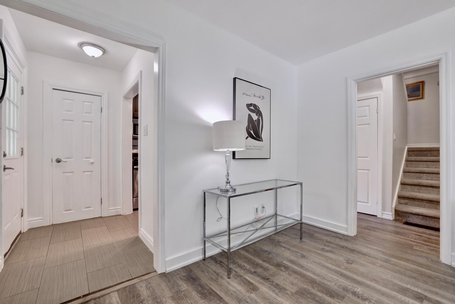 Gorgeous detached home on an oversized sunny lot in burlington! Move in ready! Tucked away on a quiet, leafy street, this renovated home sits in a fantastic, family-friendly neighbourhood of single-family homes interwoven with parks, trails, wooded areas, sports facilities, and community centres. A welcoming south-facing covered porch sets the tone as you step inside this move-in-ready home. Mature hedges surround the property, offering privacy and a serene setting. The renovated ikea kitchen features ample counter space, pantry with pull out drawers, led pot lights, porcelain floors, and hisense stainless steel appliances. An open-concept breakfast room flows seamlessly to the oversized three-tier deck and sprawling lawn perfect for entertaining and family fun. The bright and inviting living room boasts a large corner window and modern vinyl flooring. The main floor includes a primary bedroom, while the second floor offers a renovated bathroom with porcelain floors, a large vanity, a kohler toilet, and a sunny window, along with two additional bedrooms, each with walk-in closets and shelving. Brand new hardwoods and wood stairs on the upper floor. The lower level, with a separate backyard entrance, provides excellent additional living space. It includes a spacious recreation room with new vinyl flooring, an above-grade window, and built-in shelving, plus a modern bathroom with built-in shower. A bright laundry room with above-grade window, built-in shelving, and ample storage completes this level. Very flexible layout with main floor bedroom & lower level easily converted to apartment or in-law suite. Prime location: easy access to highway 407 & 403/qew, burlington go station, 3 major shopping and power centres, mountainside rec centre, costco&beautiful downtown burlington with its world-class dining, brant street pier, waterfront trails, port nelson park on lake ontario, the royal botanical gardens, and joseph brant hospital. Move in and enjoy! Great value!