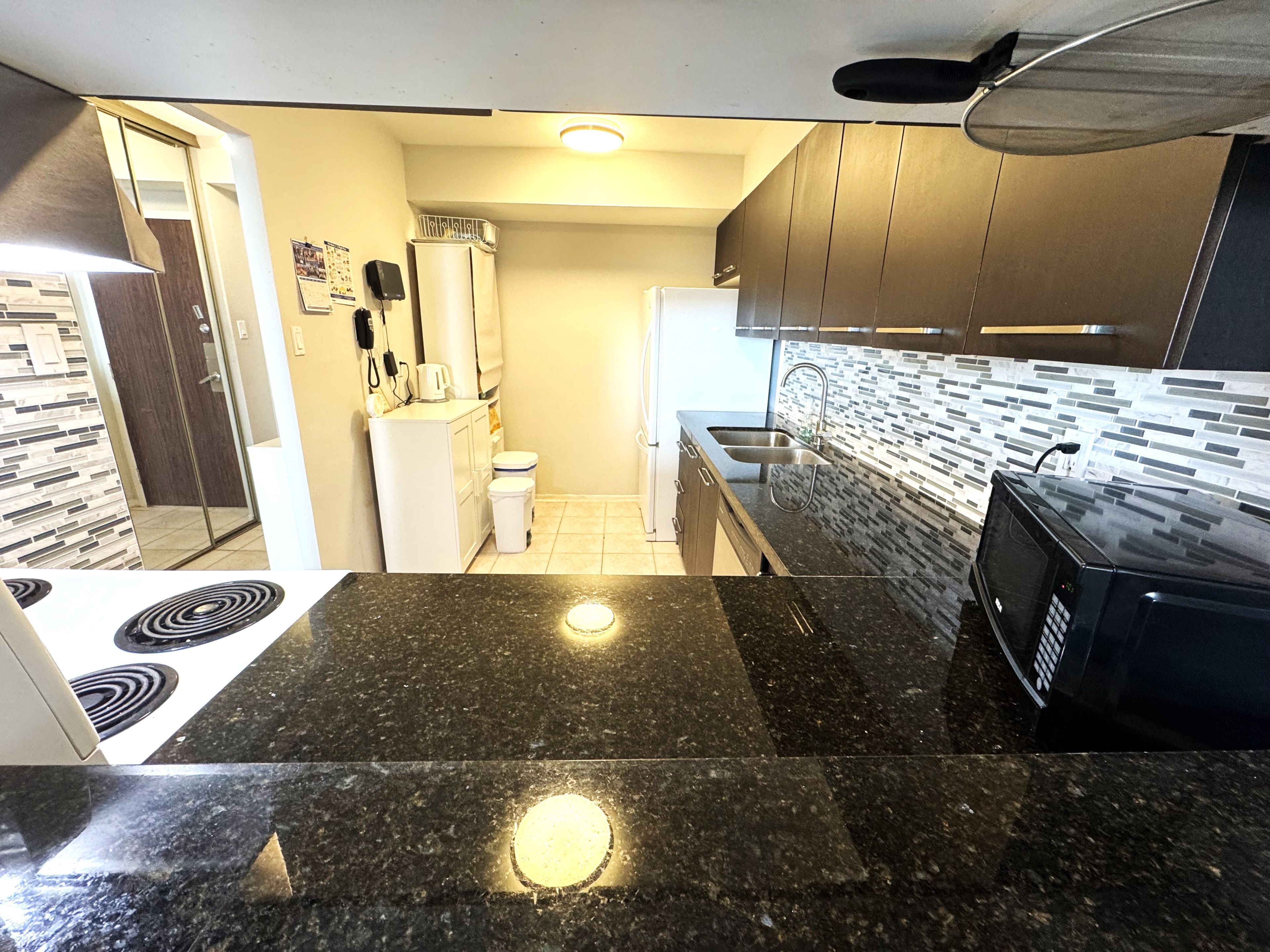 • Upgraded kitchen featuring stylish granite countertops.