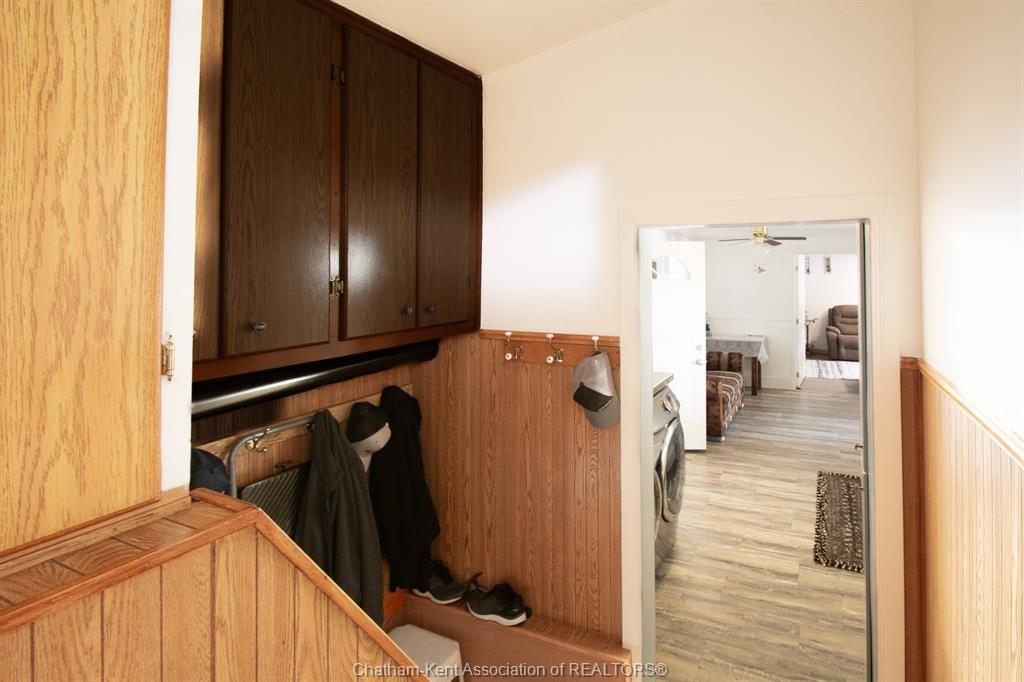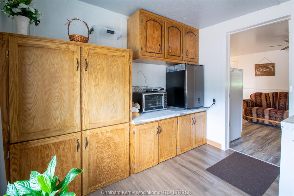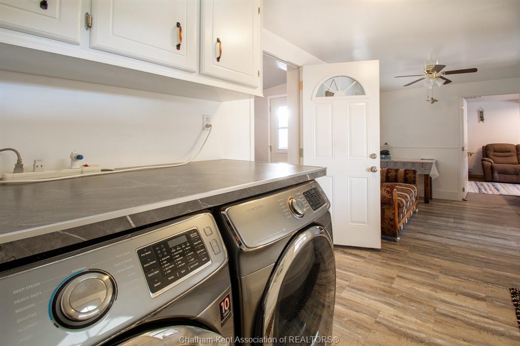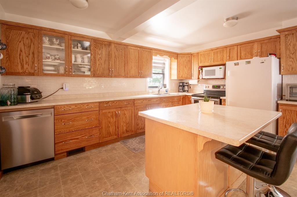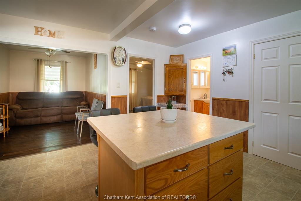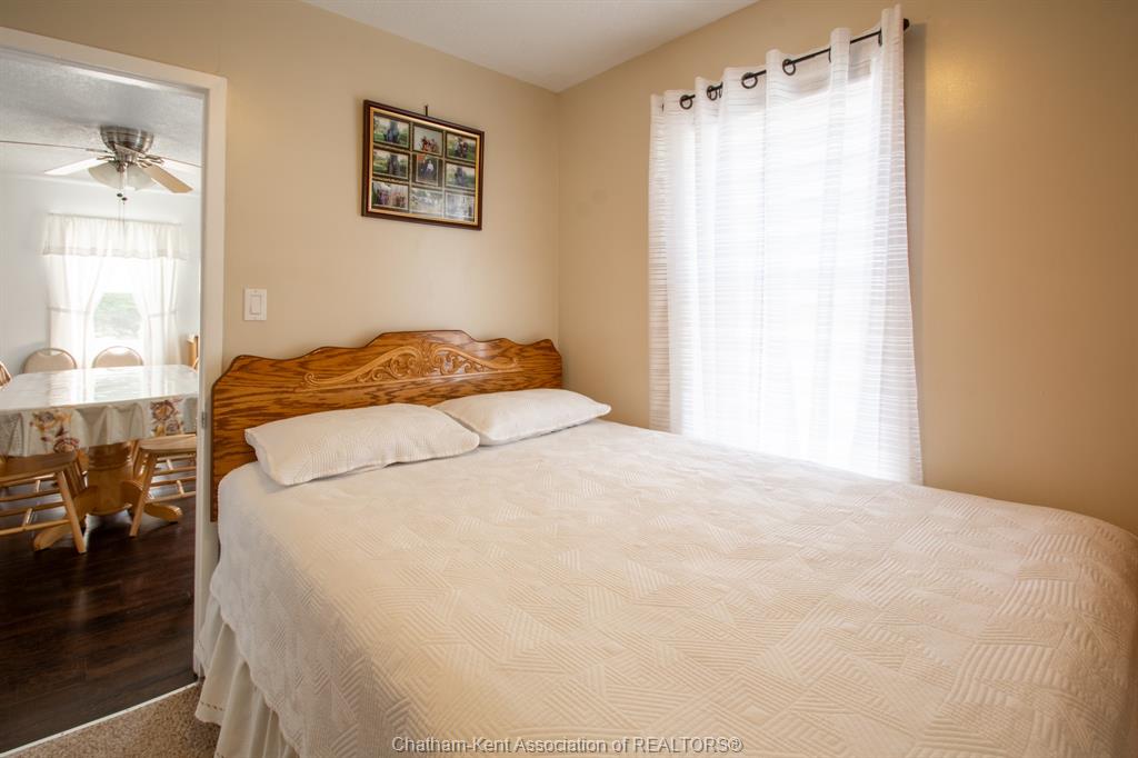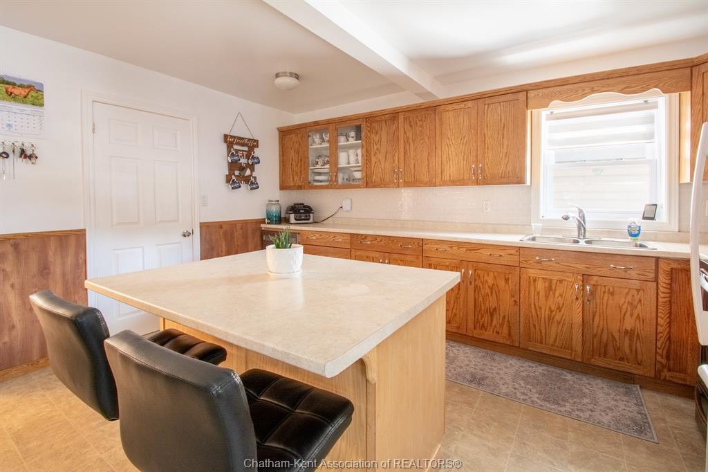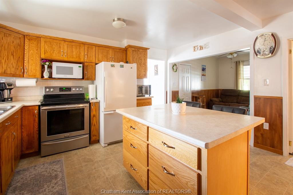 Enjoy spacious country living in this beautifully maintained one-floor bungalow situated on a half-acre lot. This home has been remodelled over the past few years and is truly move-in ready. Inside, the updated kitchen features oak cabinetry throughout, including a centre island, and durable laminate flooring. The oversized living room offers plenty of space for entertaining. There are three generously sized bedrooms (one being utilized as a den and easily converted back to a bedroom) —two with carpet and one with laminate flooring. The home includes two bathrooms, including a brand-new renovated bathroom with new ceramic tile and modern fixtures. Convenient main-floor laundry adds to the home’s functional layout. Recent interior and mechanical upgrades include a new heating system for the living room and bedroom (2018), natural gas furnace (2009), central air conditioning (2015), windows and added insulation (2012), and numerous renovations completed over the past several years. Outside, the property features a well-maintained yard with mature shrubs, a 26' x 24' two-car garage, and a 24' x 34' heated workshop with hydro and a cement floor—ideal for hobbies or extra storage. Two sheds are included, along with a 16' x 8' covered back deck and a covered front porch, perfect for enjoying the peaceful country setting. Come out and see everything this fantastic property has to offer!